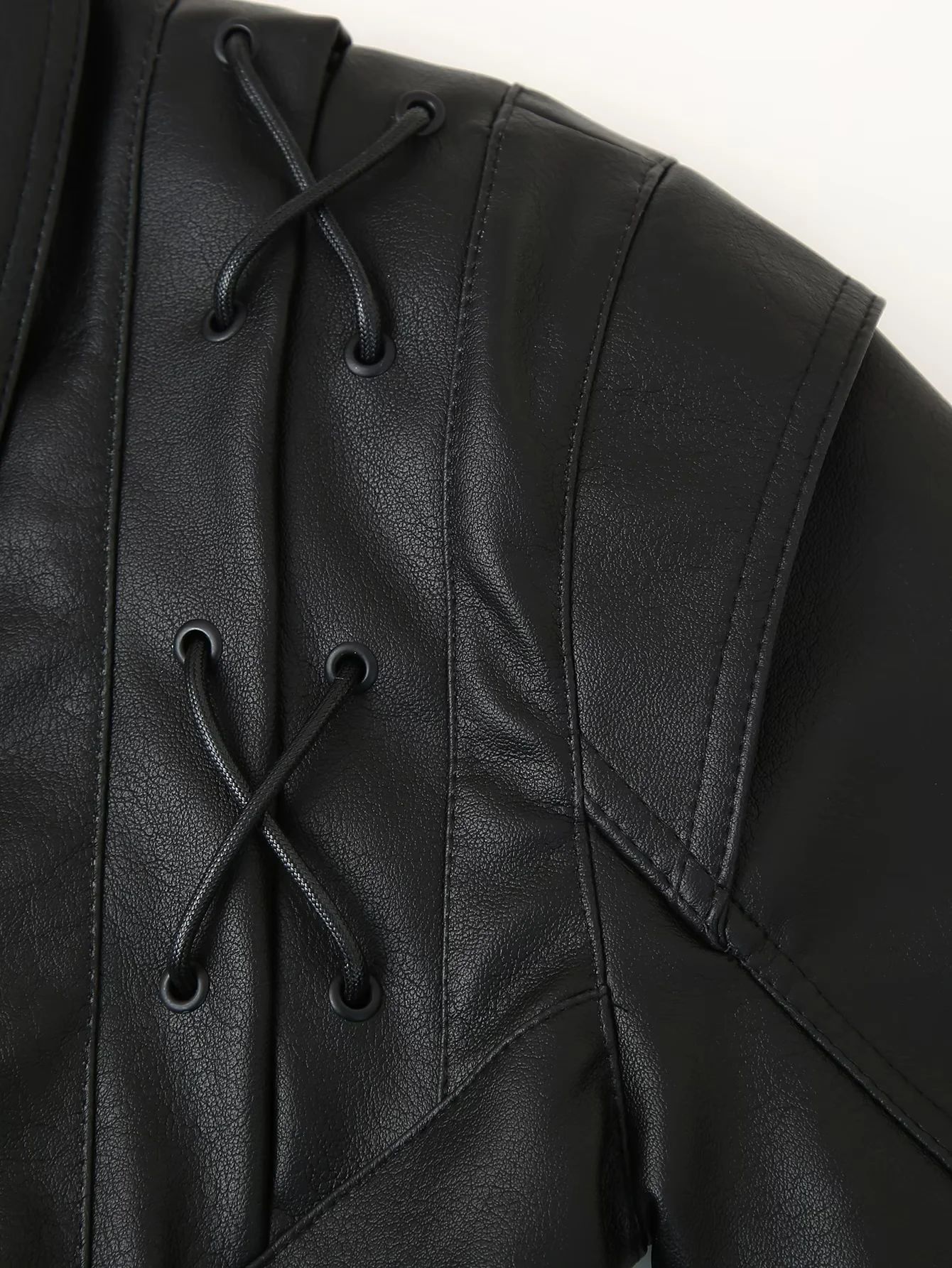 유럽과 미국의 국경 2024 폭발 새로운 겨울 빈티지 레이스 업 가죽 자켓 여성 캐주얼 패션 옷깃 Pu 가죽 자켓스토어 가기