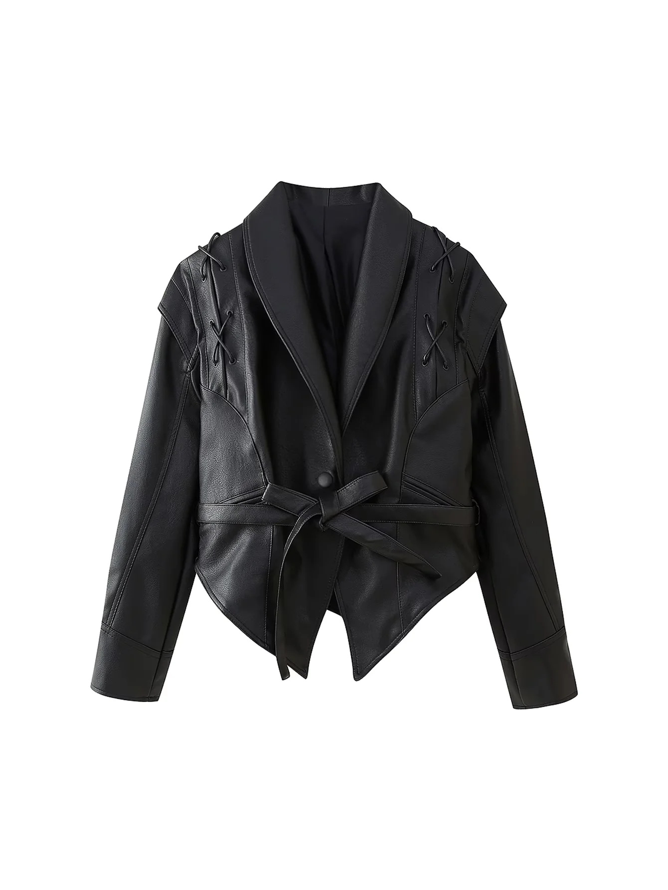 유럽과 미국의 국경 2024 폭발 새로운 겨울 빈티지 레이스 업 가죽 자켓 여성 캐주얼 패션 옷깃 Pu 가죽 자켓