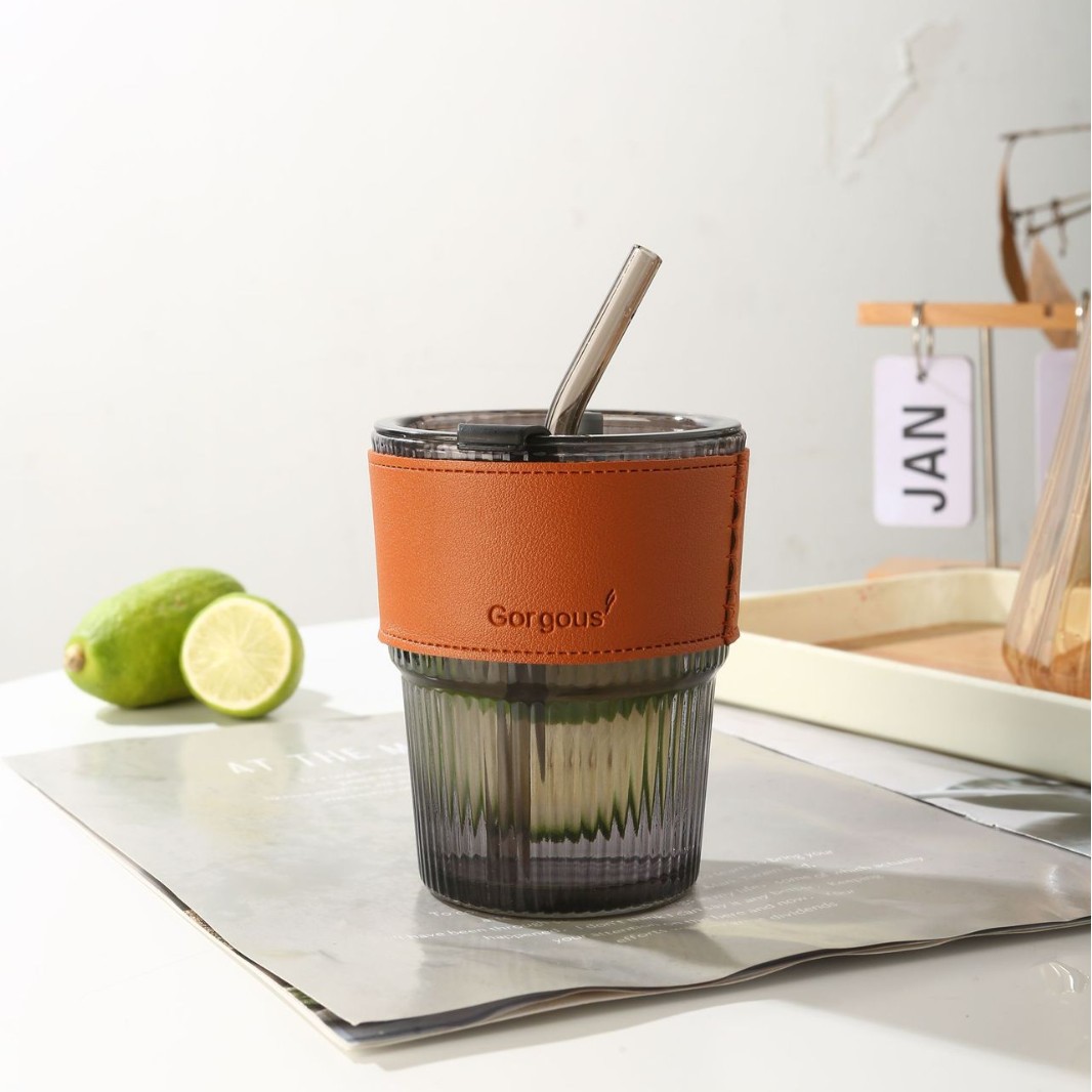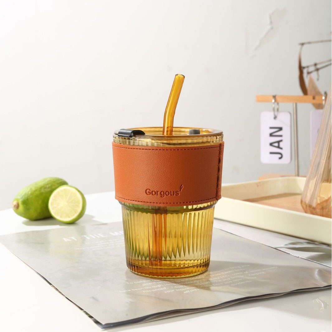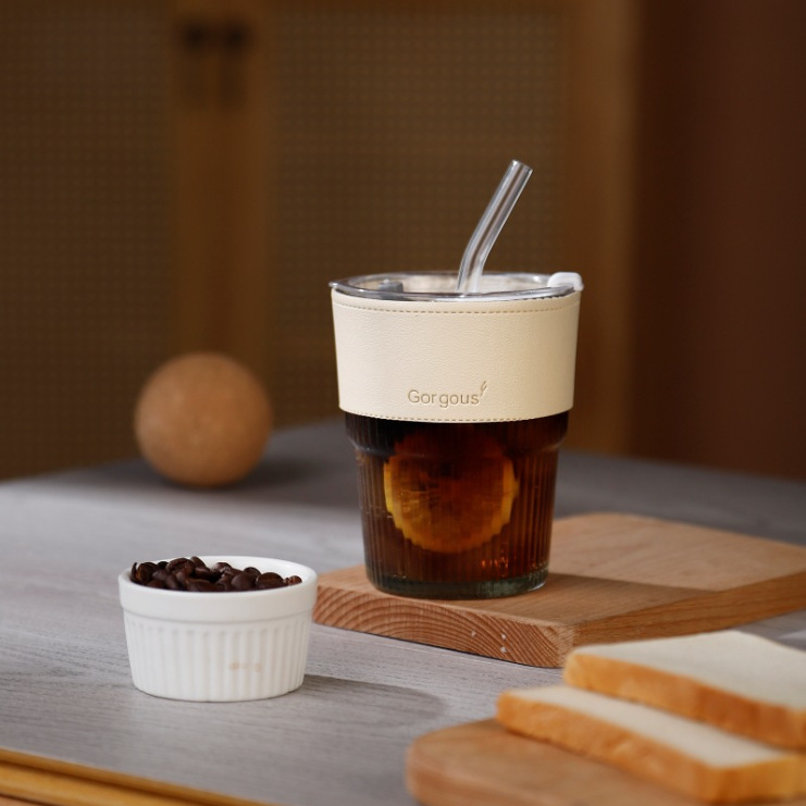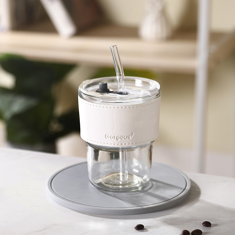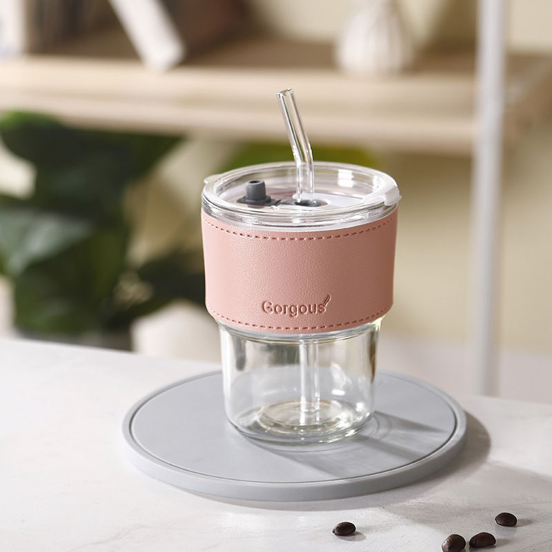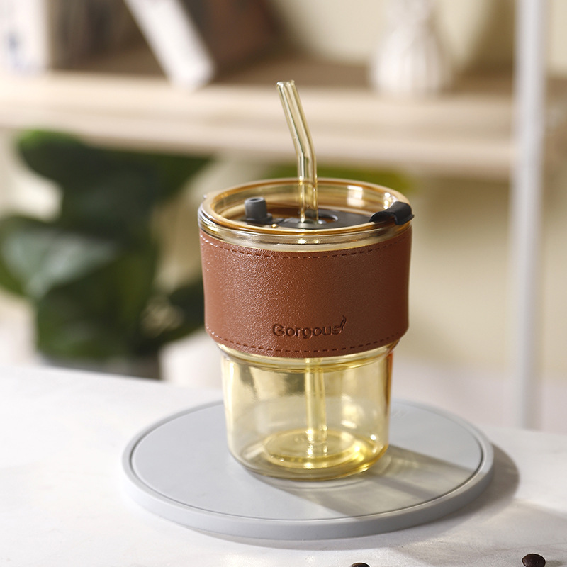 网红竹节杯 创意女士玻璃水杯带吸管 百货伴手小礼品咖啡杯子印制福利引流印制logo