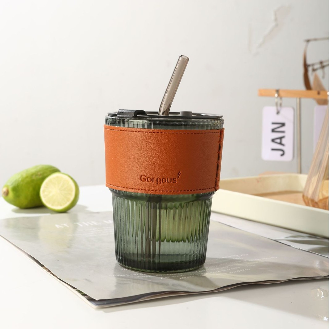 • 대나무 컵 투명 + 녹색 가죽 케이스