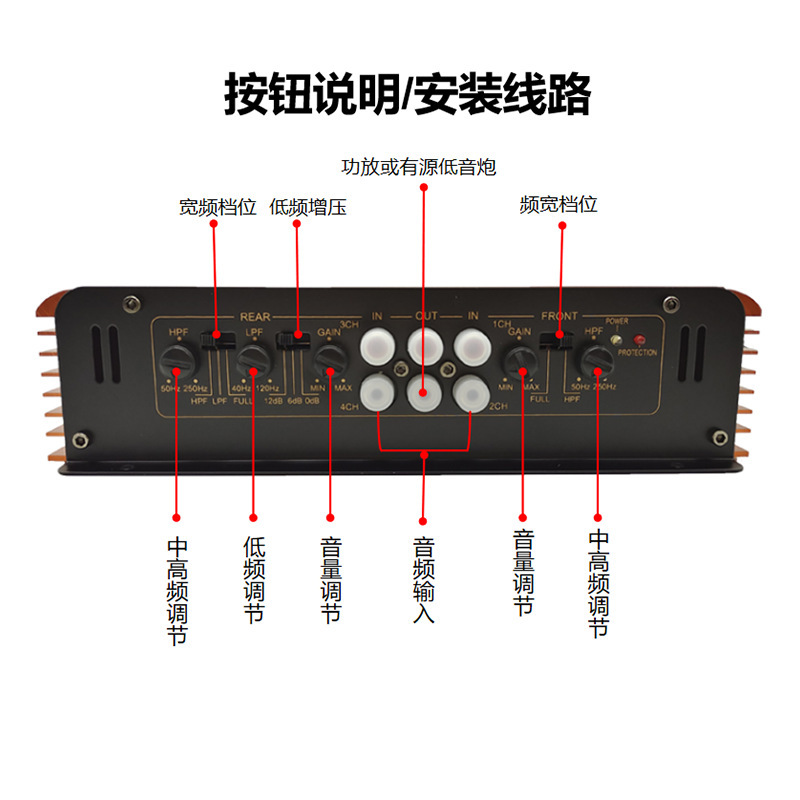 자동차 전력 증폭기 12v 서브 우퍼 4 방향 전력 증폭기 자동차 4.1 채널 고출력 증폭기 보드 카트 도어 혼