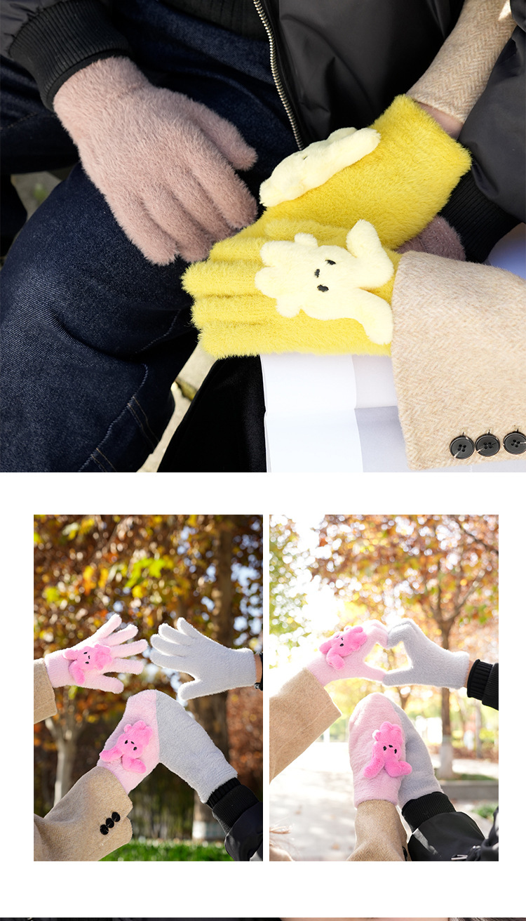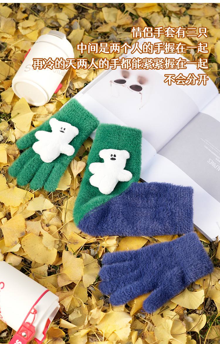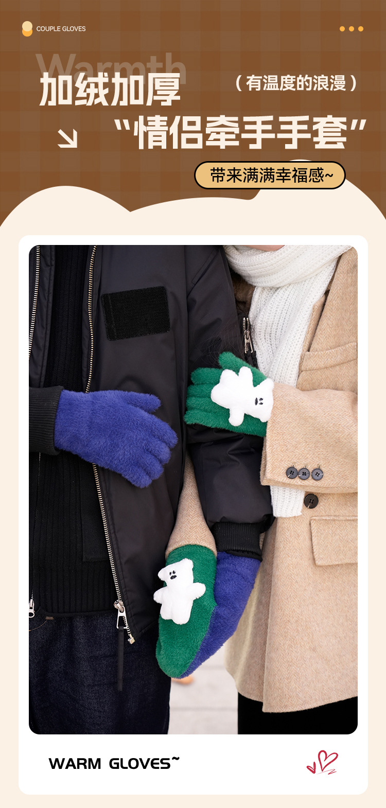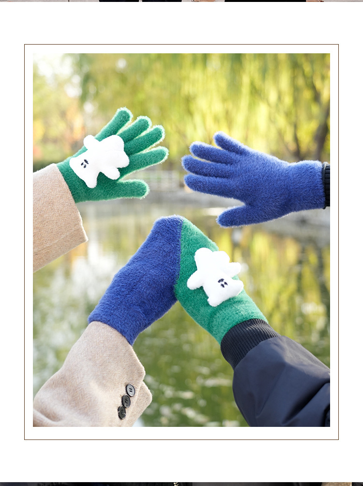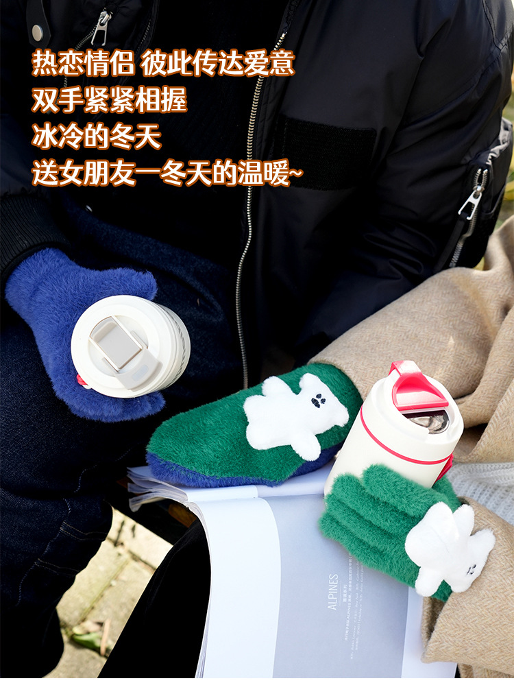 새로운 니트 따뜻한 장갑 겨울 기모 두꺼운 방풍 만화 귀여운 커플의 울 장갑스토어 가기