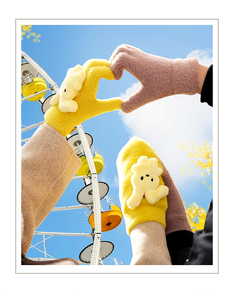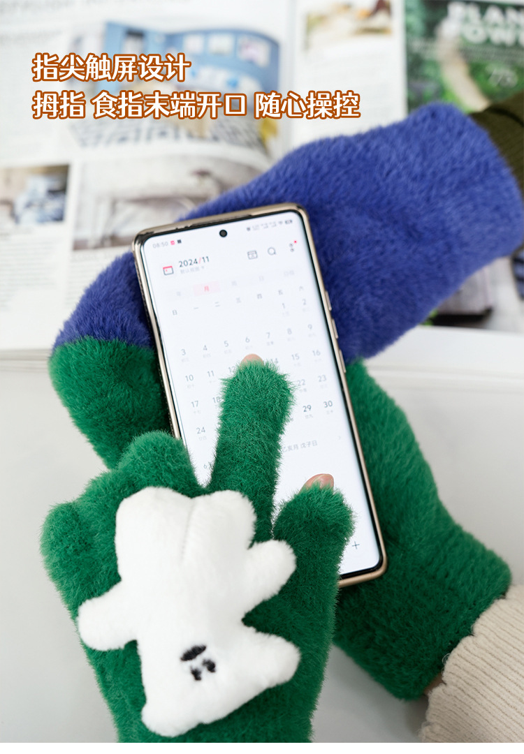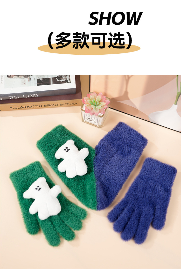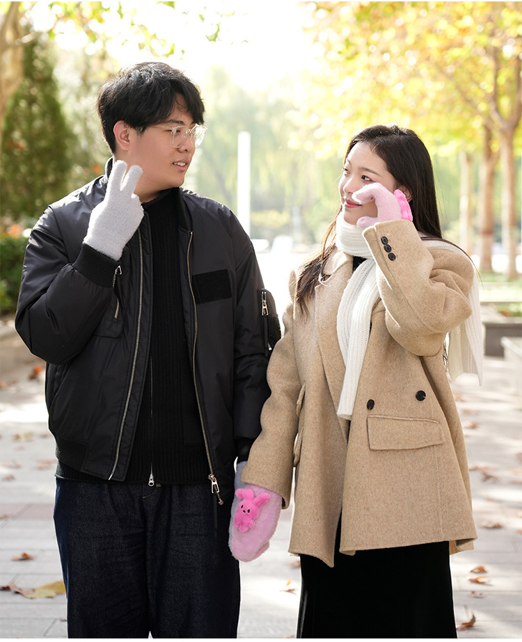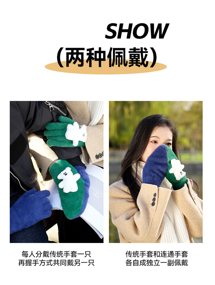새로운 니트 따뜻한 장갑 겨울 기모 두꺼운 방풍 만화 귀여운 커플의 울 장갑스토어 가기