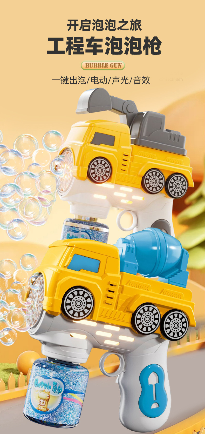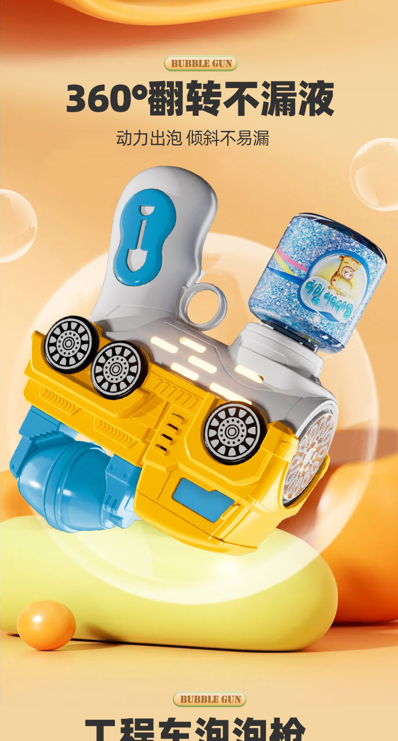 국경 간 새로운 인터넷 유명 엔지니어링 차량 버블 어린이 기계 장난감 휴대용 전기 음향 광학 12 홀 굴착기 버블 건스토어 가기