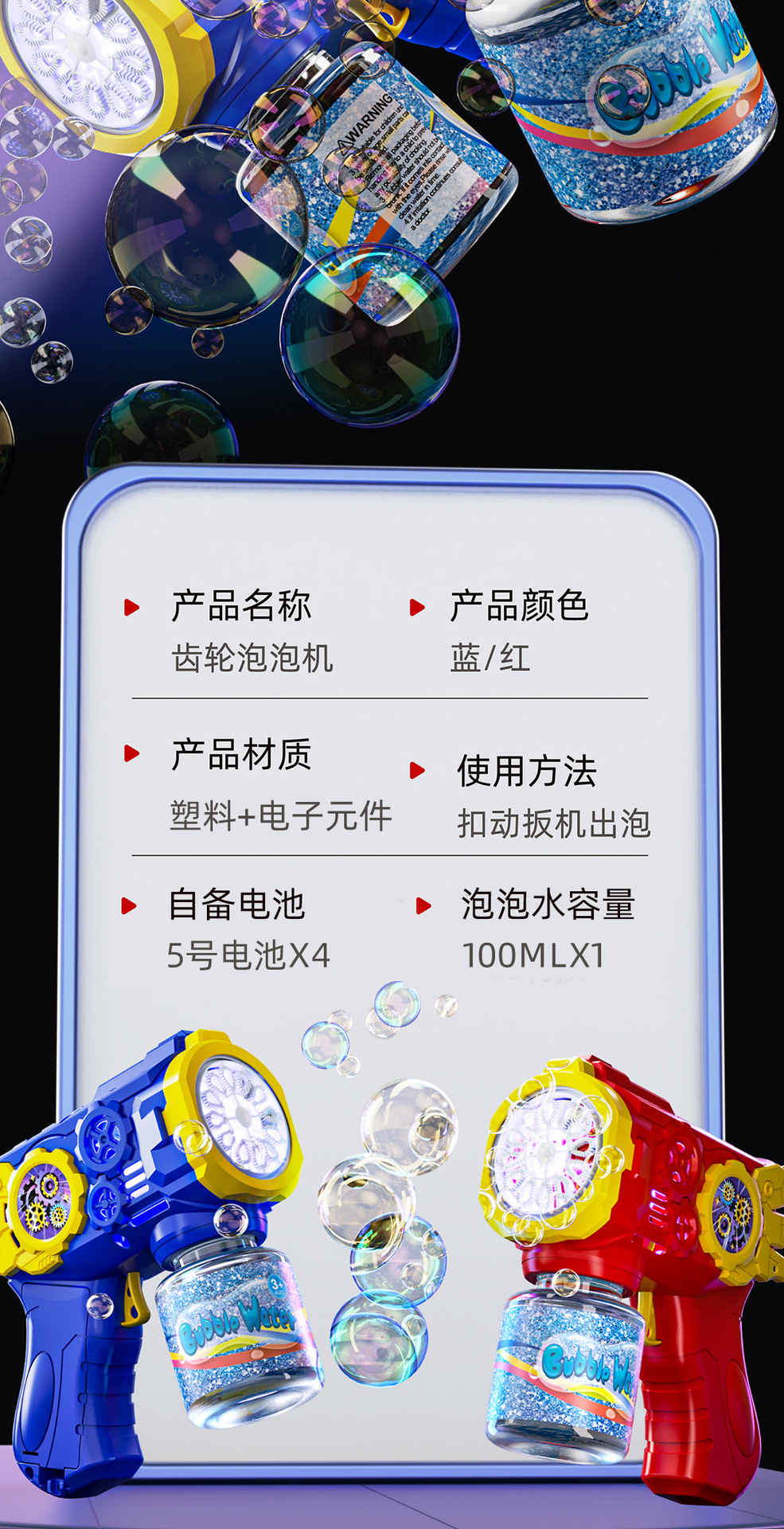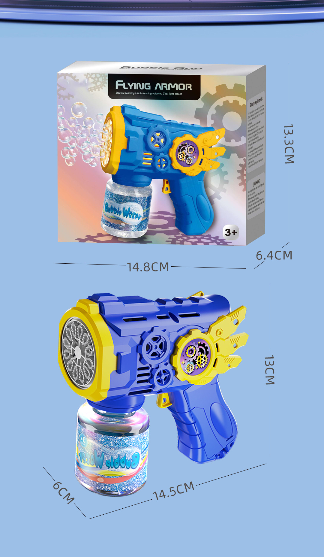 • 파란색 기어 버블건 + 버블액 1병 (박스 포장)