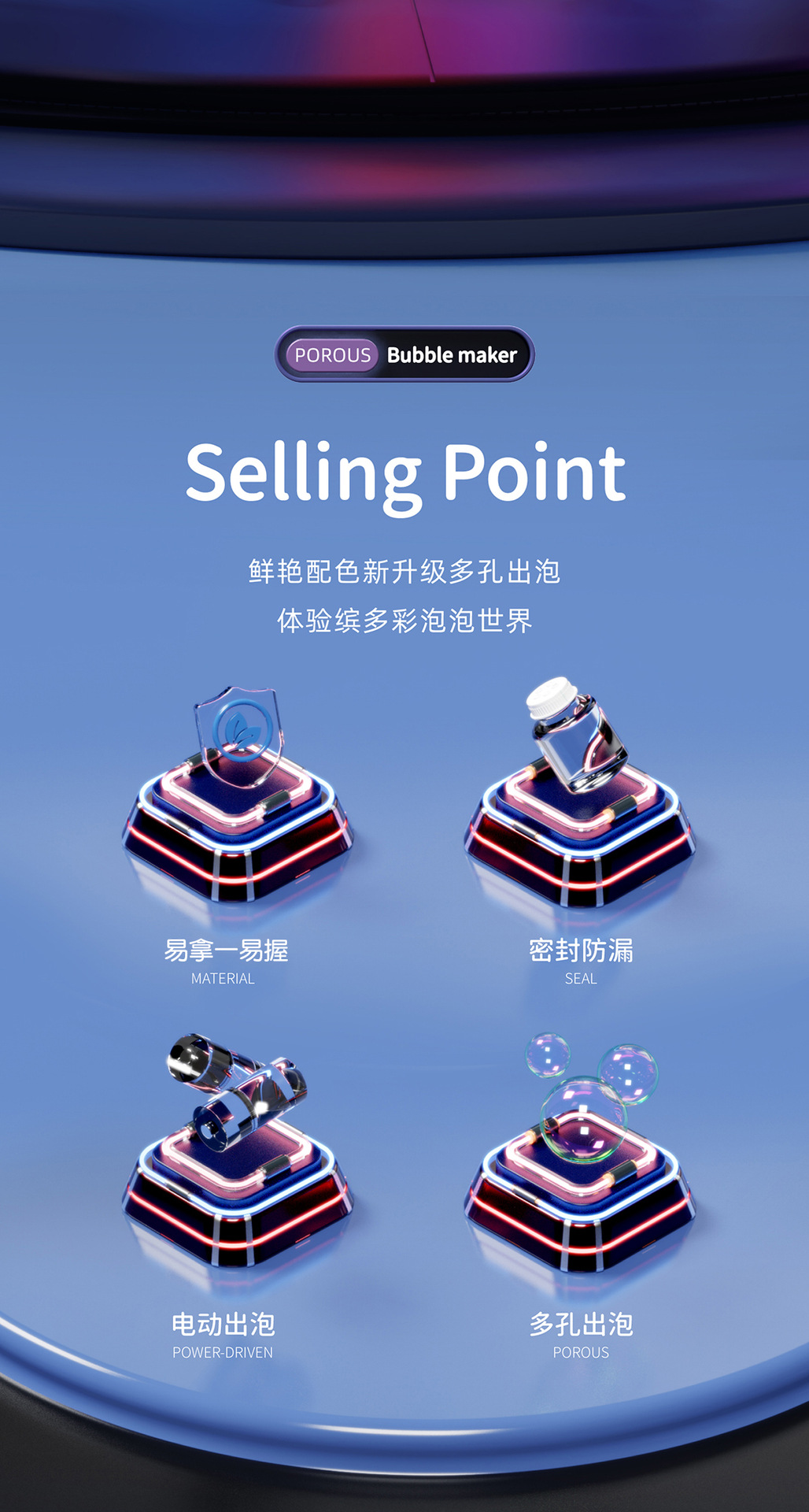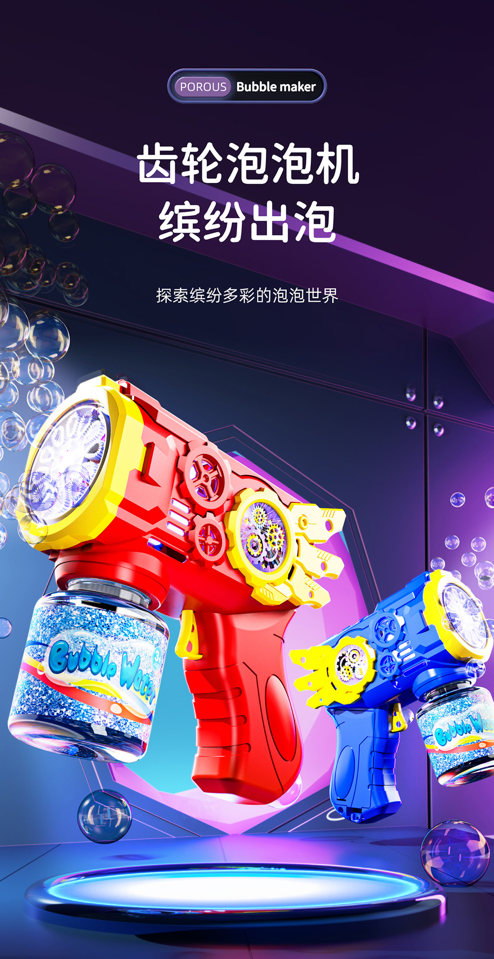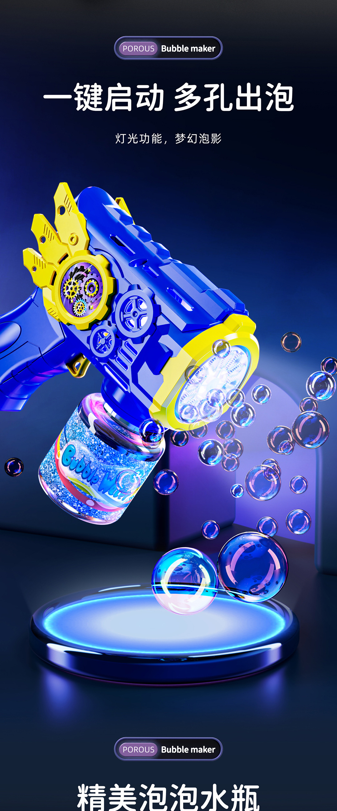 • 블루 테크놀로지 스타일 버블건 + 물 1병(컬러 박스)
