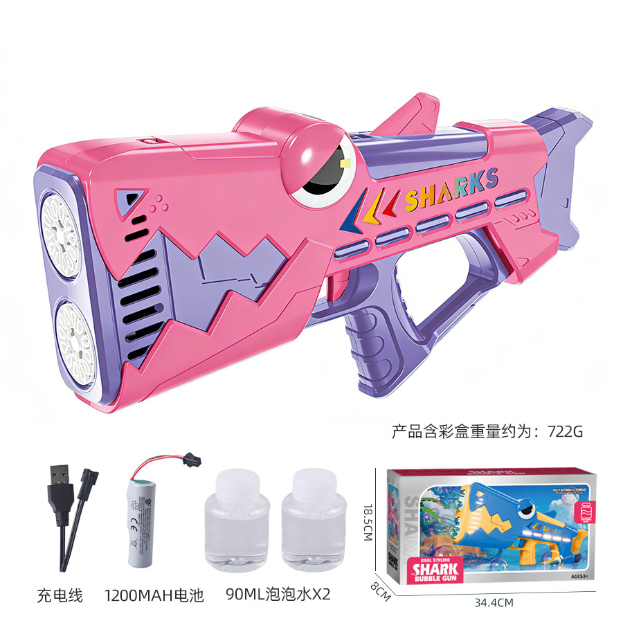 • 핑크 리튬 배터리 상어 버블건 + 물 1병 (박스형)