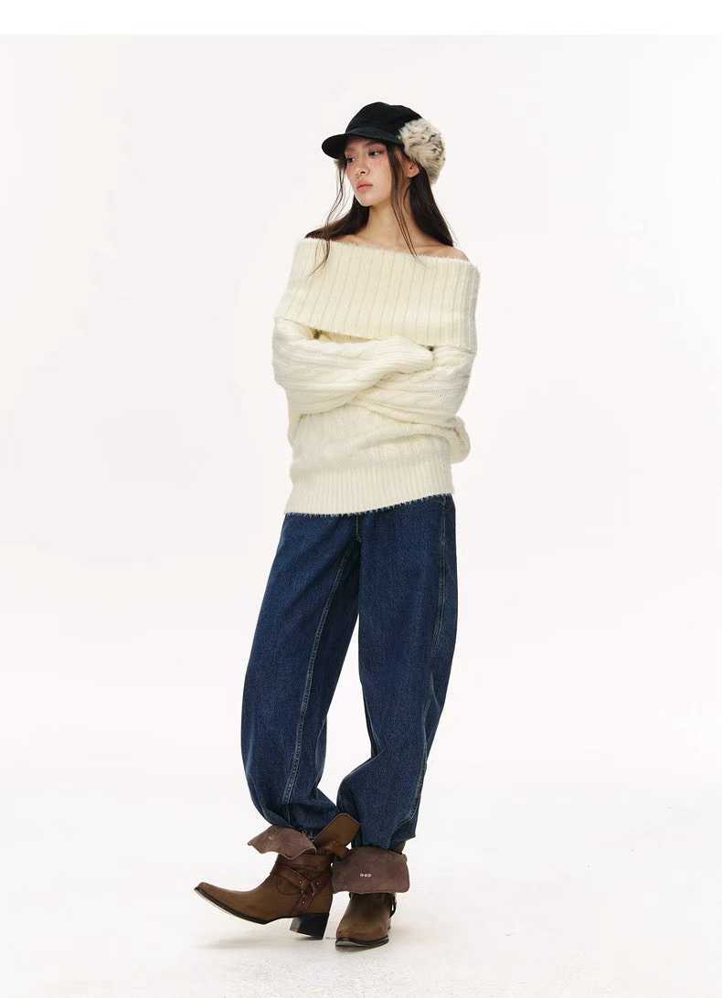 2025년 신상 부드러운 원숄더 클래식 그레이 슬랜트 숄더 스웨터 여성용 겨울 루즈핏 긴팔 상의스토어 가기