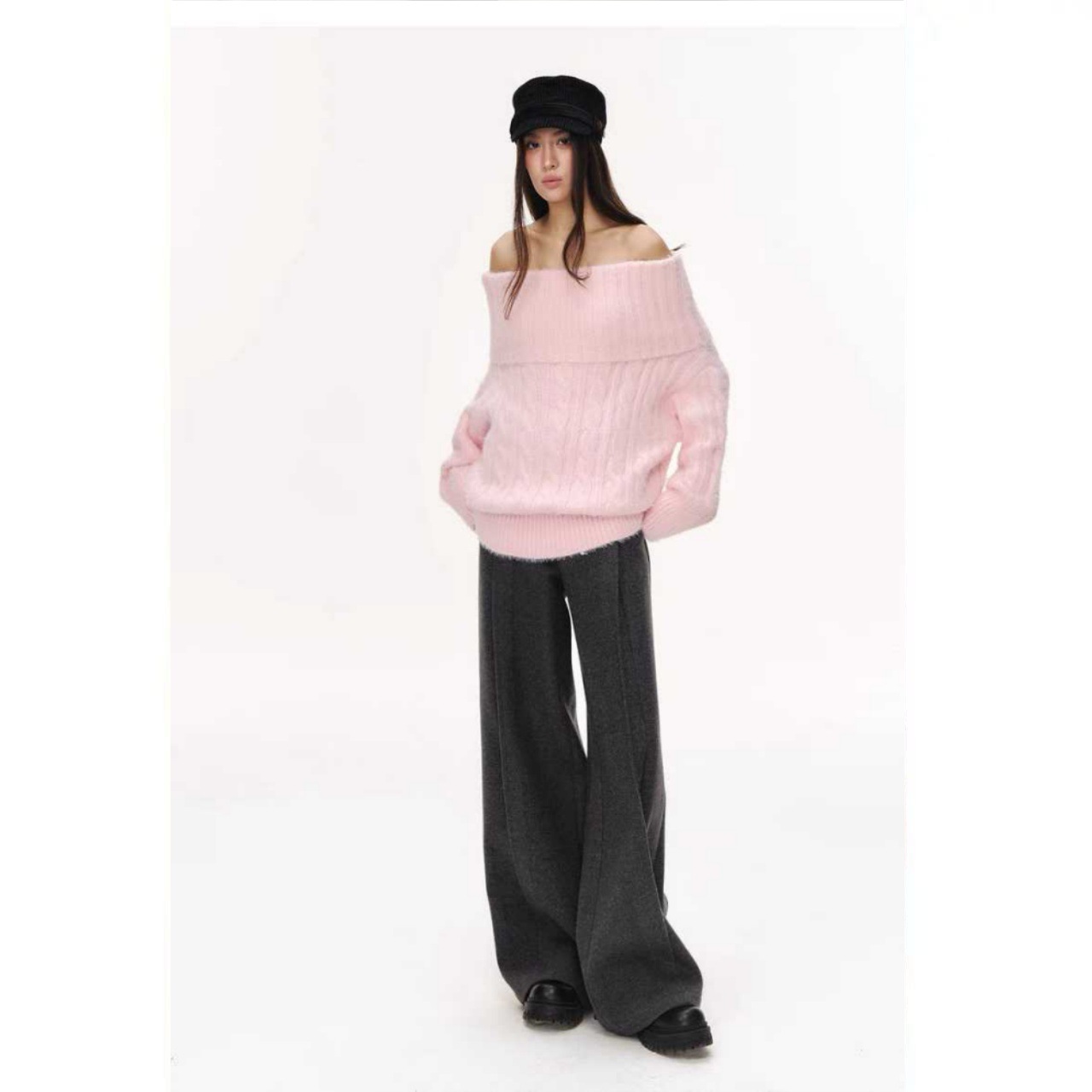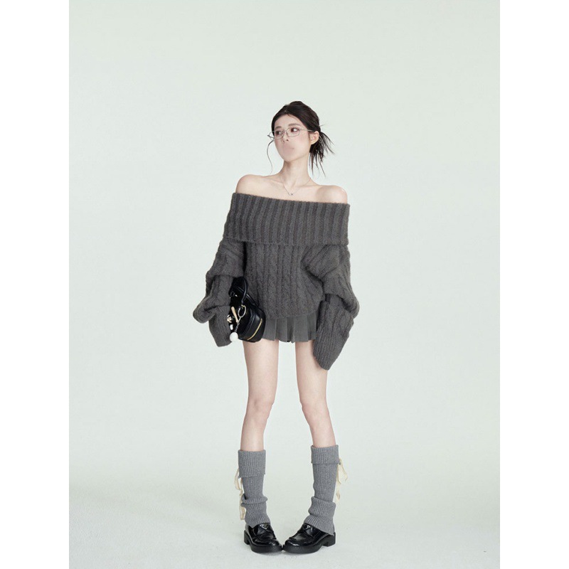2025년 신상 부드러운 원숄더 클래식 그레이 슬랜트 숄더 스웨터 여성용 겨울 루즈핏 긴팔 상의