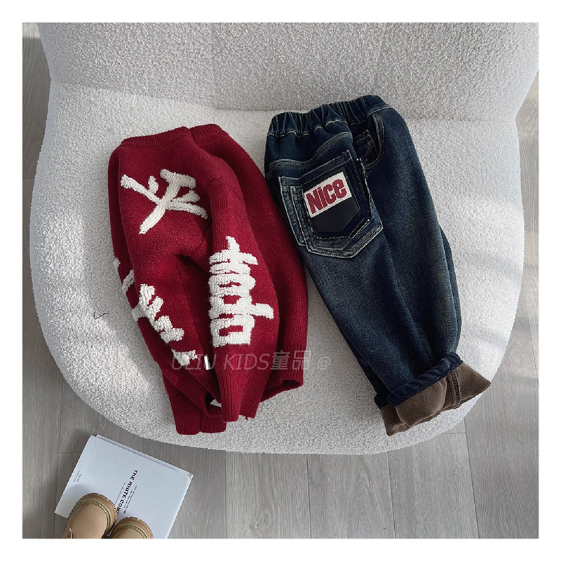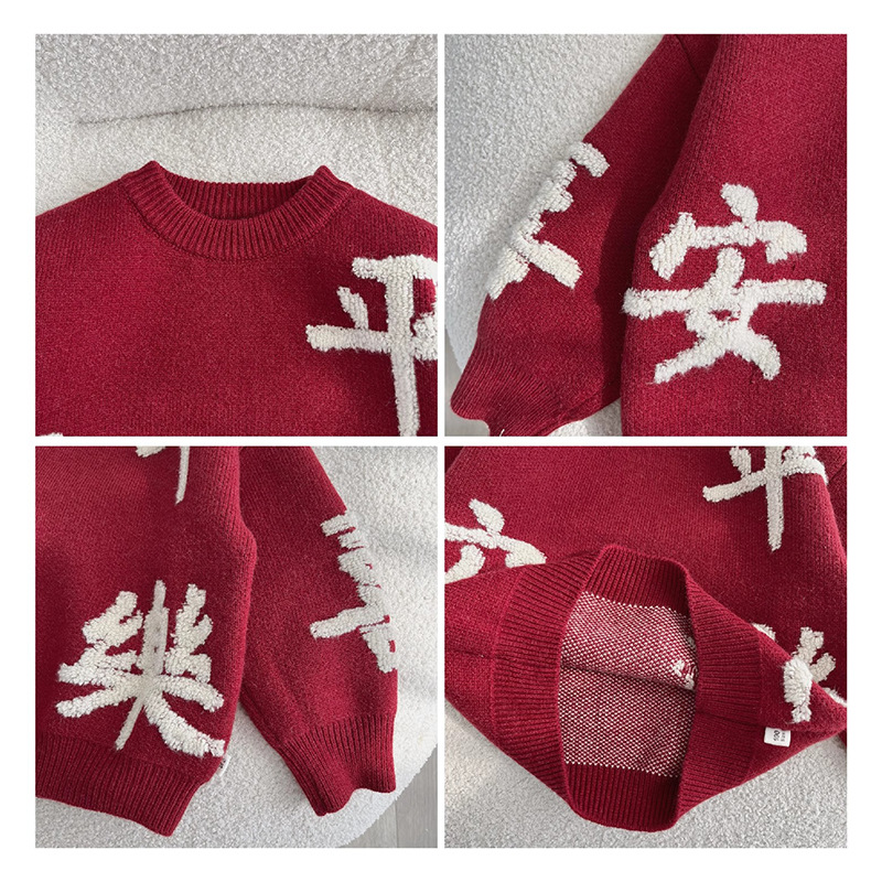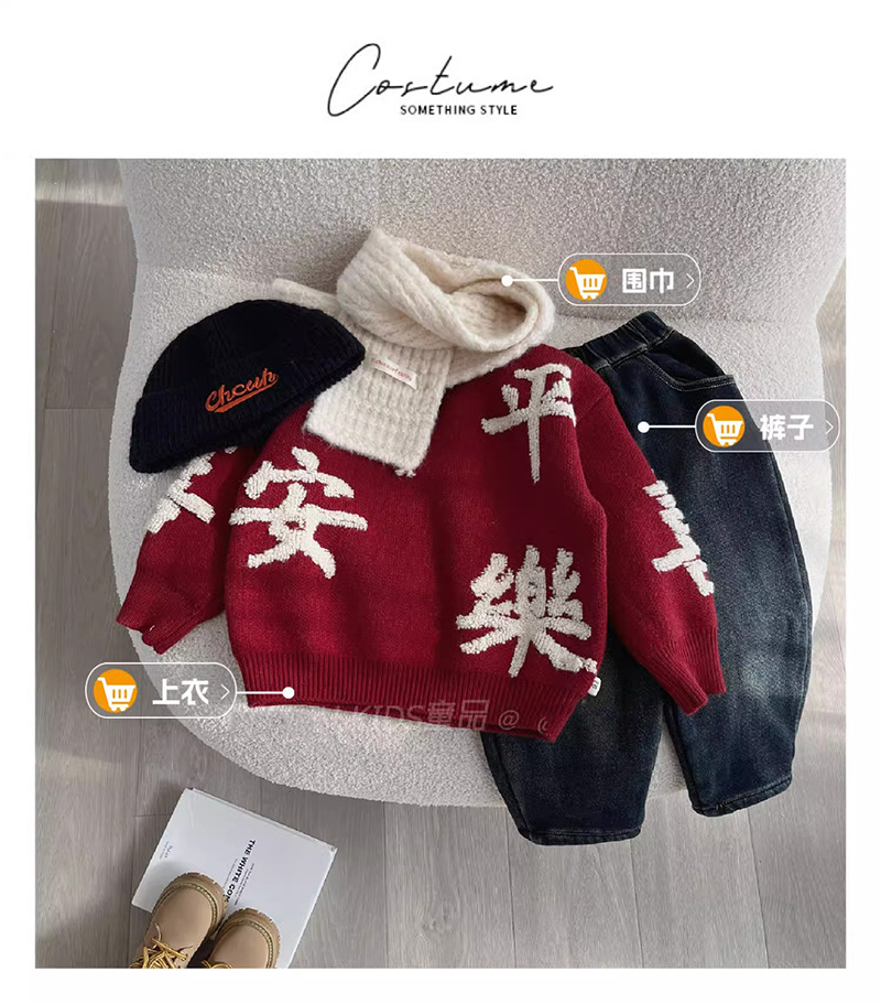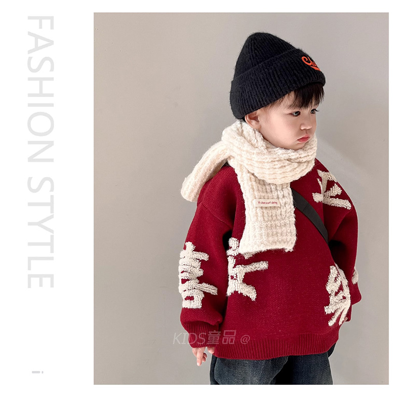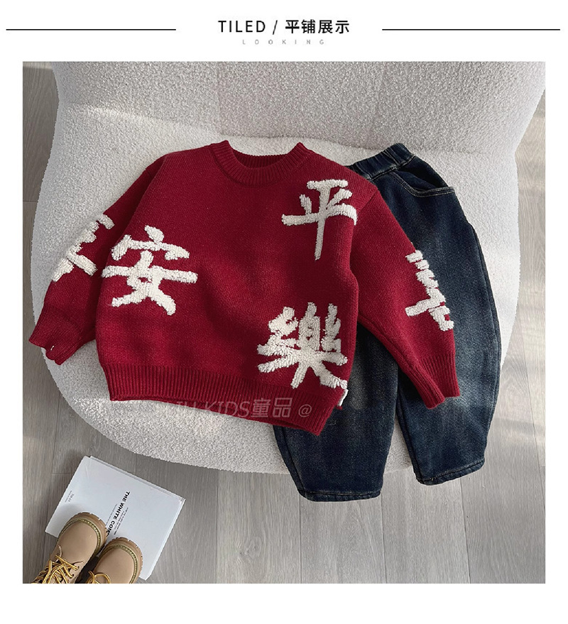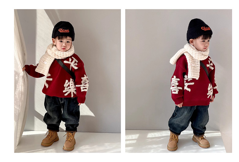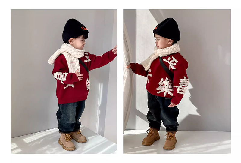 남녀 아동용 스웨터, 2026년 가을 겨울 신상품, 중국풍 빨간색 축제 아기 새해맞이 니트 스웨터 상의스토어 가기