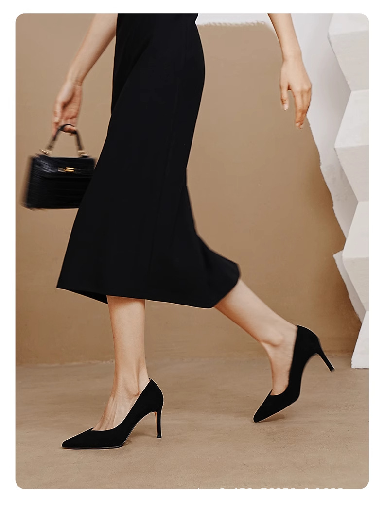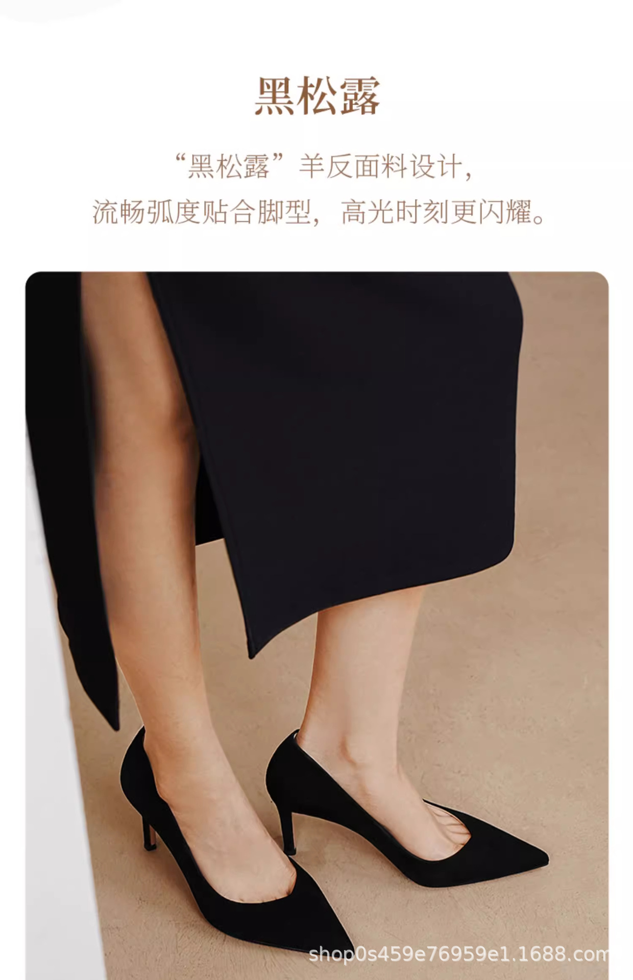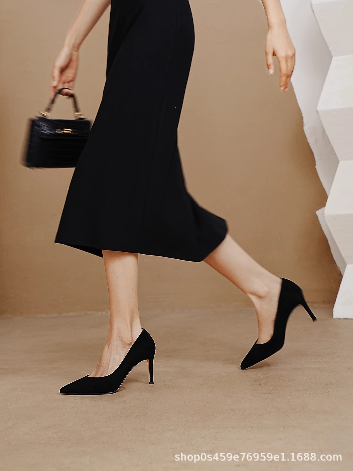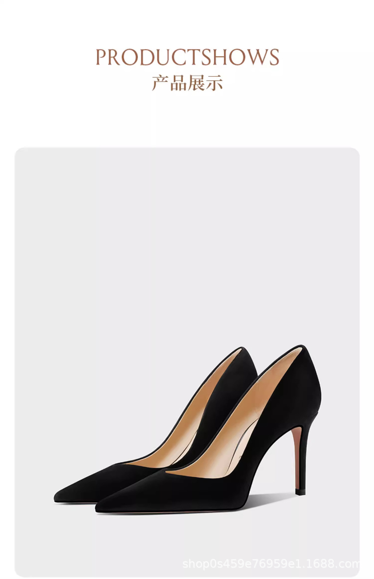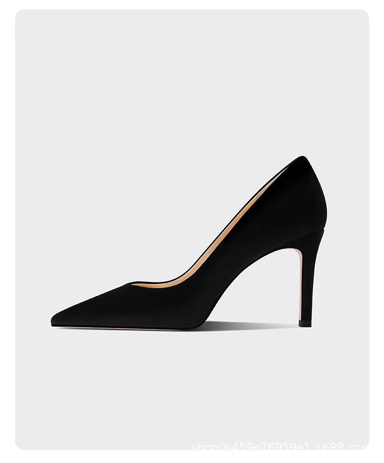 포장 확대 검은 하이힐 여성의 가을 및 겨울 전문 작업 신발 피곤하지 않은 발 여성 통근 뾰족한 신발 플러스 사이즈스토어 가기
