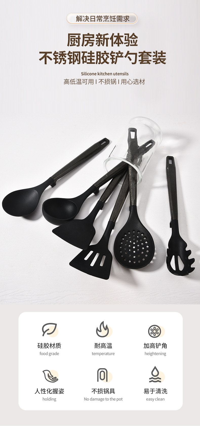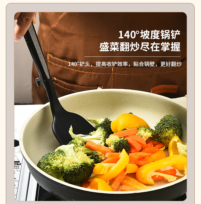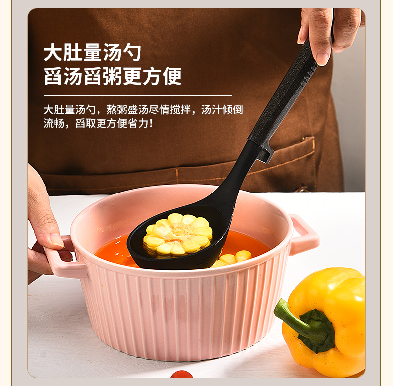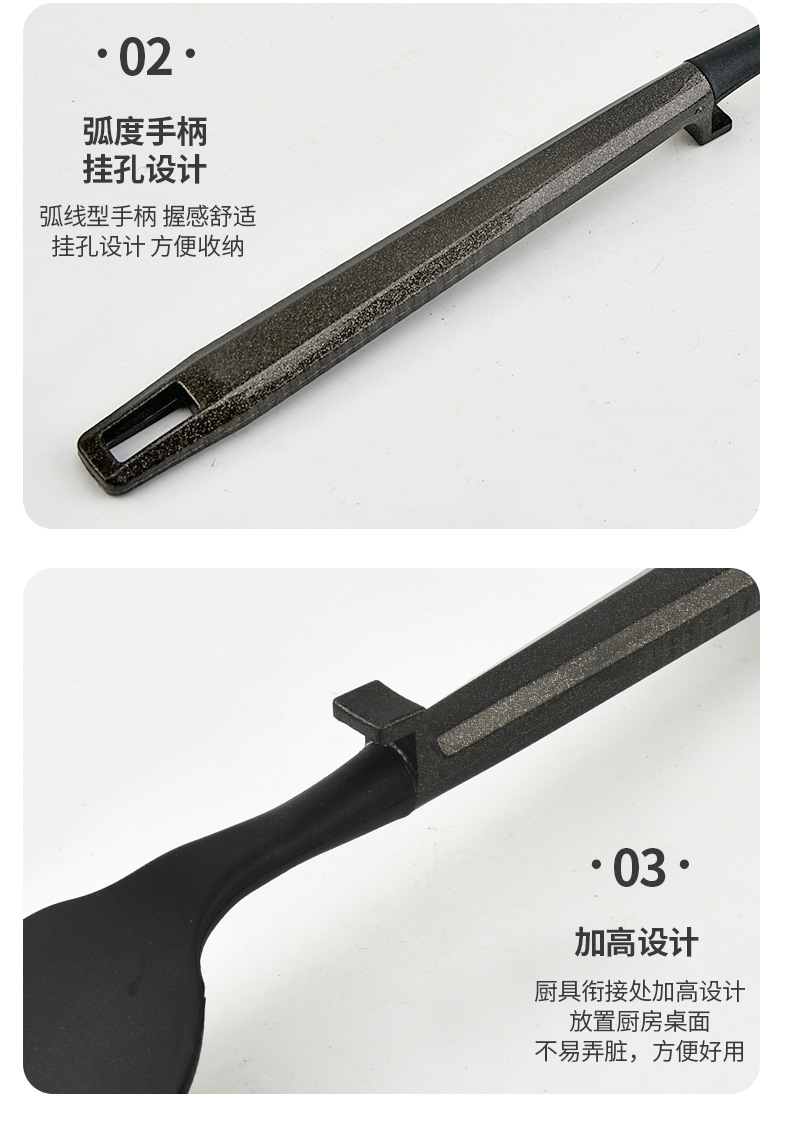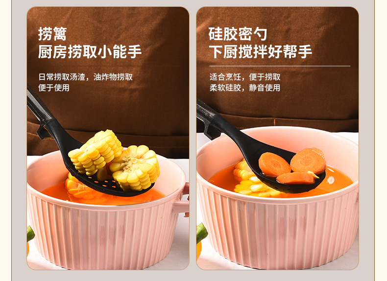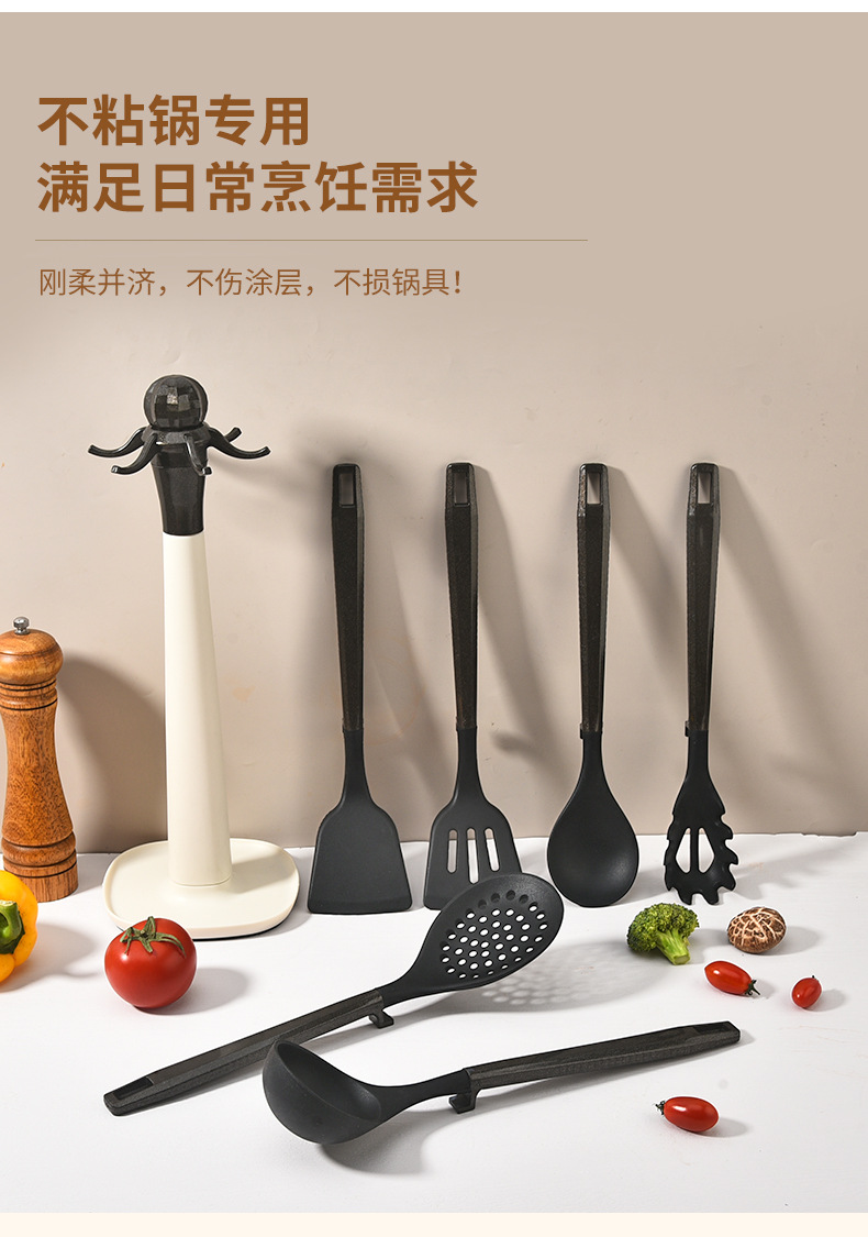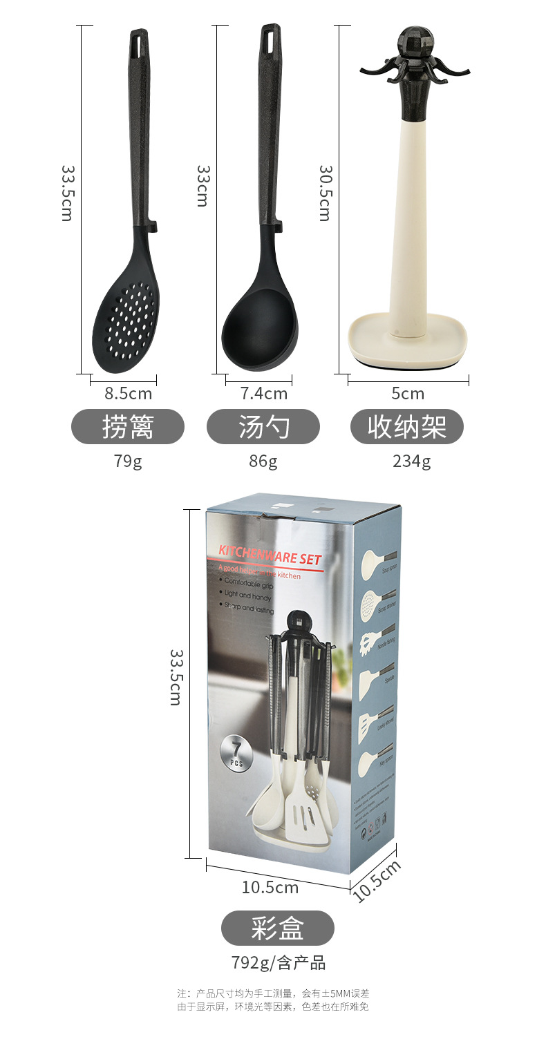 새로운 국경 실리콘 주방 용품 7 피스 세트는 주방 용품 고온 저항성 주걱 플라스틱 랙 삽 도구를 요리 할 수 있습니다.