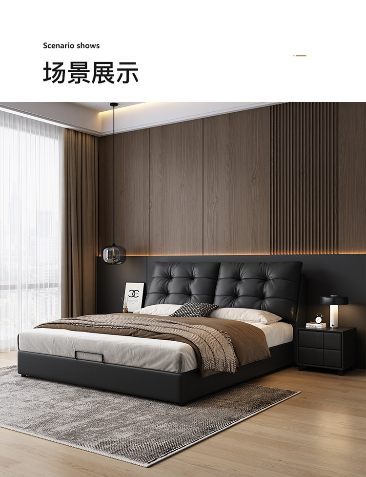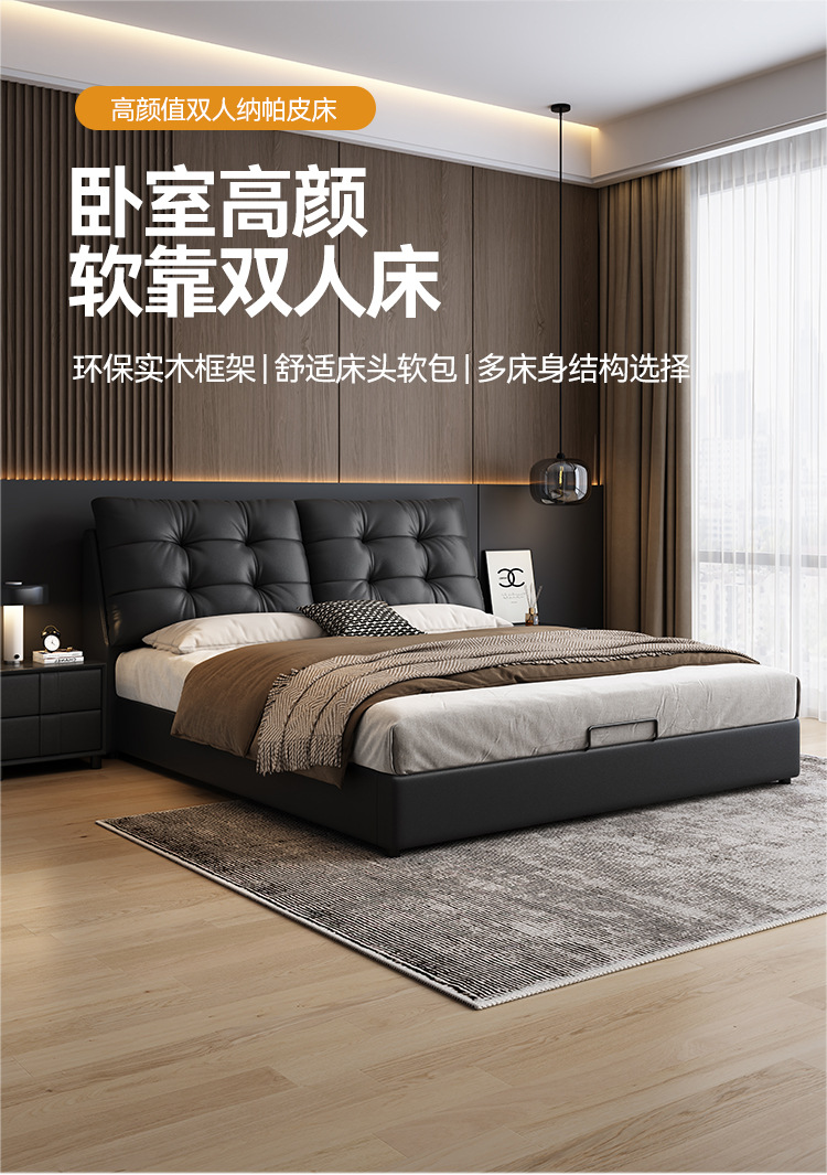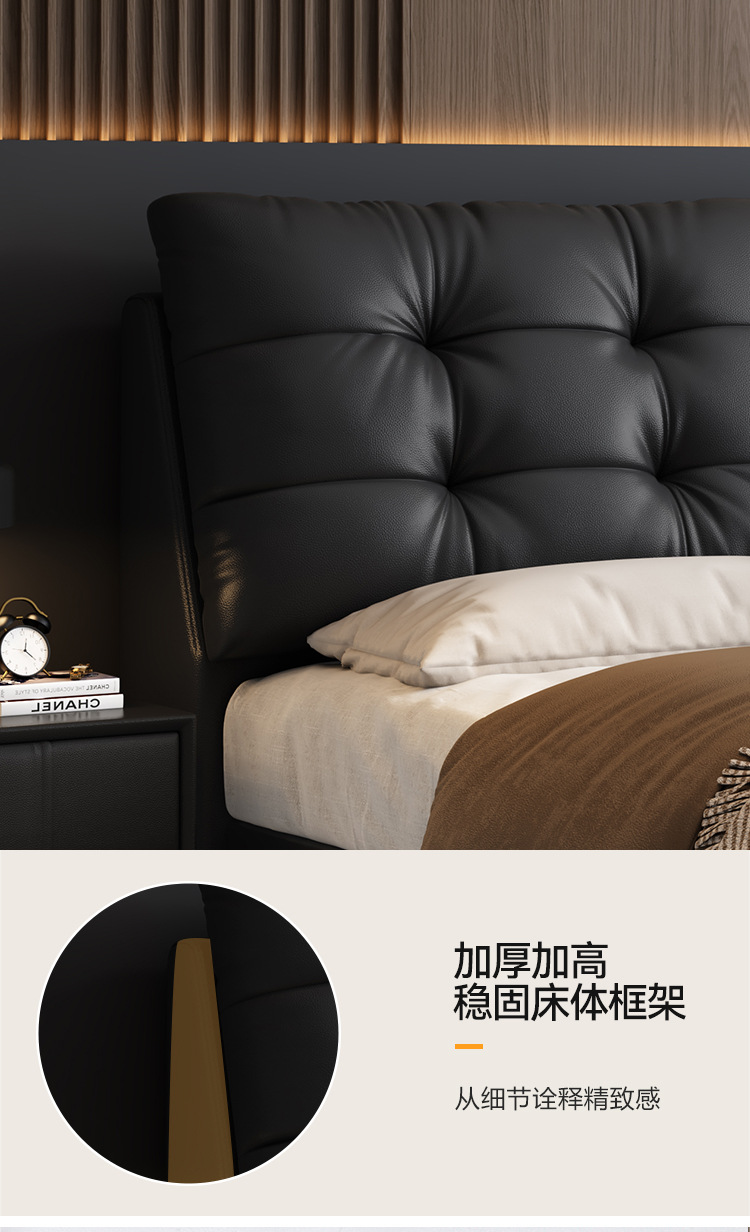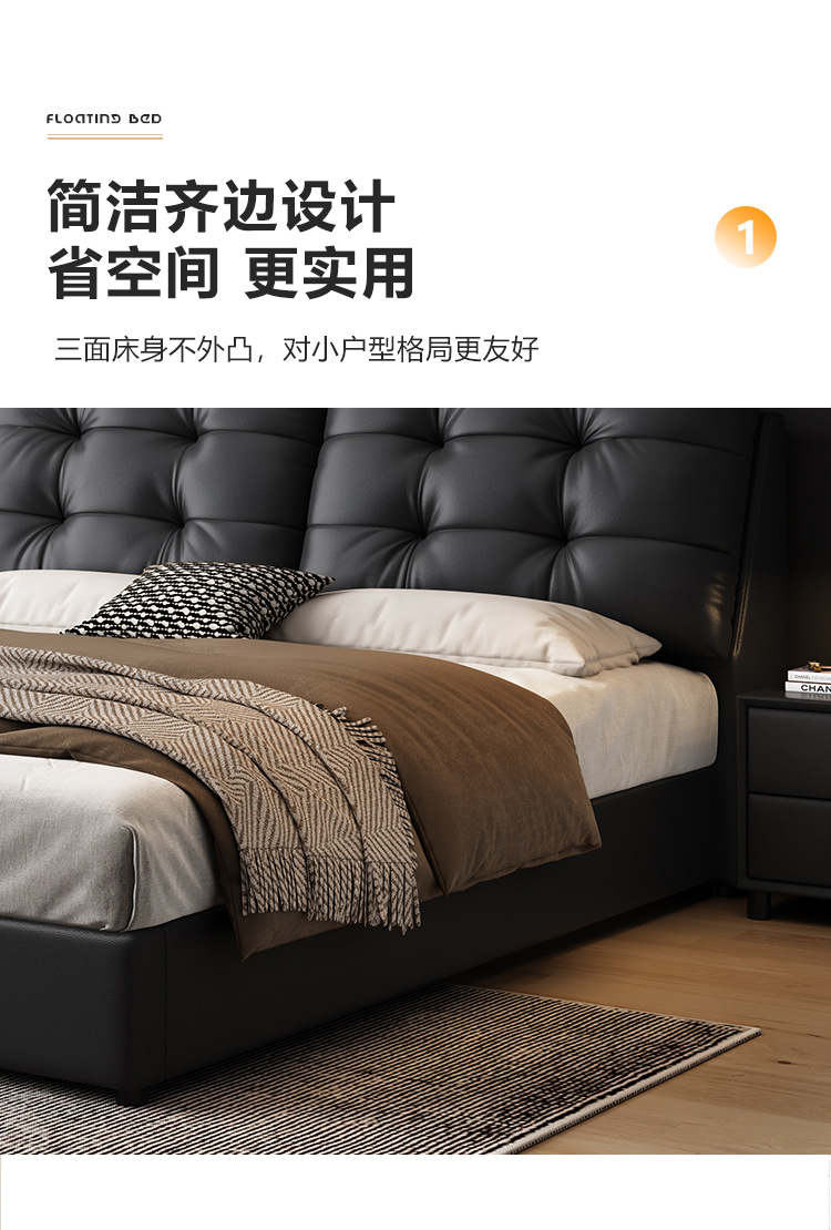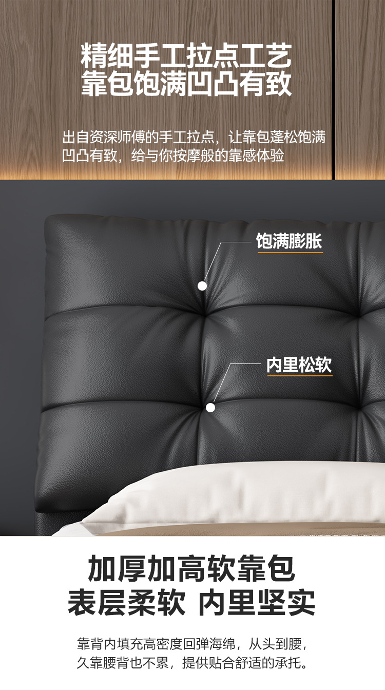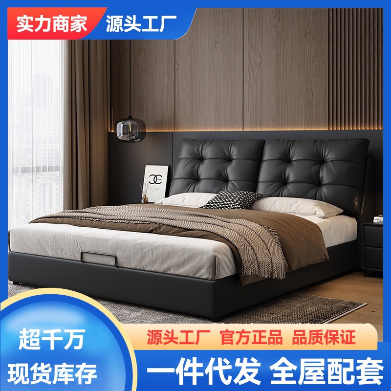 현대 간단한 1.5 m 가죽 침대 북유럽 스타일 가벼운 럭셔리 소프트 가방 침대 작은 아파트 1.8 마스터 침실 더블 퀸 침대 이탈리아 스타일 미니멀리스트스토어 가기