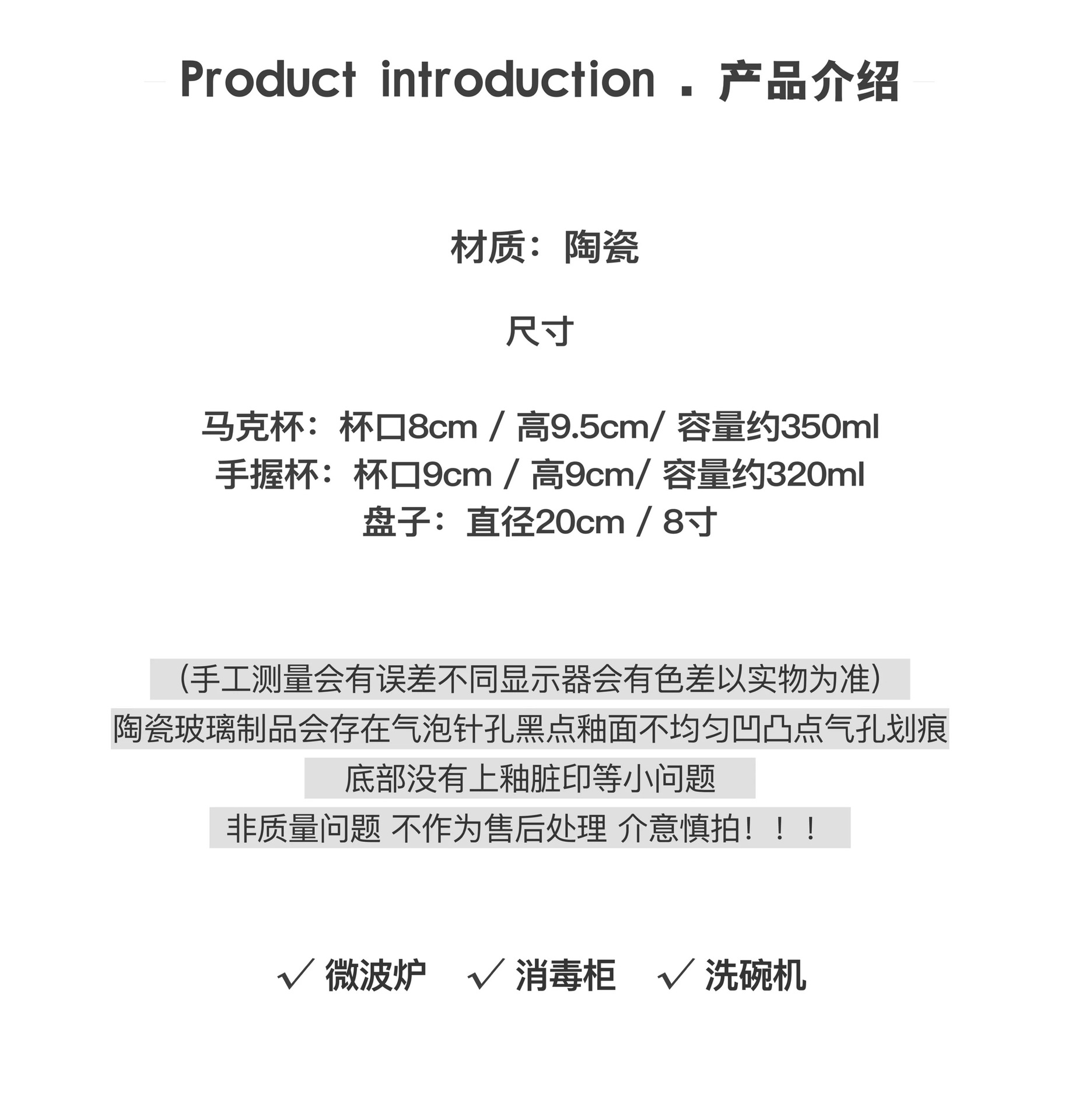 有黑点 气泡 凹凸点 釉色不均匀 划痕 底部线有小许坑洼,等属于正常的工艺现象,请勿以艺术品标准考量,不能接受的请不要购买。