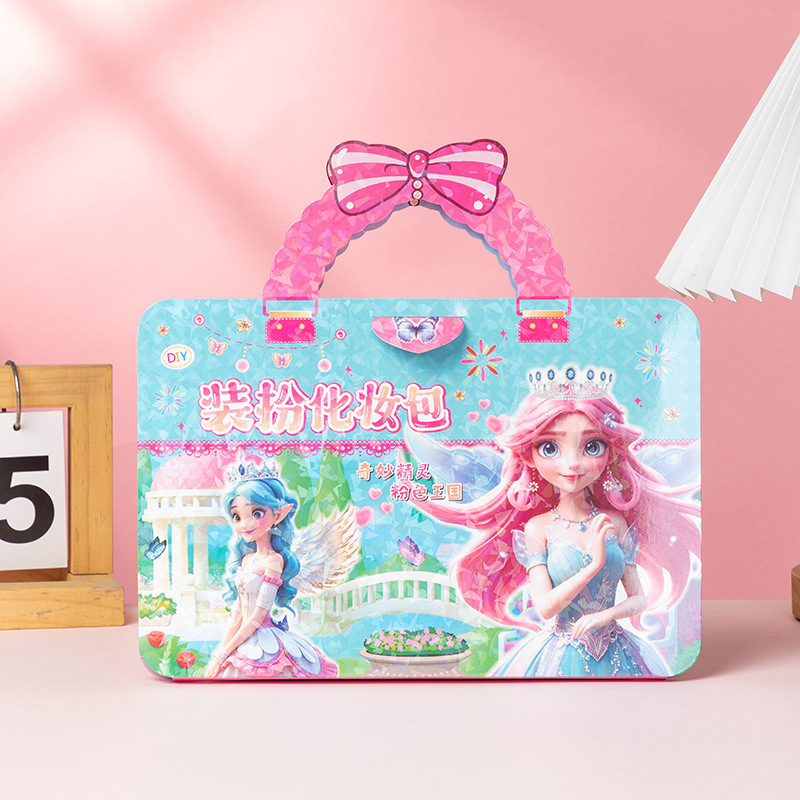 어린이 휴대용 원피스 메이크업 가방 공주 아이샤 Diy 원피스 가방 낙서 그림 스티커 교육 장난감 책스토어 가기