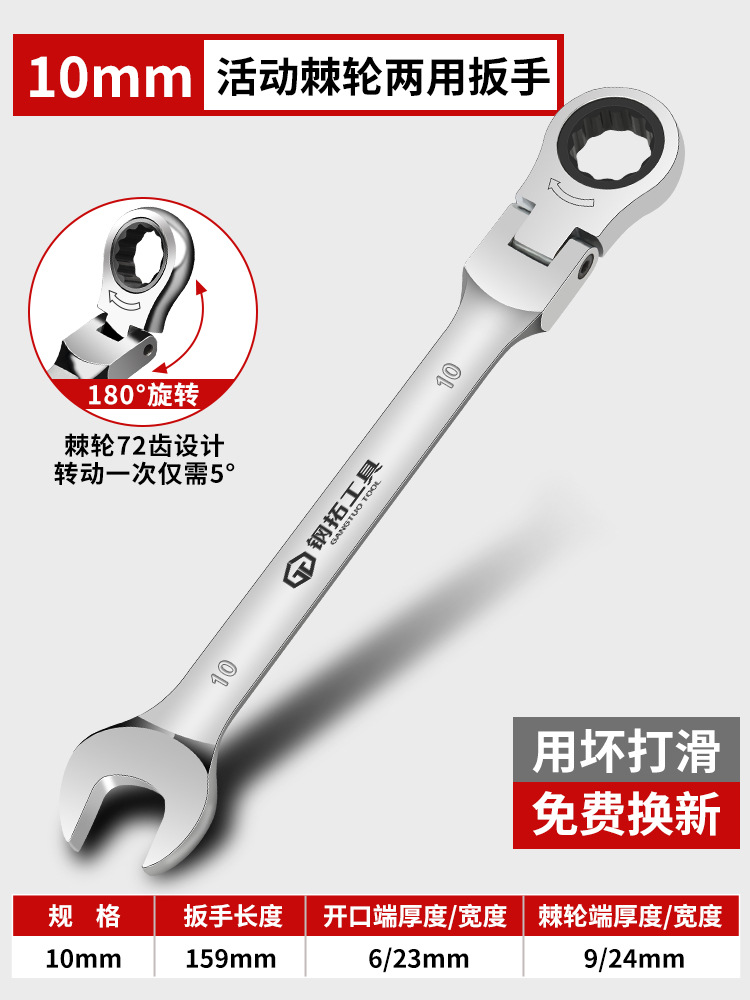 오픈 래칫 렌치 10mm 헤드 크롬 바나듐 강철은 라벨링을 대체할 수 있습니다. 양두 토크 렌치 자동 수리 도구스토어 가기