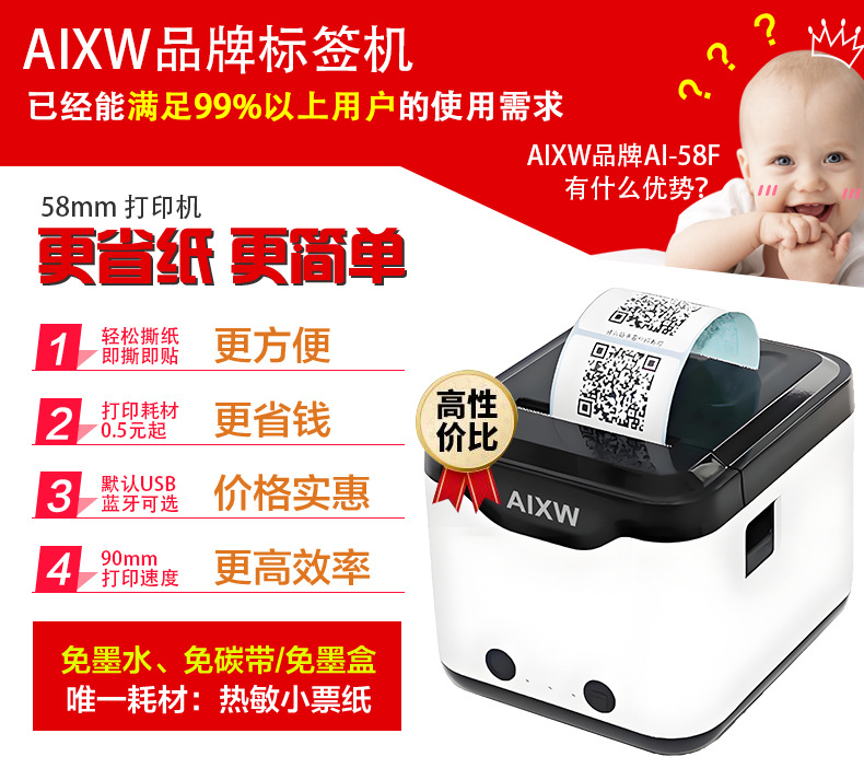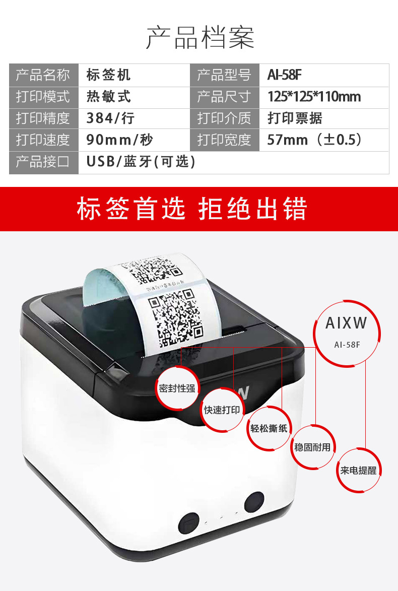 58mm蓝牙热敏标签机手机连接双模奶茶店杂货铺商品价格标签打印机