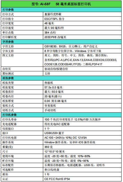 1.兼容ESC/POS打印指令。