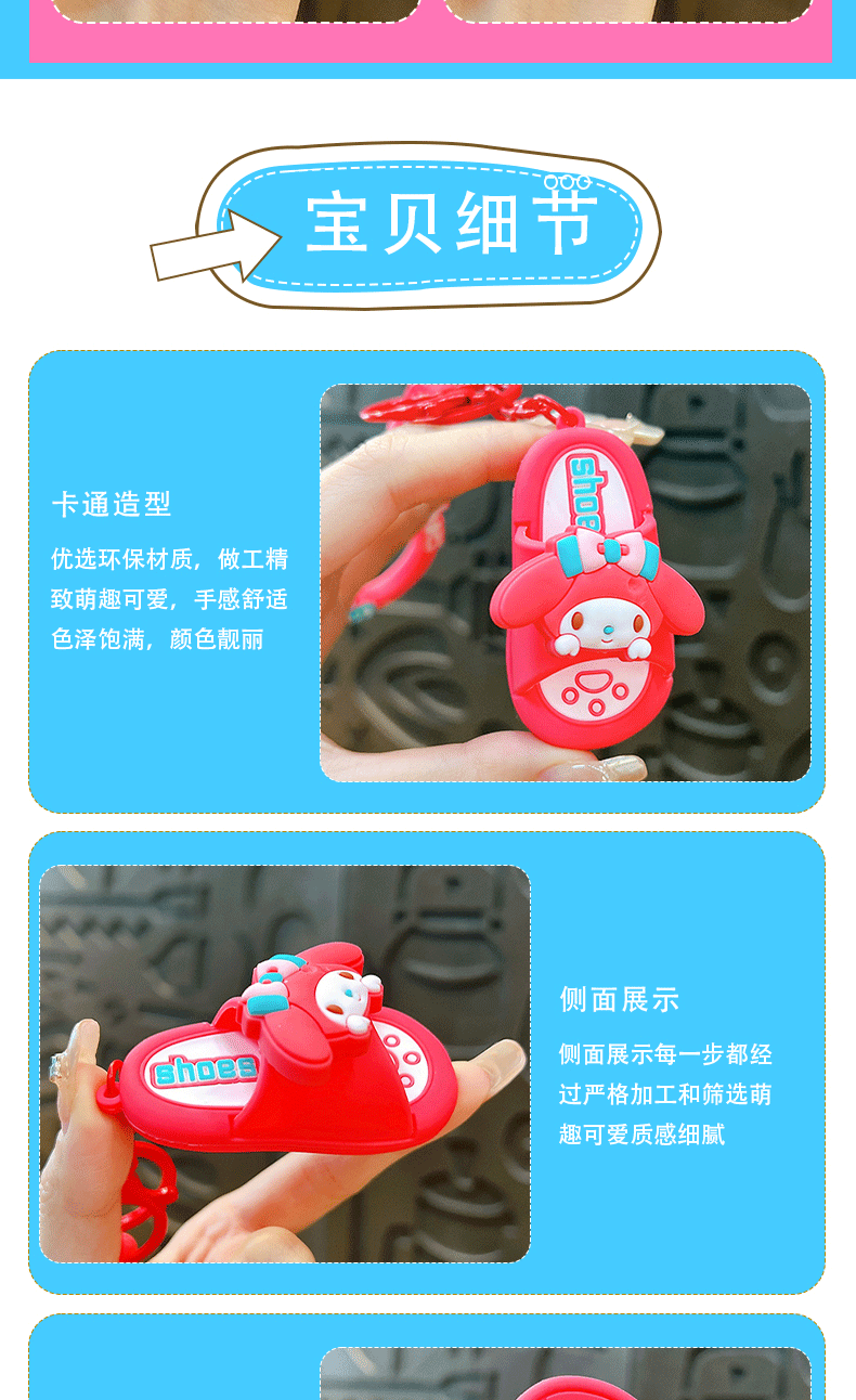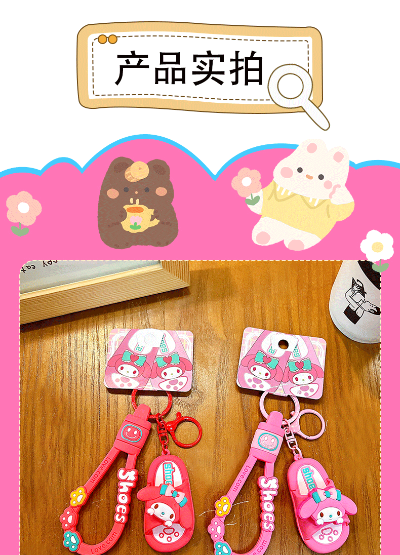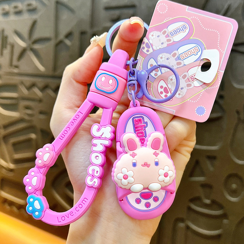 창조적 인 작은 동물 슬리퍼 키 체인 펜던트 여성 가방 펜던트 자동차 키 체인 클로 기계 선물 도매