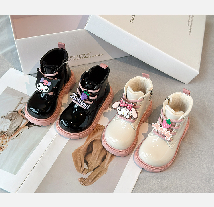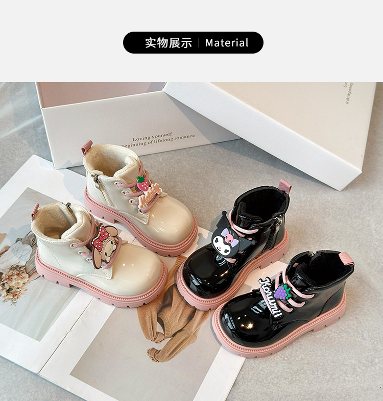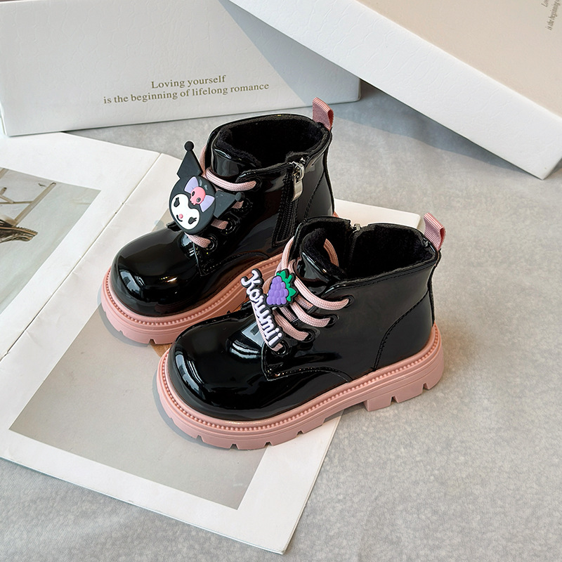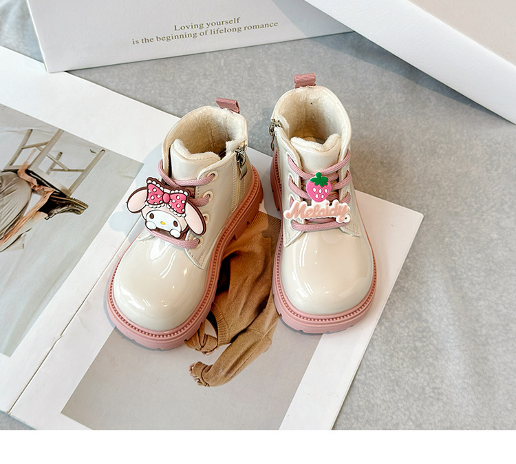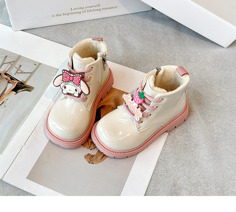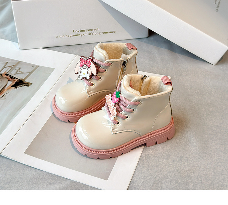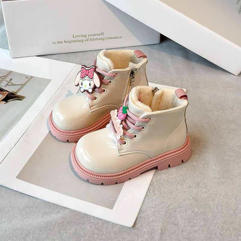 소녀 부츠 2024 겨울 새 기모 어린이 짧은 부츠 부드러운 바닥 따뜻한 코튼 부츠 쿨 루미 리틀 걸스 가죽 부츠