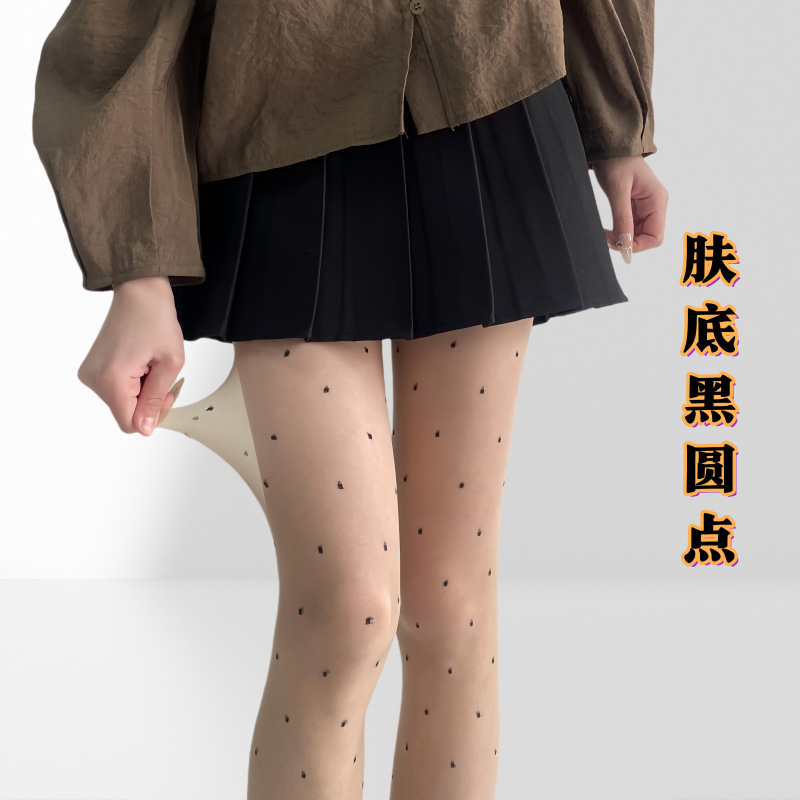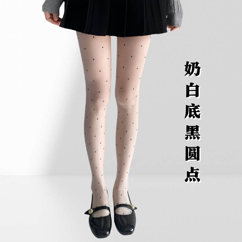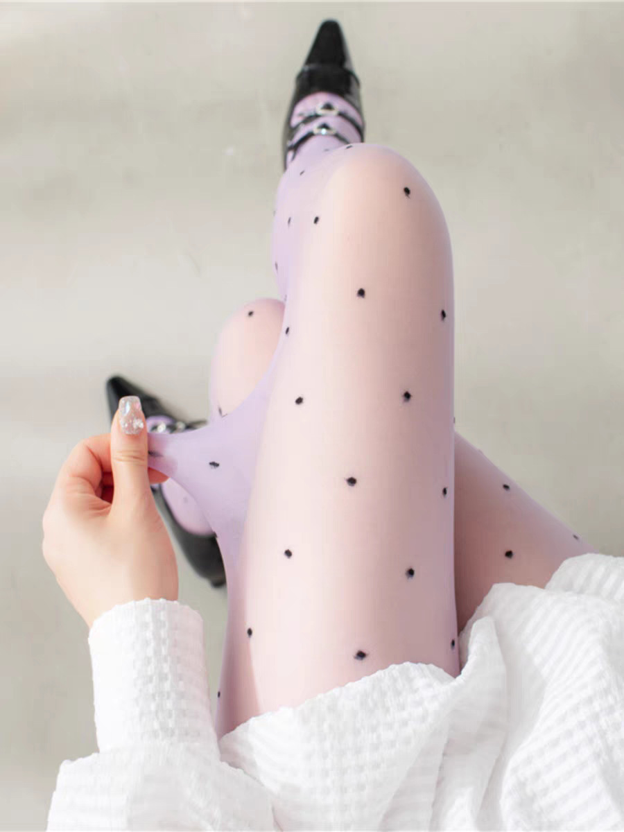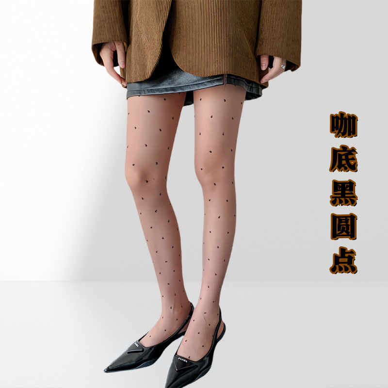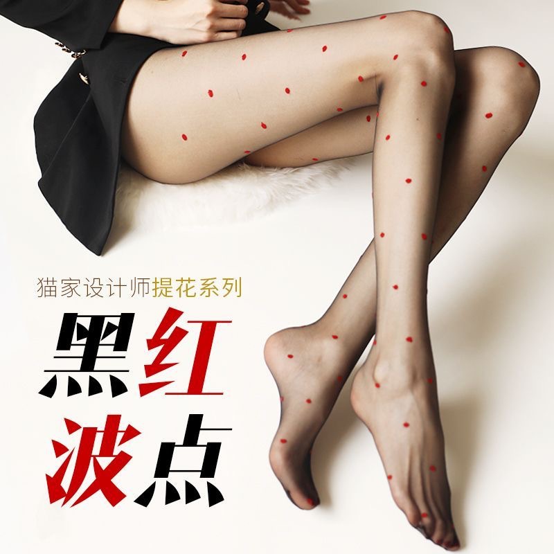레드 러브 스타킹, 레트로 0D 폴카 도트 블랙 실크 피치 하트, 초박형, 고투명 도트, 섹시한 블랙 스팟 팬티 스타킹스토어 가기