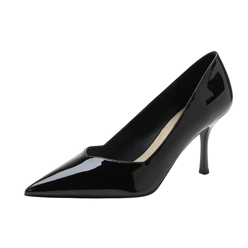 2025 년 특허 가죽 확대 하이힐 V-입 얕은 뒤꿈치 뾰족한 뒤꿈치 여성용 통근 여성 신발 32 33