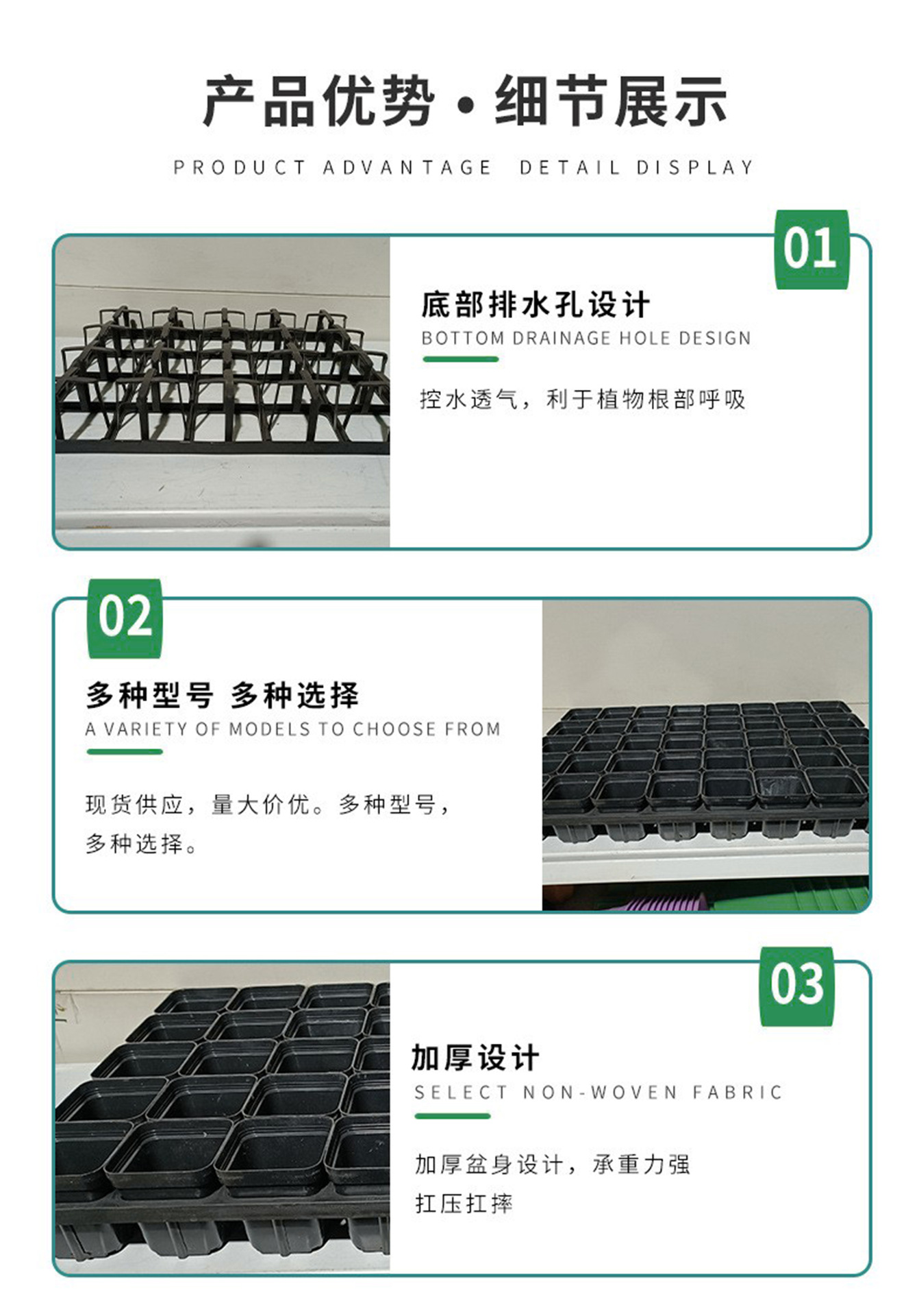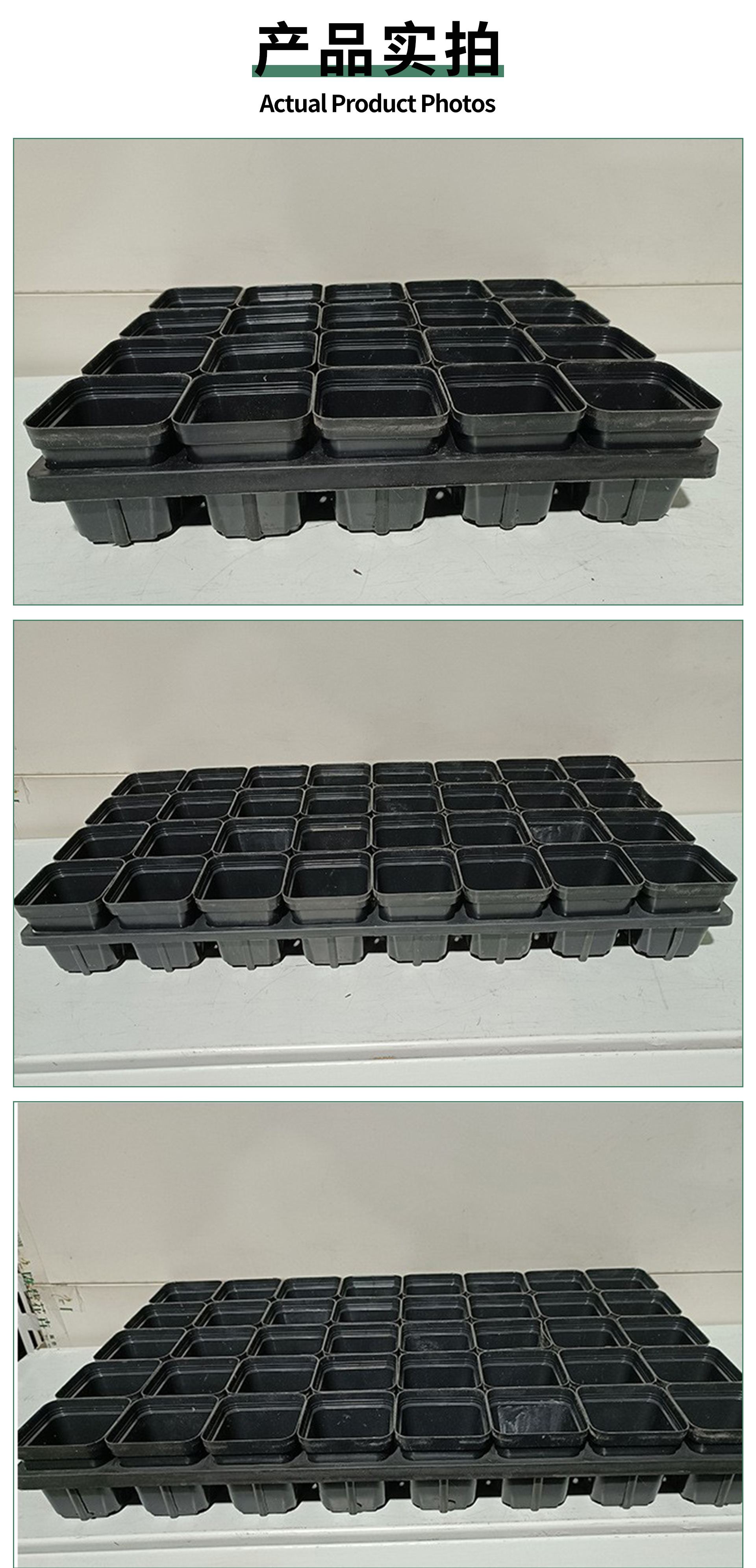 두꺼운 사각 화분 받침대, 다육식물 재배용 작은 검정 사각 화분 트레이, 꽃과 채소 재배용 묘목 트레이, 플라스틱 화분