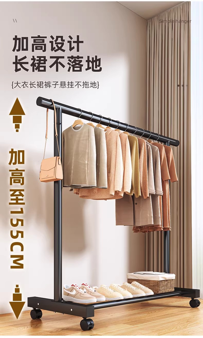 간단한 코트 랙 바닥 서 침실 가구 옷걸이 기숙사 단 하나 막대 보관 의류 건조 용 랙