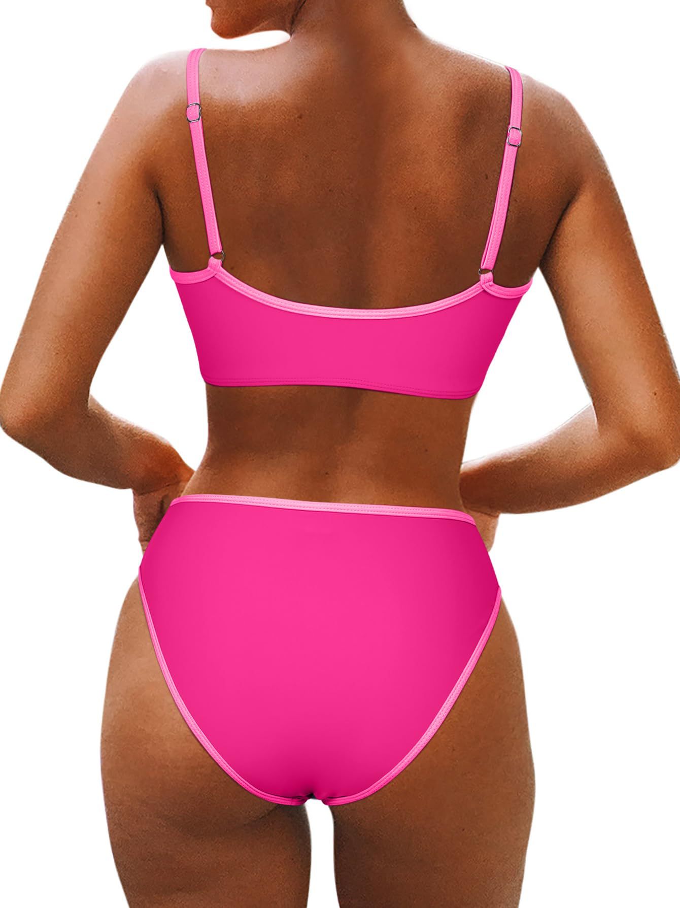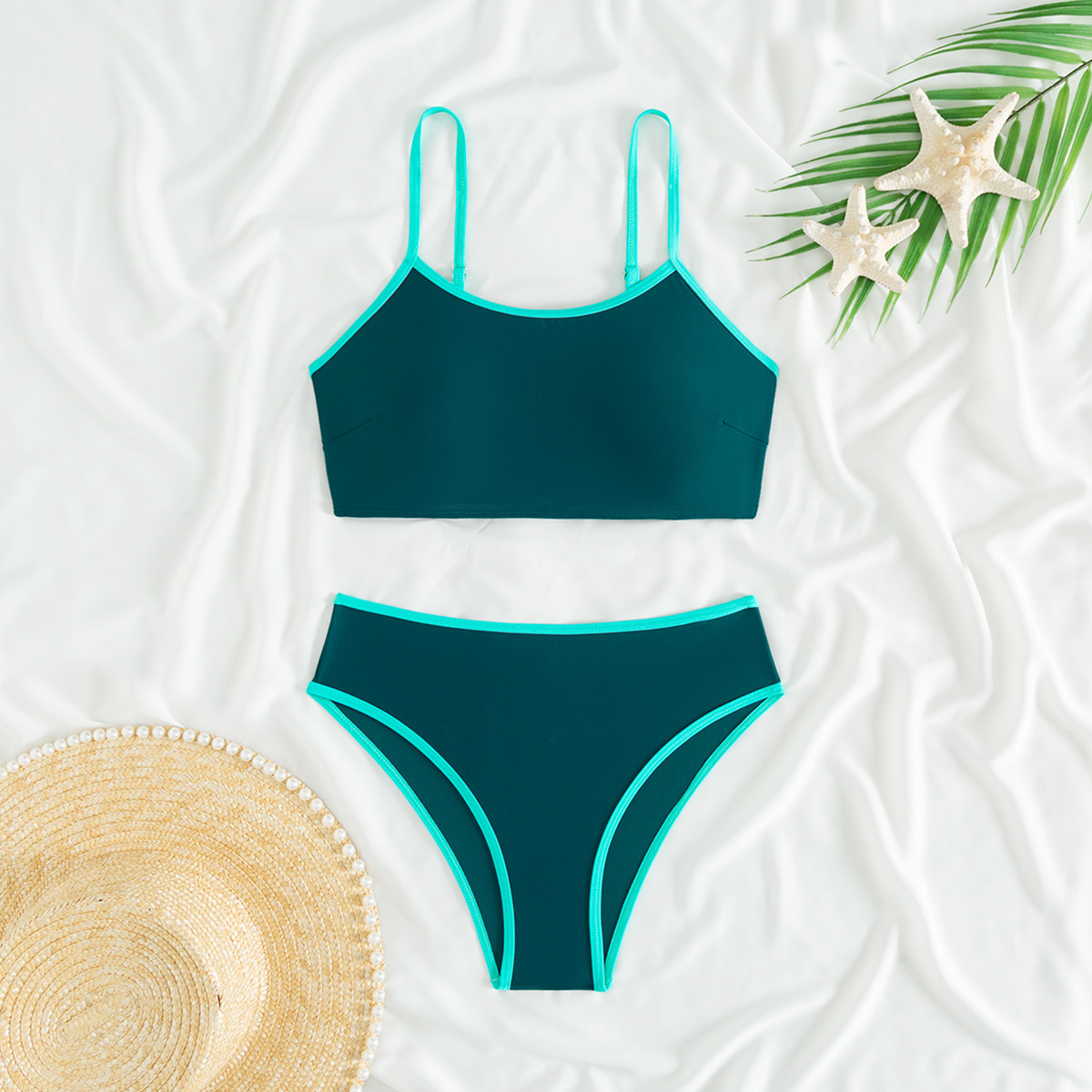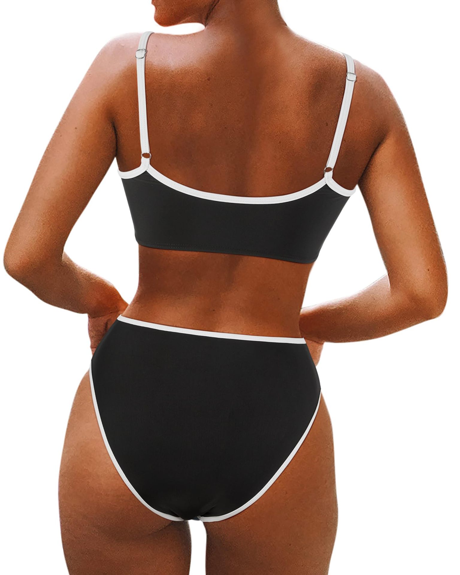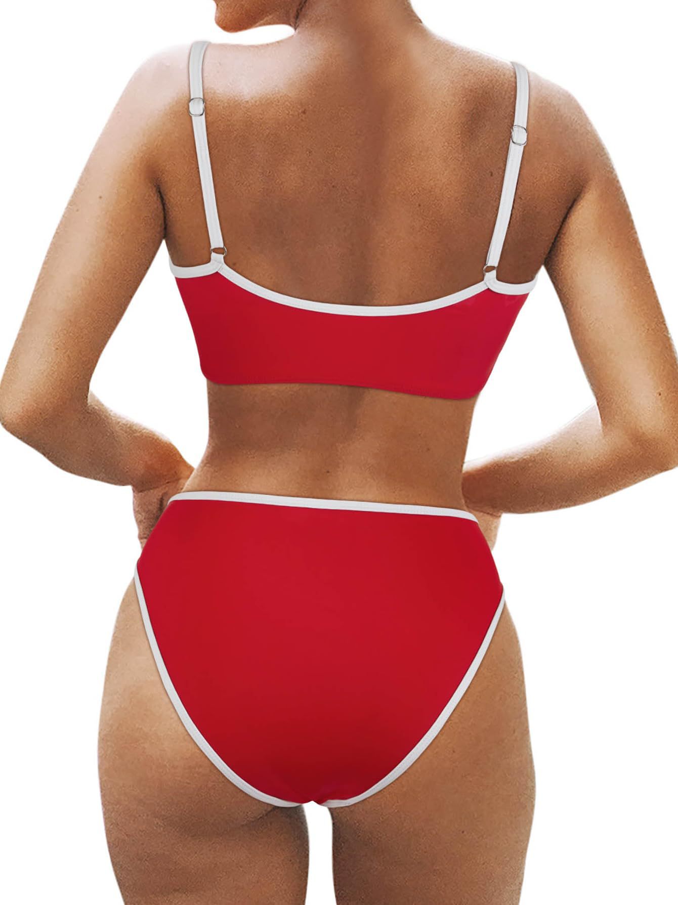 2025 새로운 유럽과 미국의 아마존 여성 대비 컬러 트림 하이 허리 스플릿 스포츠 비키니 세트 제조업체 재고스토어 가기