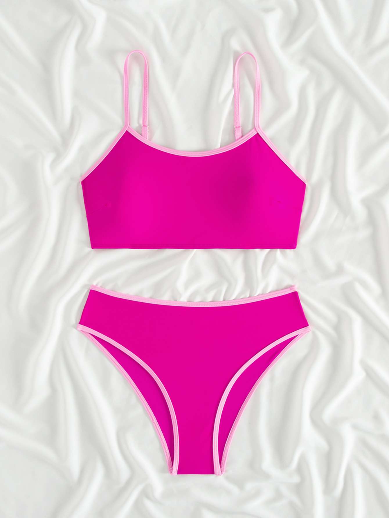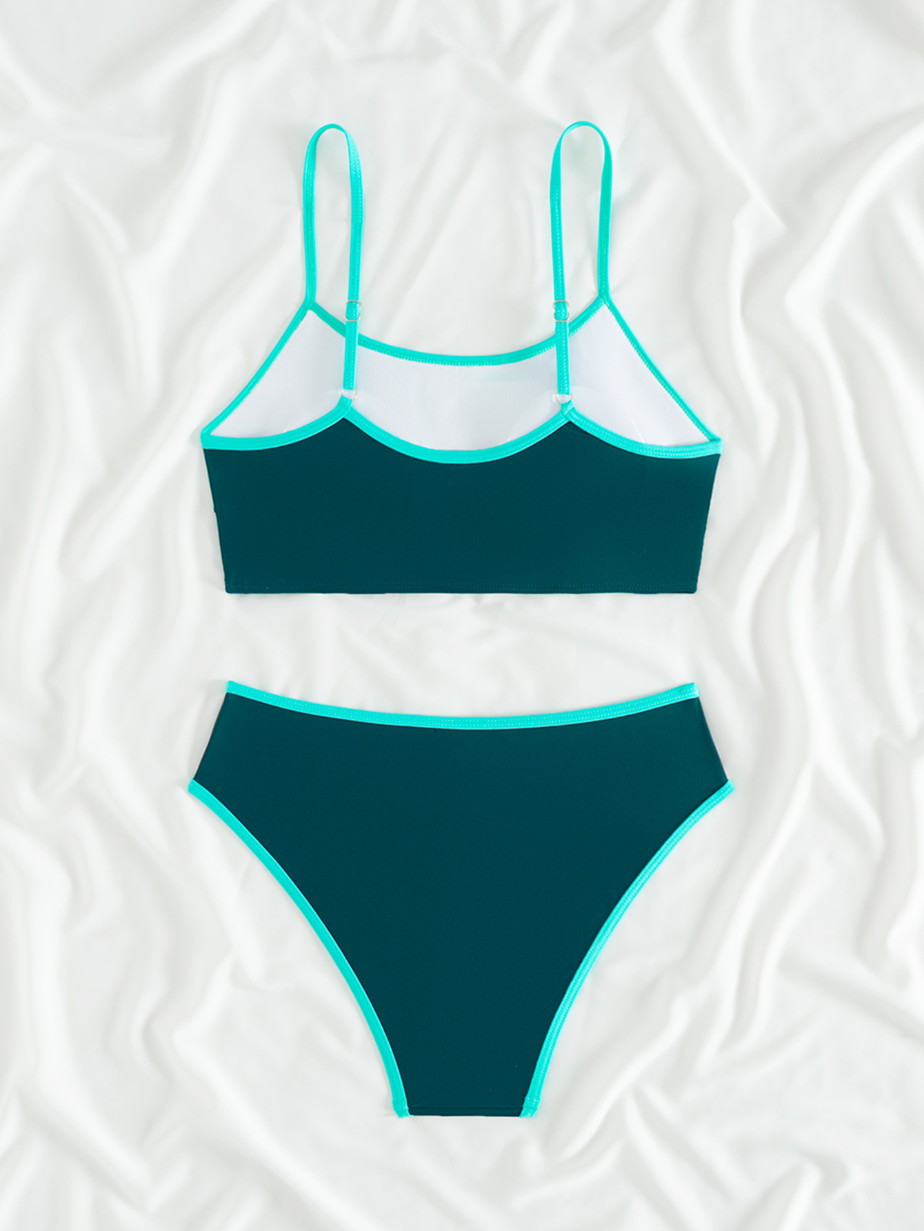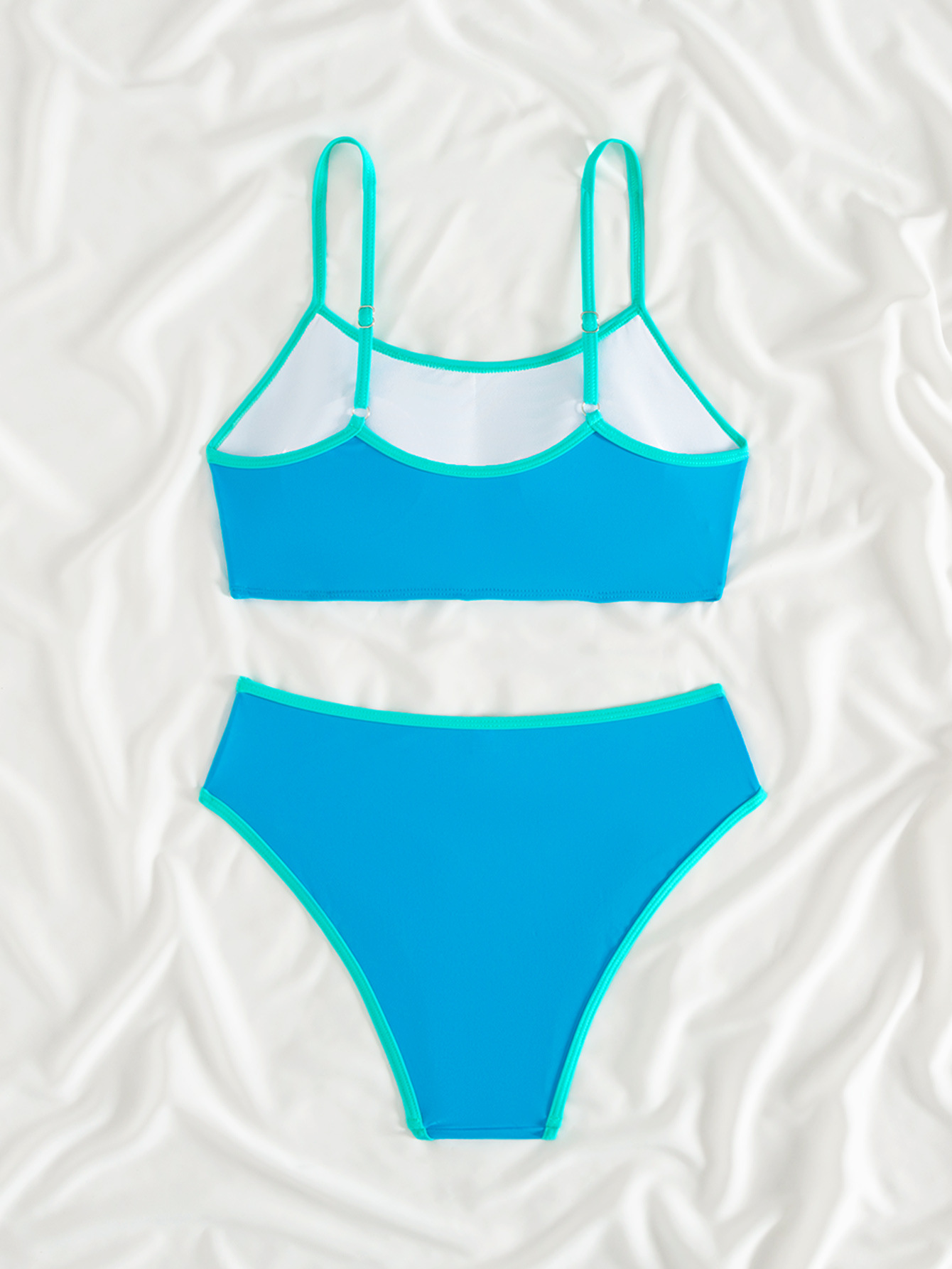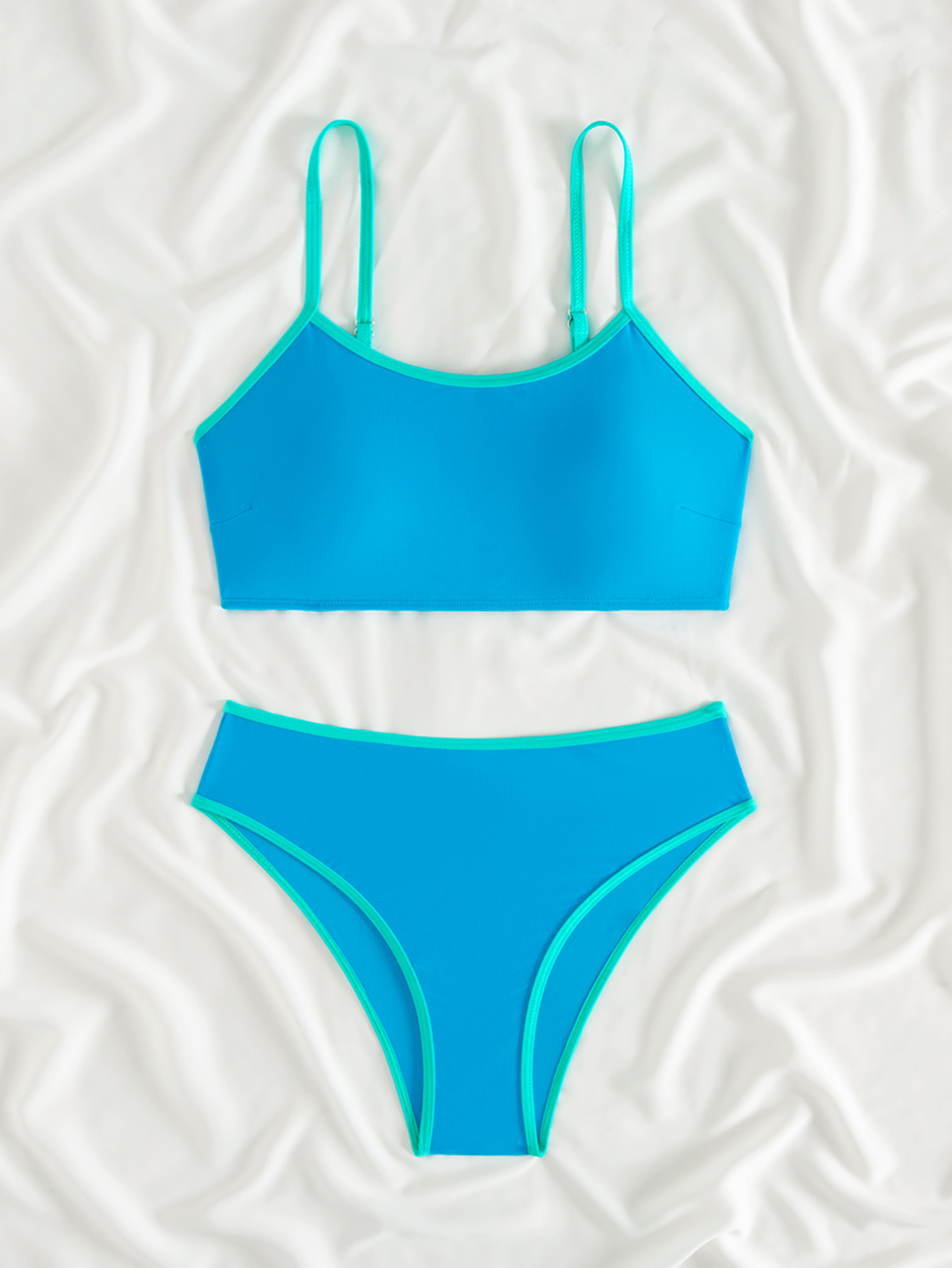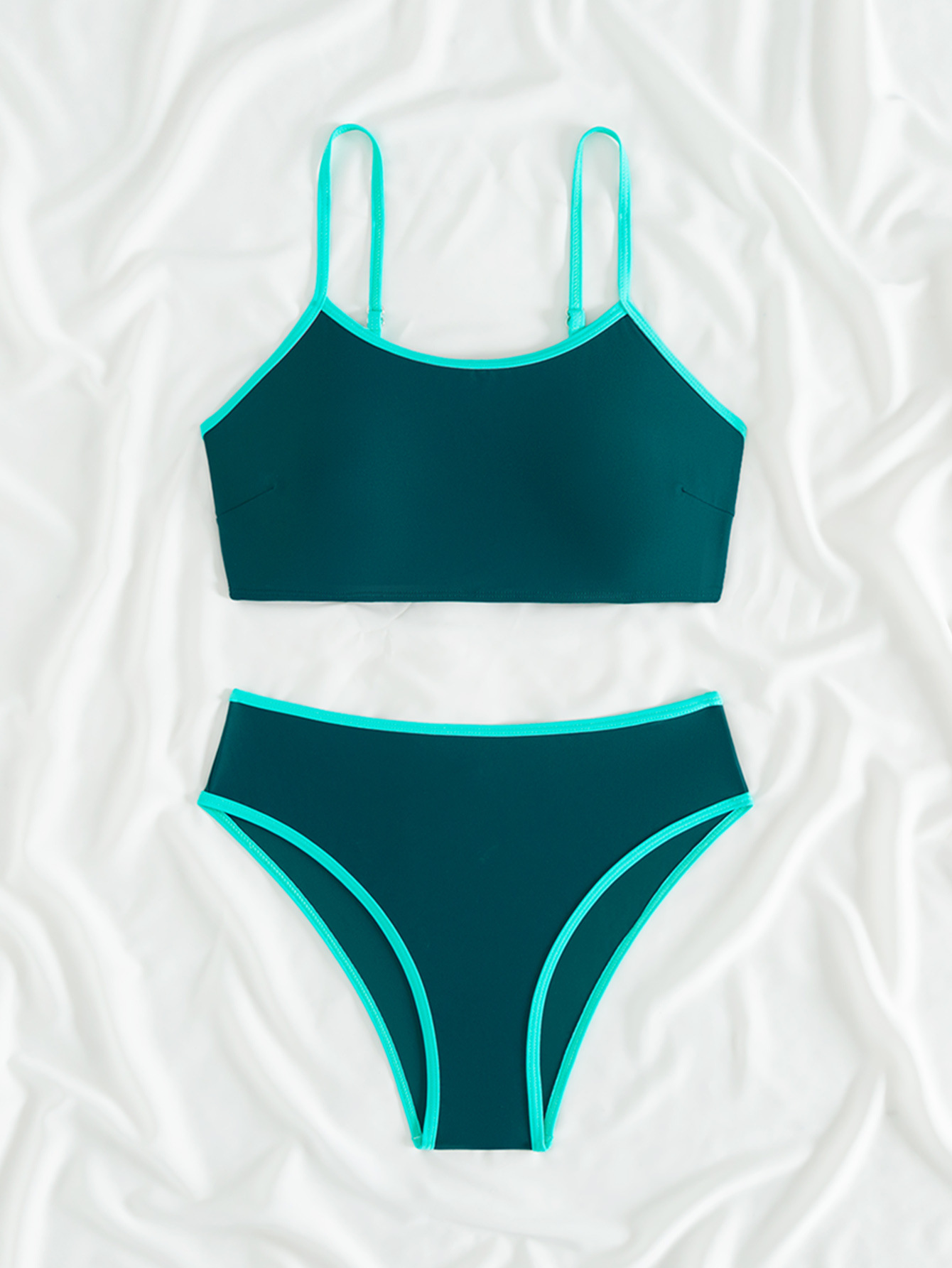 2025 새로운 유럽과 미국의 아마존 여성 대비 컬러 트림 하이 허리 스플릿 스포츠 비키니 세트 제조업체 재고스토어 가기