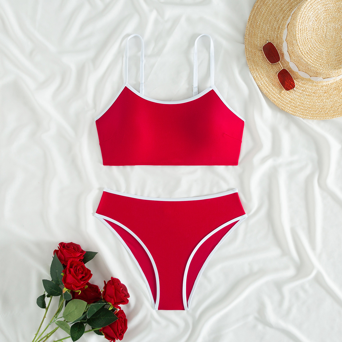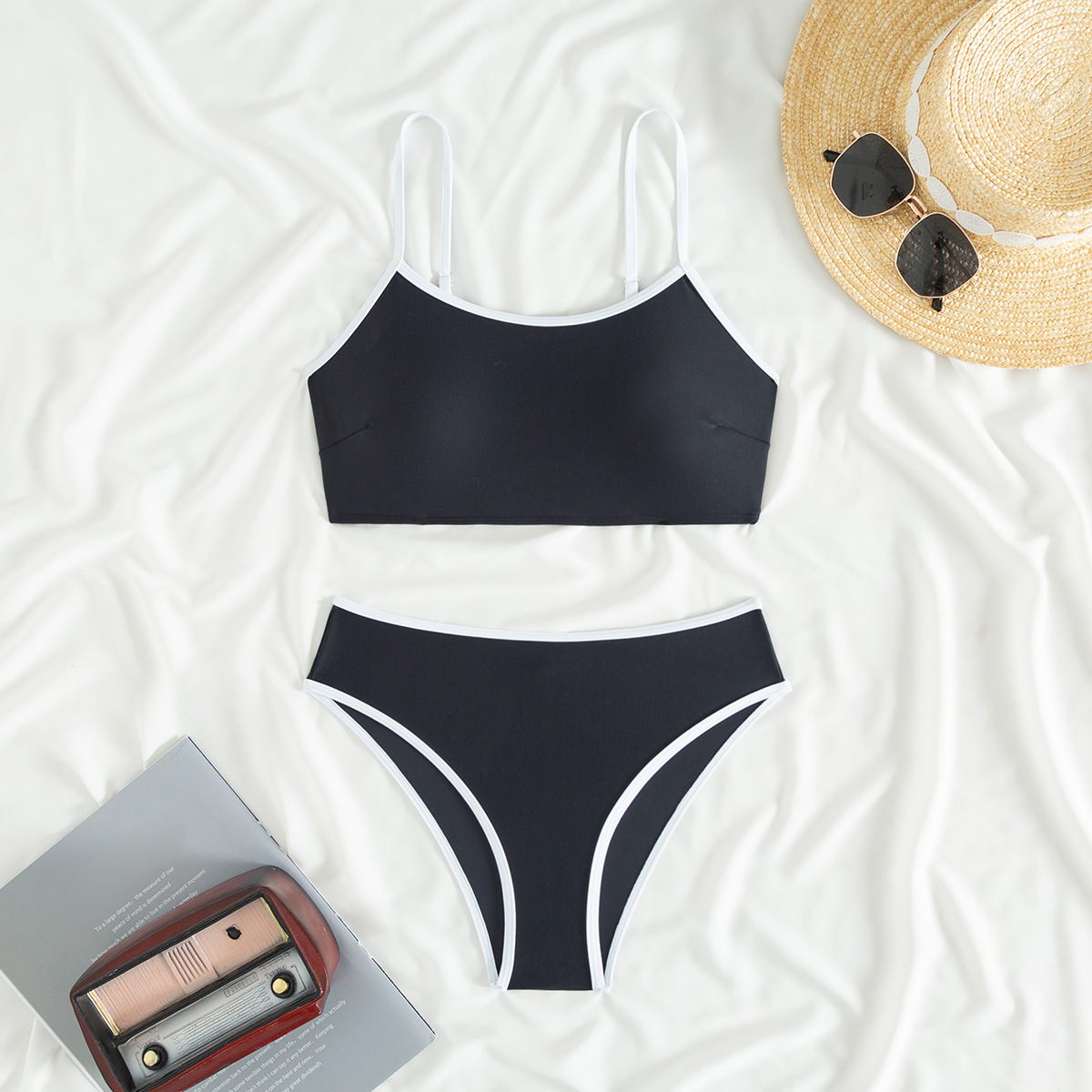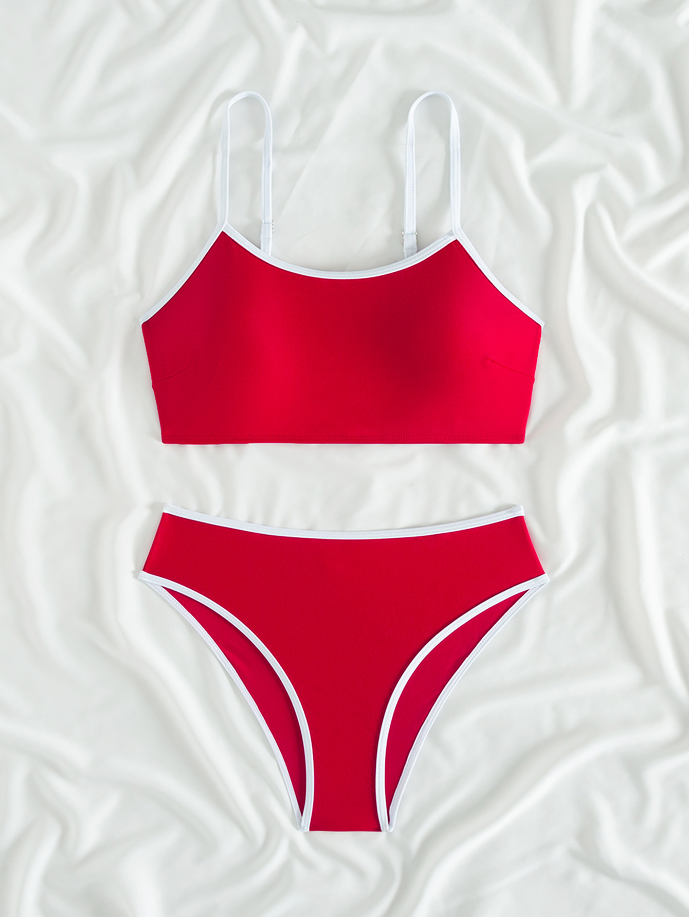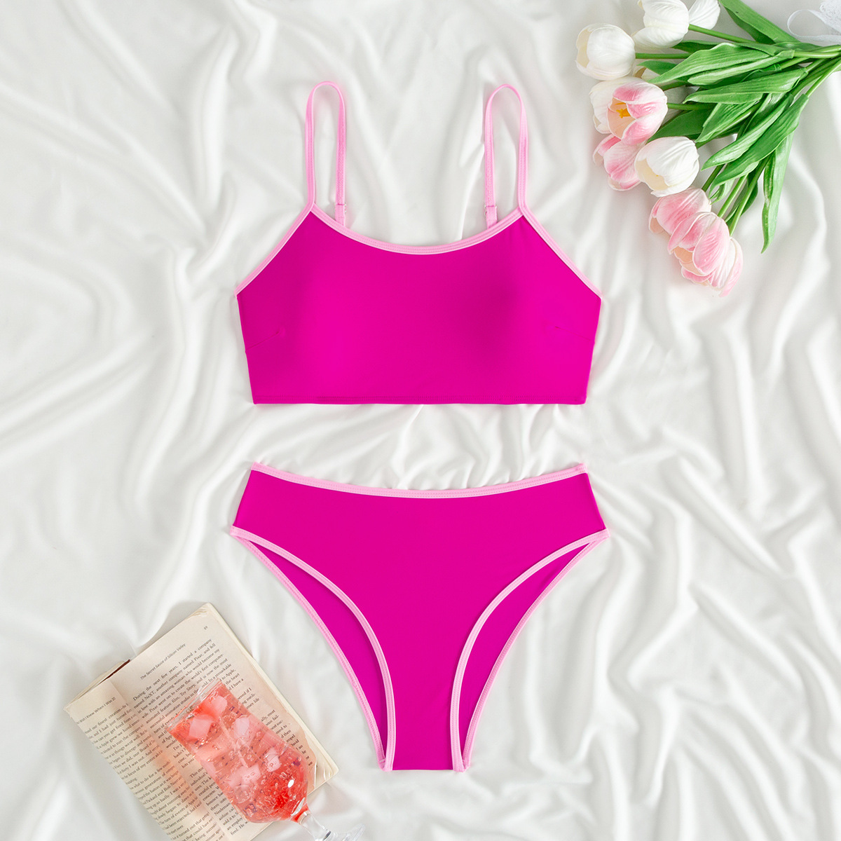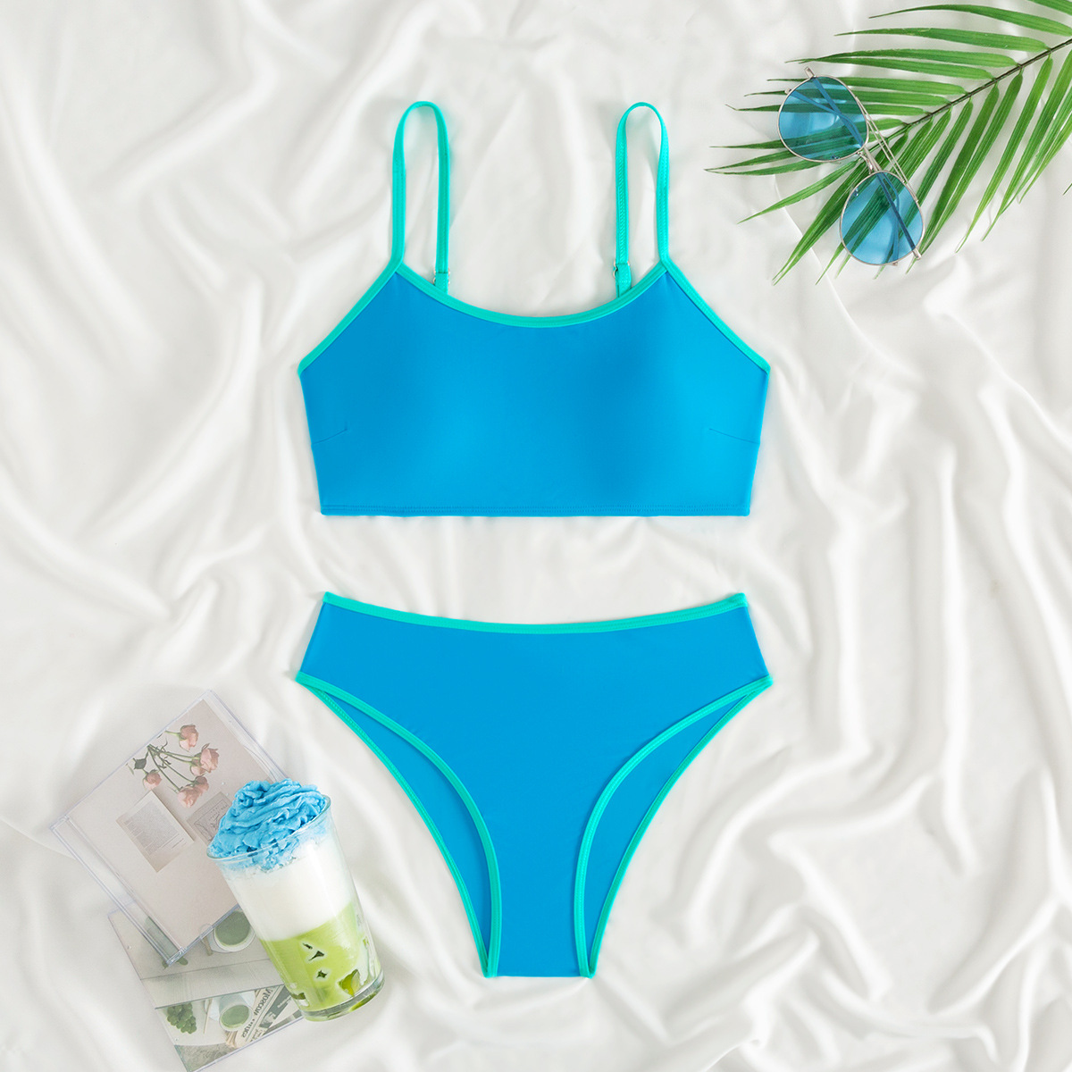 2025 새로운 유럽과 미국의 아마존 여성 대비 컬러 트림 하이 허리 스플릿 스포츠 비키니 세트 제조업체 재고