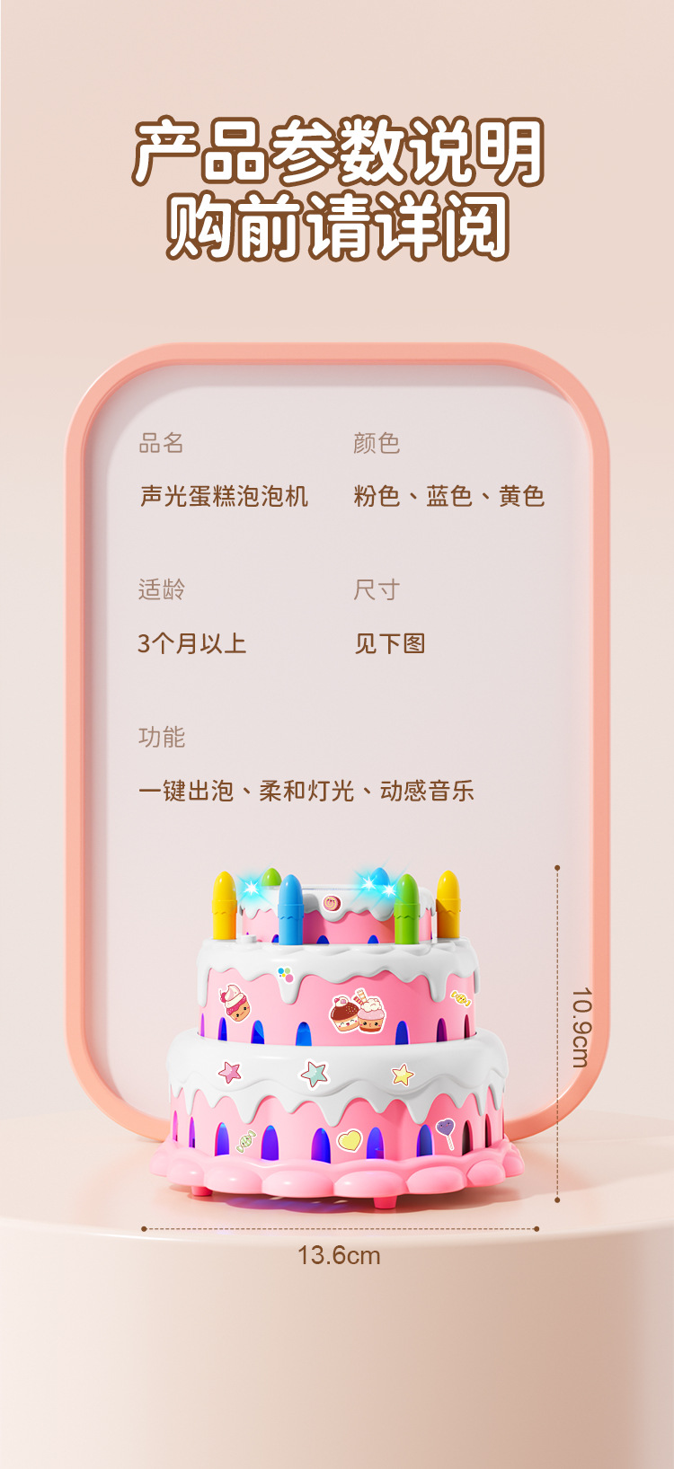 • 케이크 버블 머신 [노란색]이 기본으로 제공됩니다.