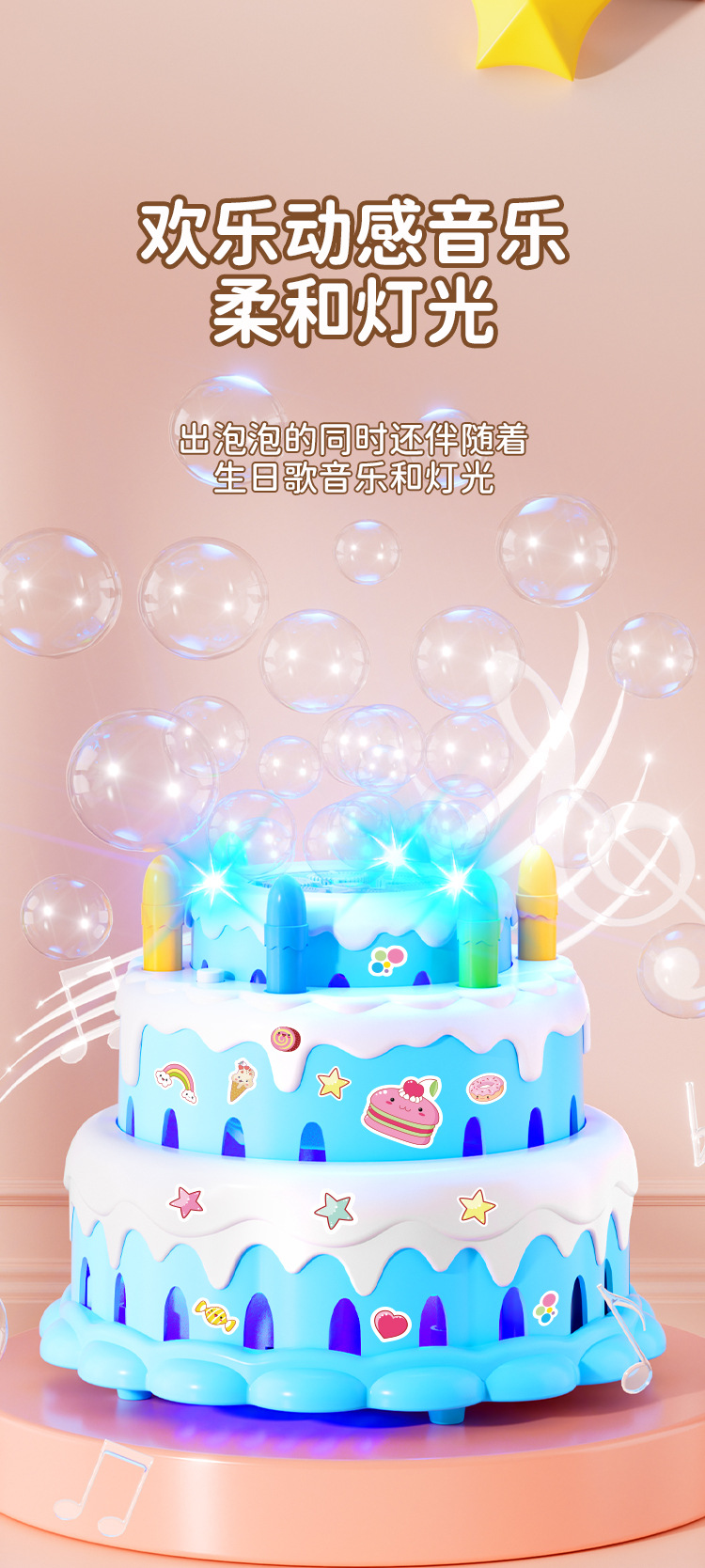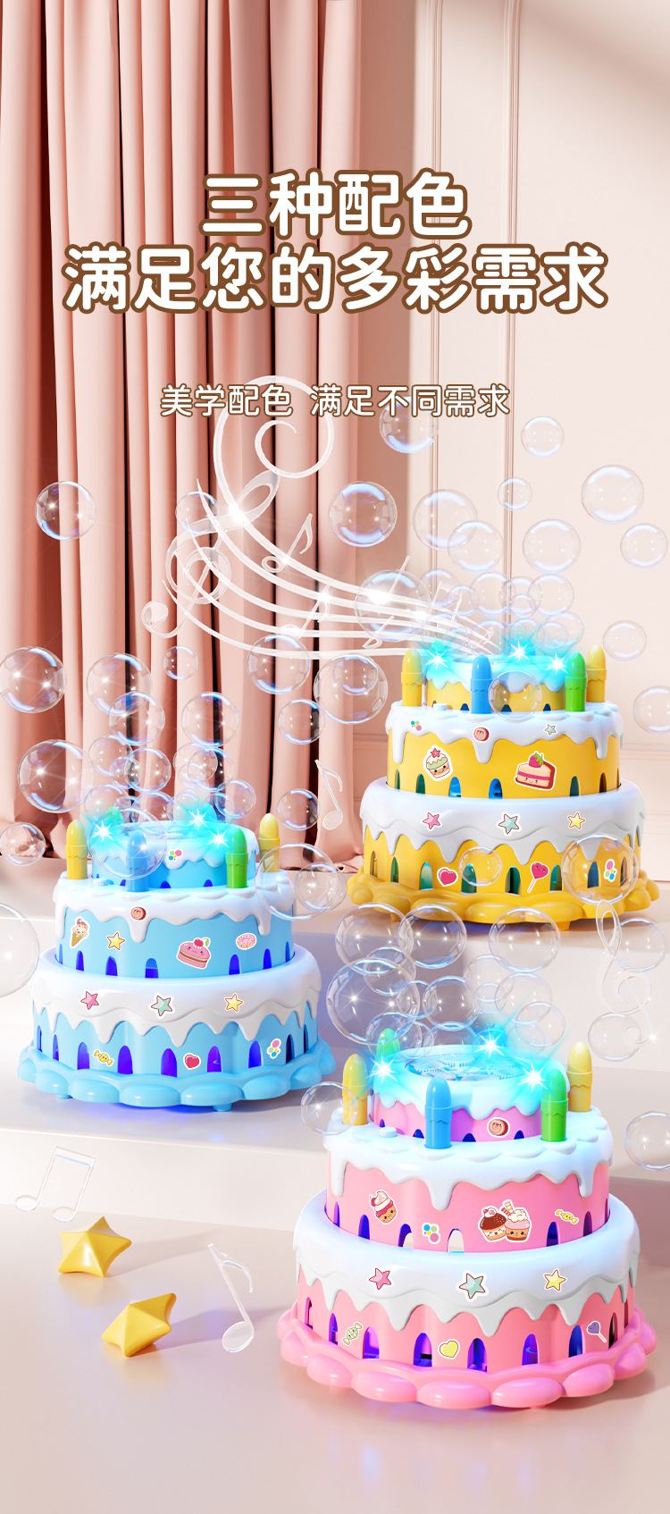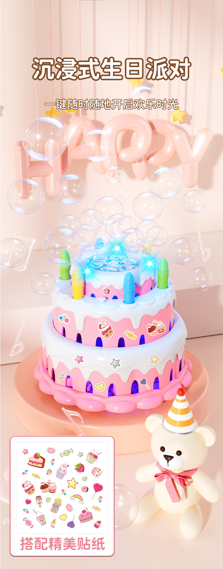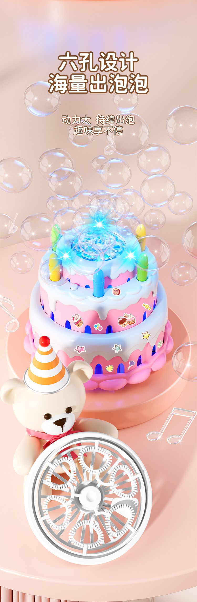 어린이 전기 케이크 거품 기계 멀티 홀 자동 거품 부는 가벼운 음악 생일 케이크 놀이 장난감스토어 가기