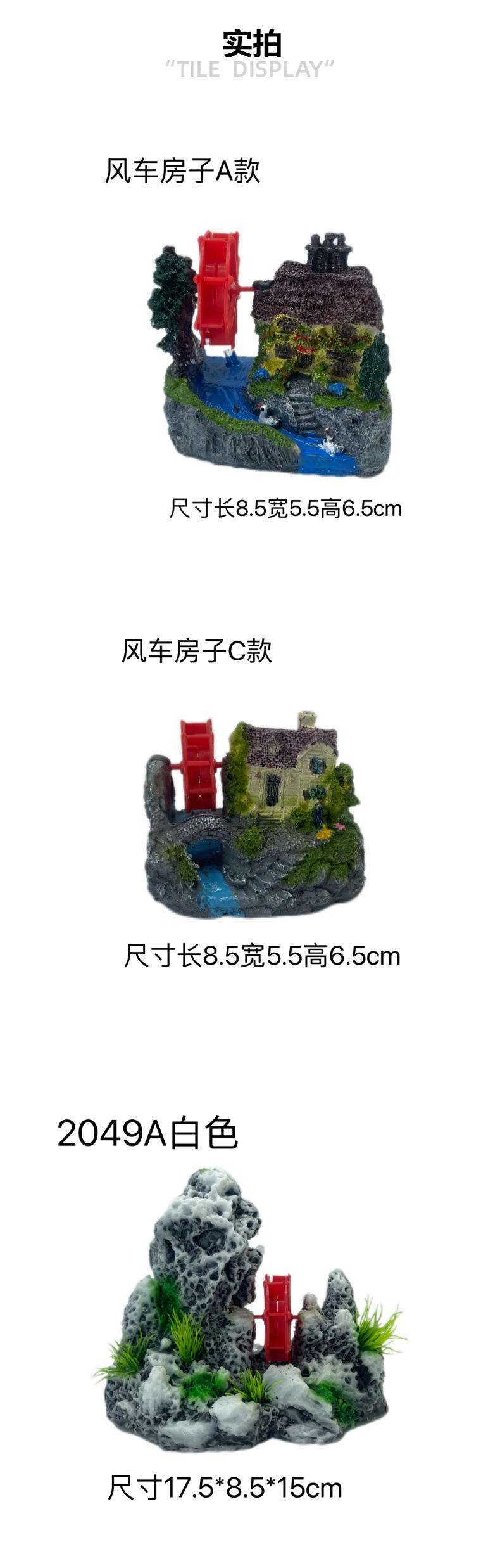 풍차 바위 미니 멀티 컬러 수지 공예 물고기 탱크 장식품 수중 세계 복고풍 도매 마이크로 풍경스토어 가기