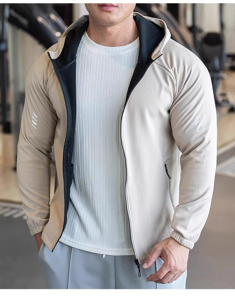 가을과 겨울 기모 따뜻한 스포츠 재킷 남자의 빠른 건조 방풍 방수 커플 재킷 승마 피트니스 훈련 재킷