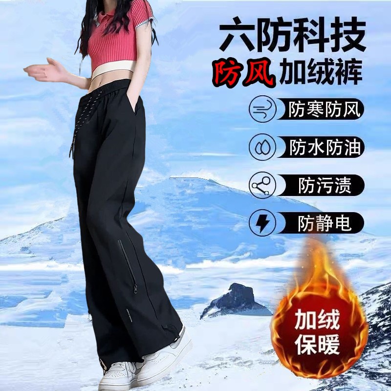 방수 방풍 미국식 작업 바지 여성용 가을과 겨울 새 기모 캐주얼 스트레이트 플러스 사이즈 와이드 레그 클라이머 팬츠