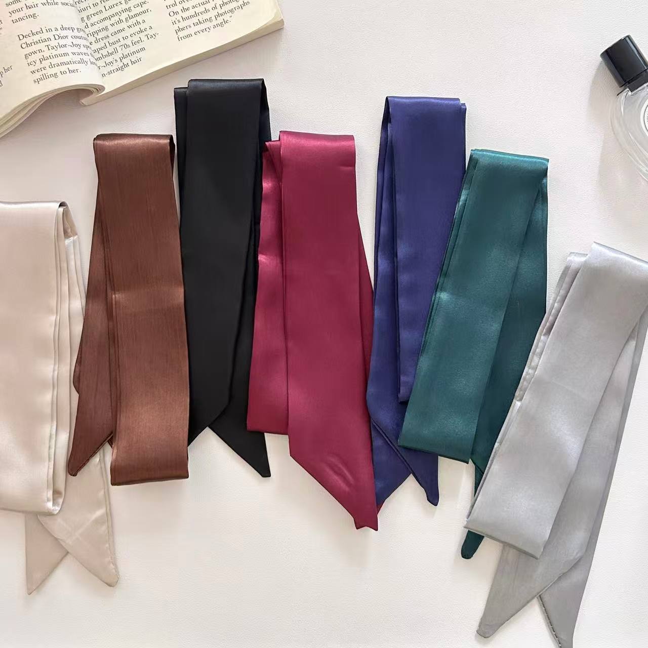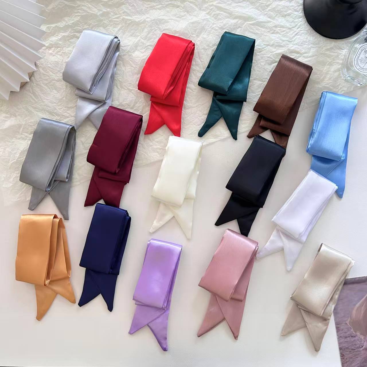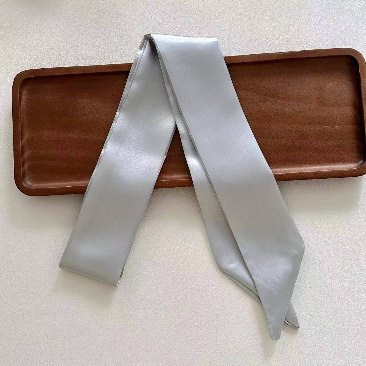 새로운 새틴 단색 스카프 얇은 좁은 긴 리본 프랑스 나비 가교 헤어 리본 우아한 올 매치 작은 스카프