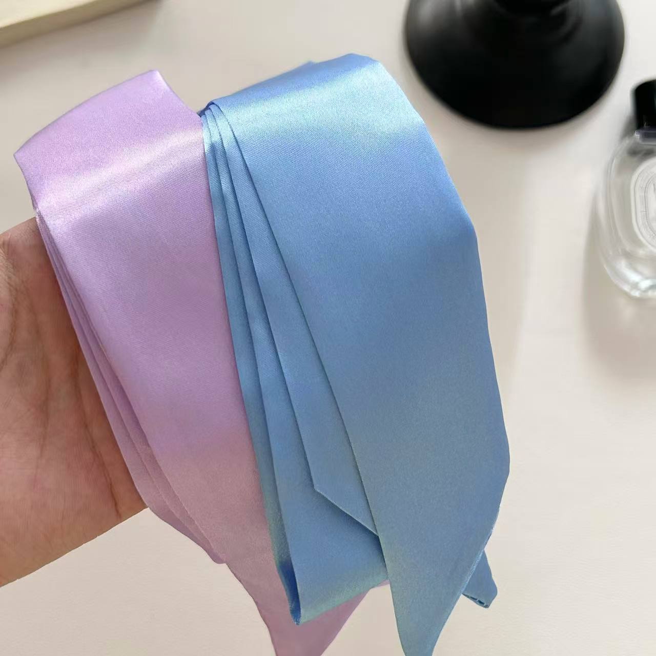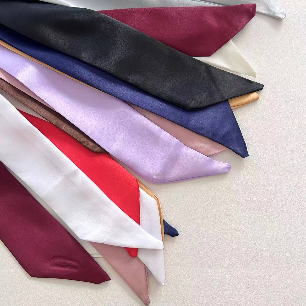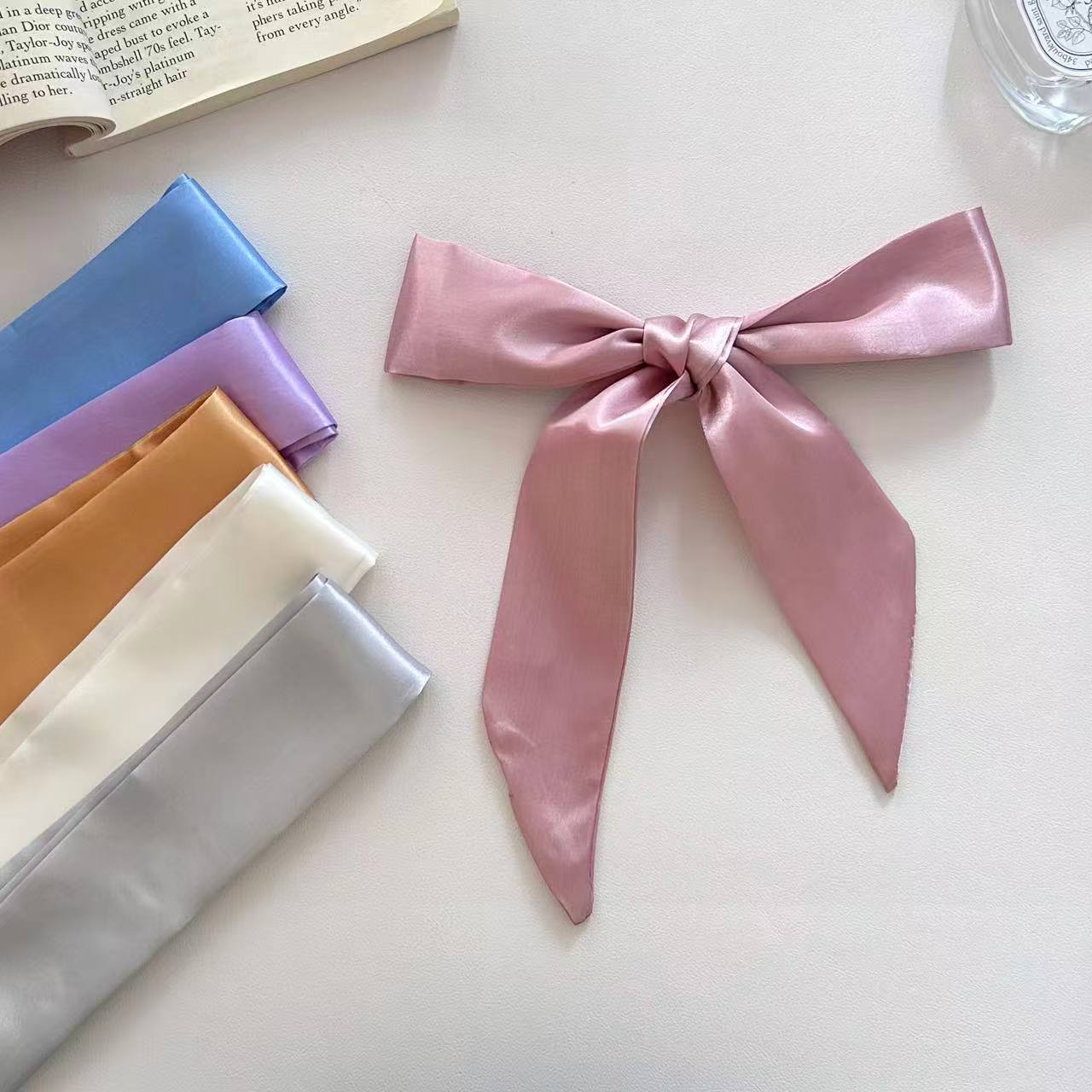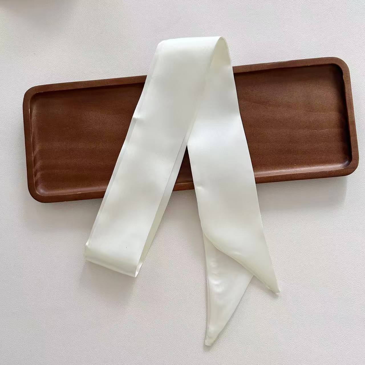 새로운 새틴 단색 스카프 얇은 좁은 긴 리본 프랑스 나비 가교 헤어 리본 우아한 올 매치 작은 스카프