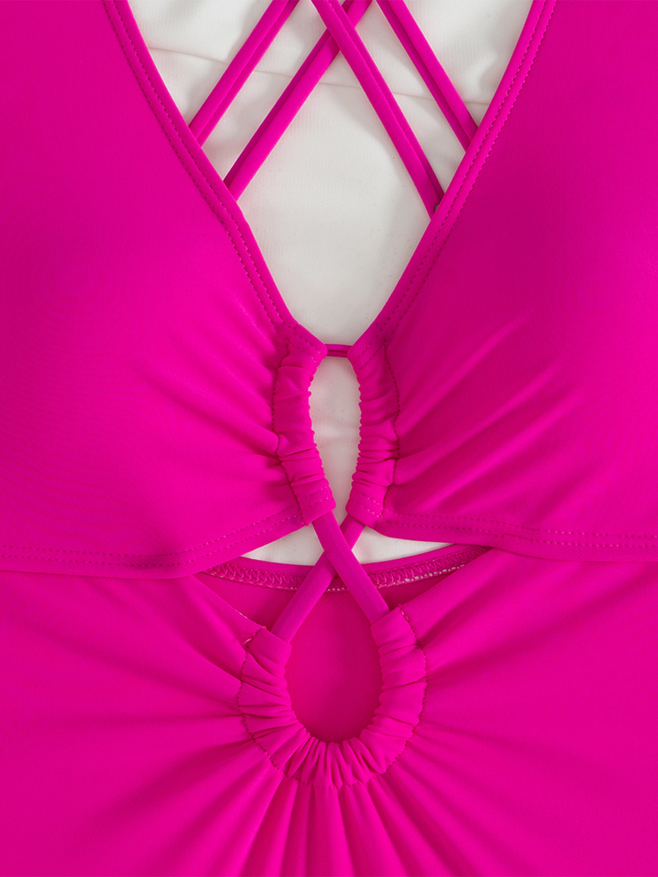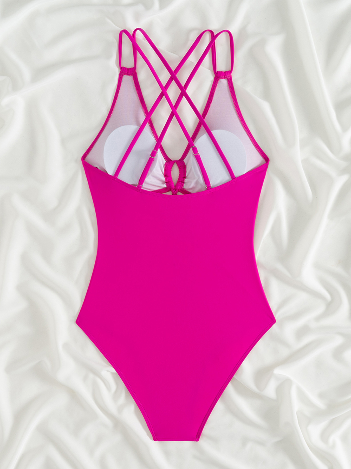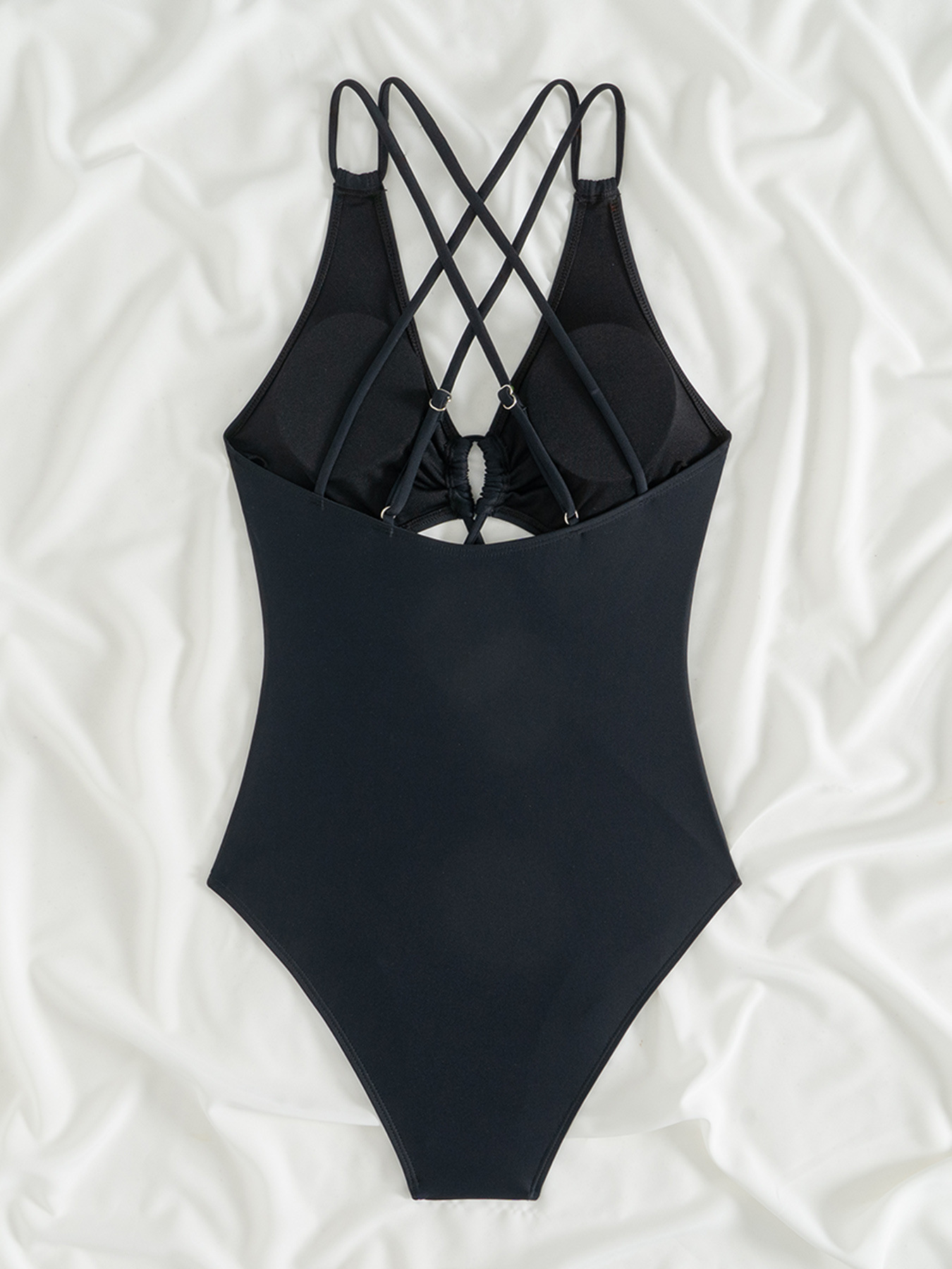 2025 새로운 유럽과 미국의 국경 간 섹시한 중공 백리스 크로스 숄더 스트랩 원피스 여성 수영복 제조 업체 재고 도매