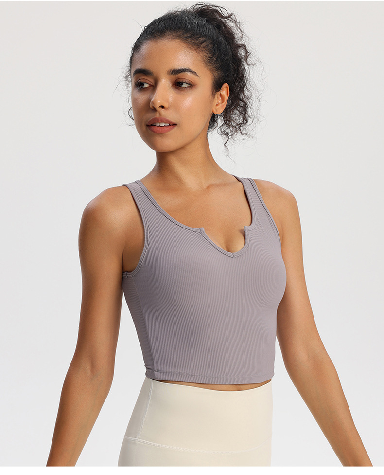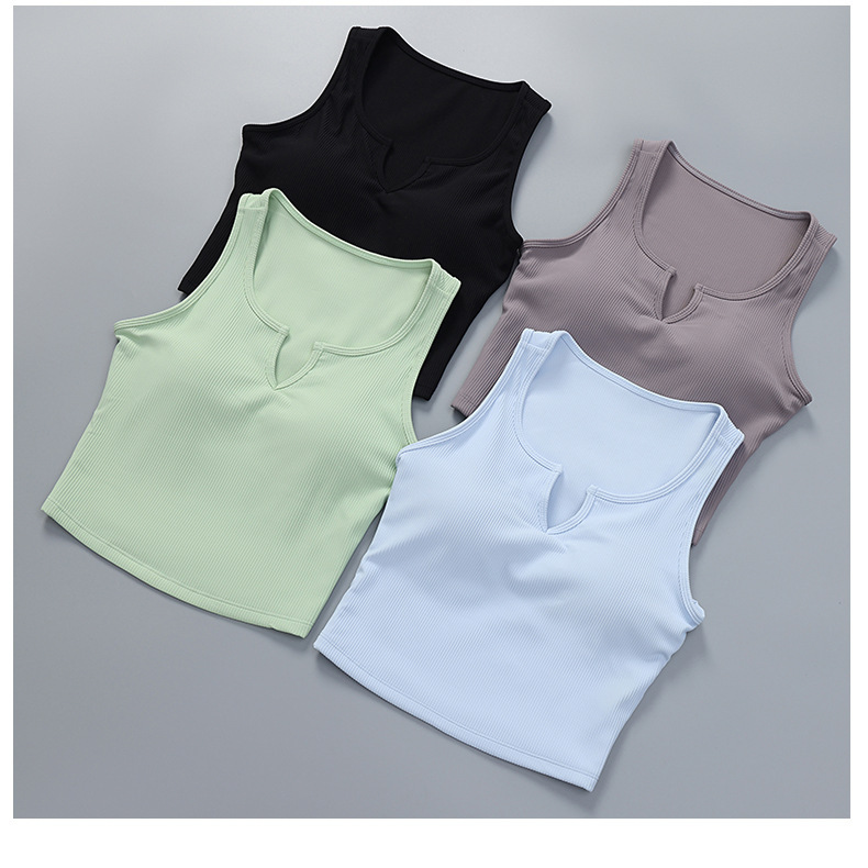 스포츠 속옷 여성용 고정 가슴 패드 충격 방지 러닝 요가 세트 조끼 착용 피트니스 브래지어 V-넥 민소매 탑