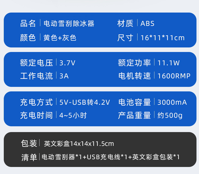 국경 간 폭발 자동차 제설 장치 전기 스노우 스크레이퍼 USB 충전 자동차 유리 제빙 및 제상 청소 도구스토어 가기