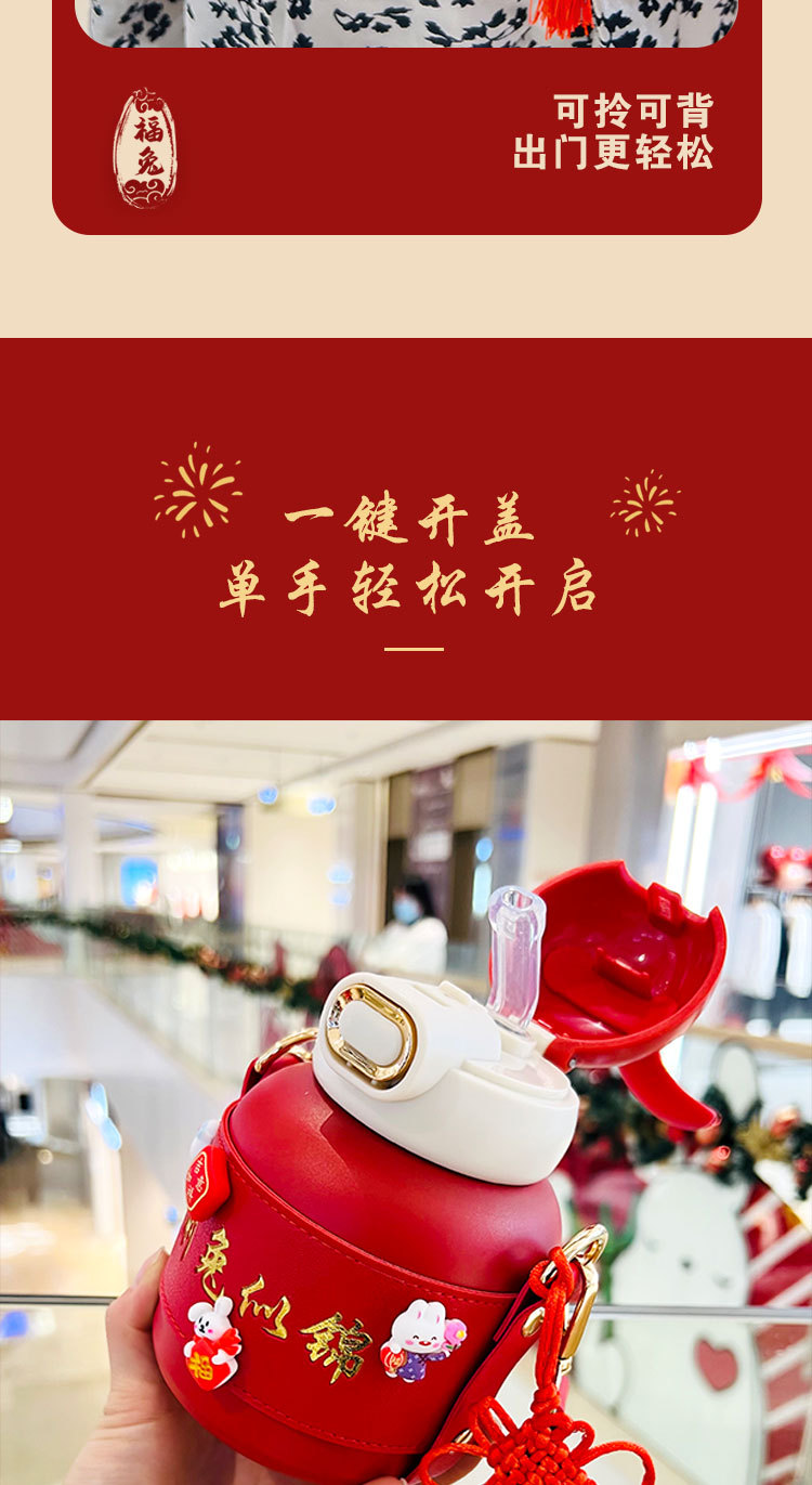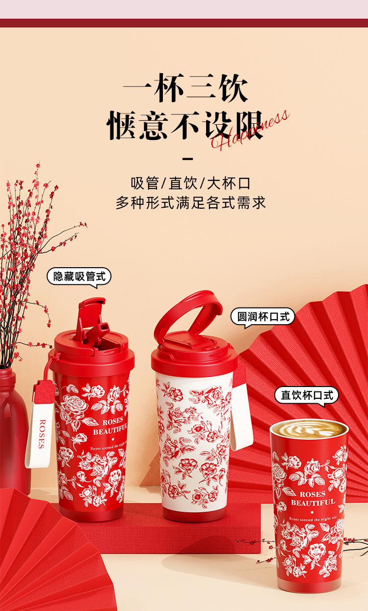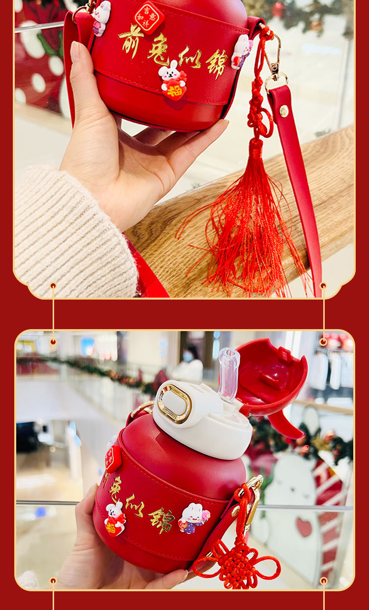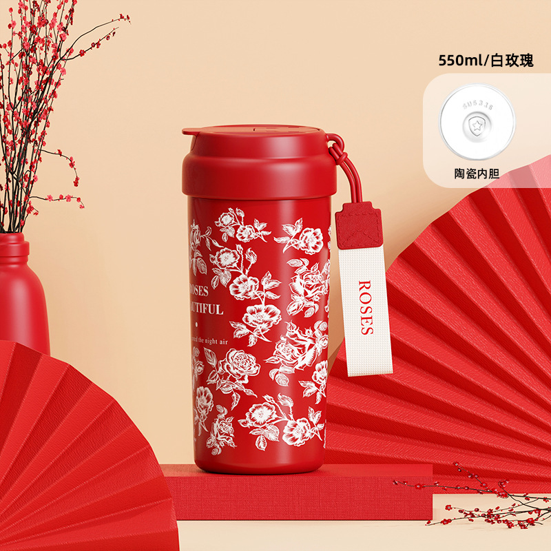 새해 레드 더블 드링크 커피 보온병 컵 316 고급스러운 학생과 어린이 대용량 세라믹 밀짚 선물 컵스토어 가기