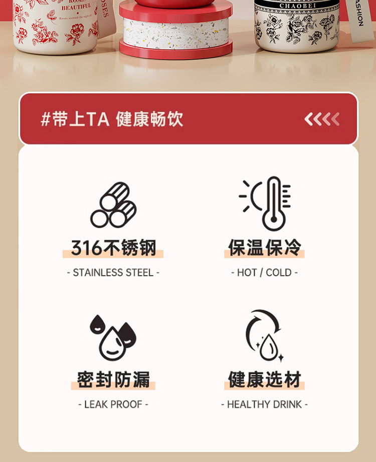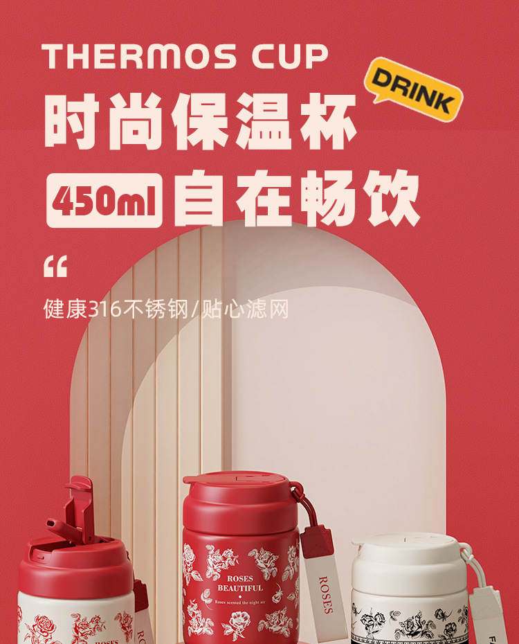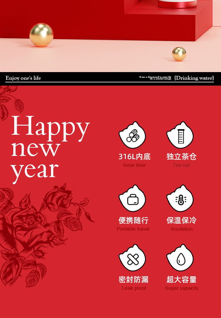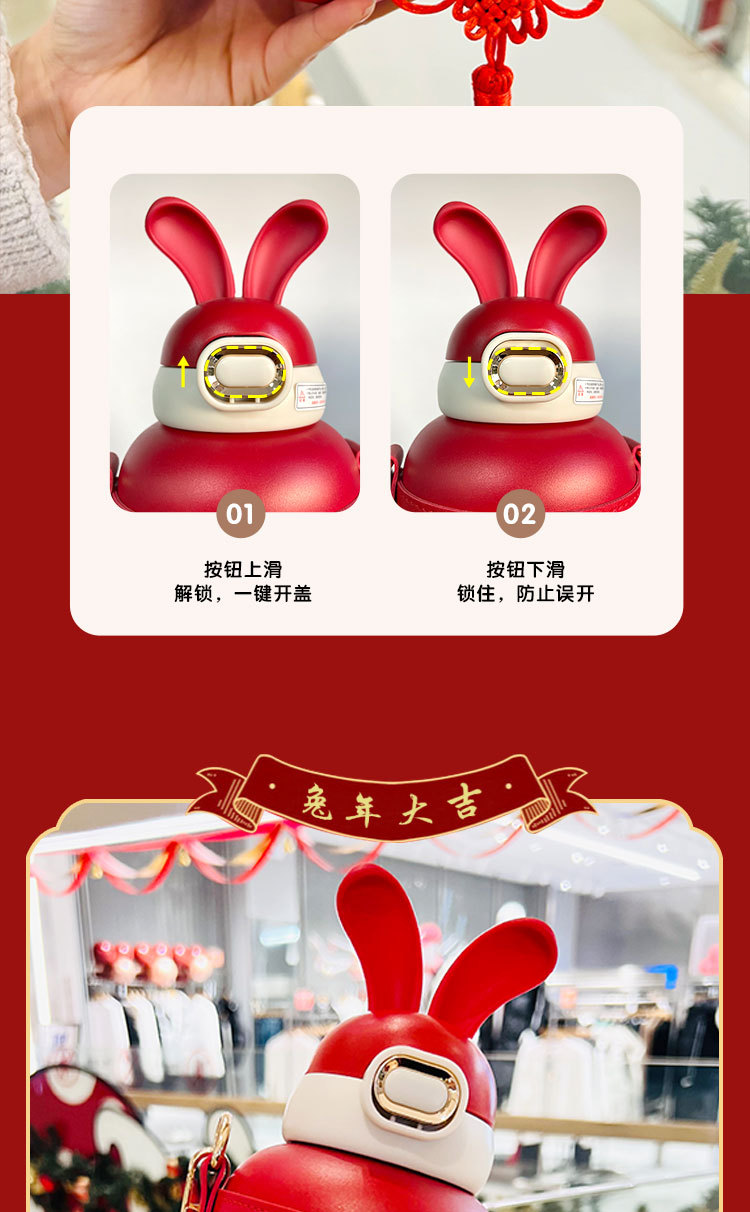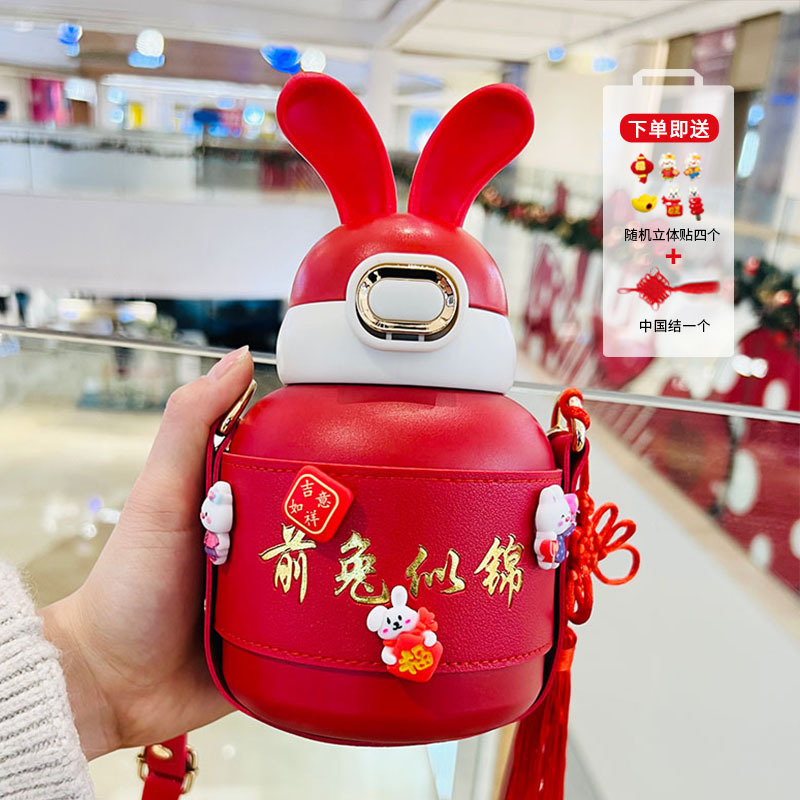 새해 레드 더블 드링크 커피 보온병 컵 316 고급스러운 학생과 어린이 대용량 세라믹 밀짚 선물 컵스토어 가기