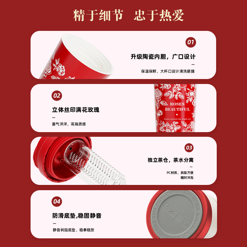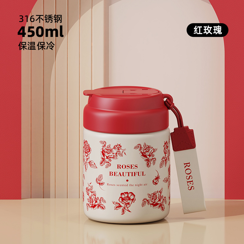 새해 레드 더블 드링크 커피 보온병 컵 316 고급스러운 학생과 어린이 대용량 세라믹 밀짚 선물 컵