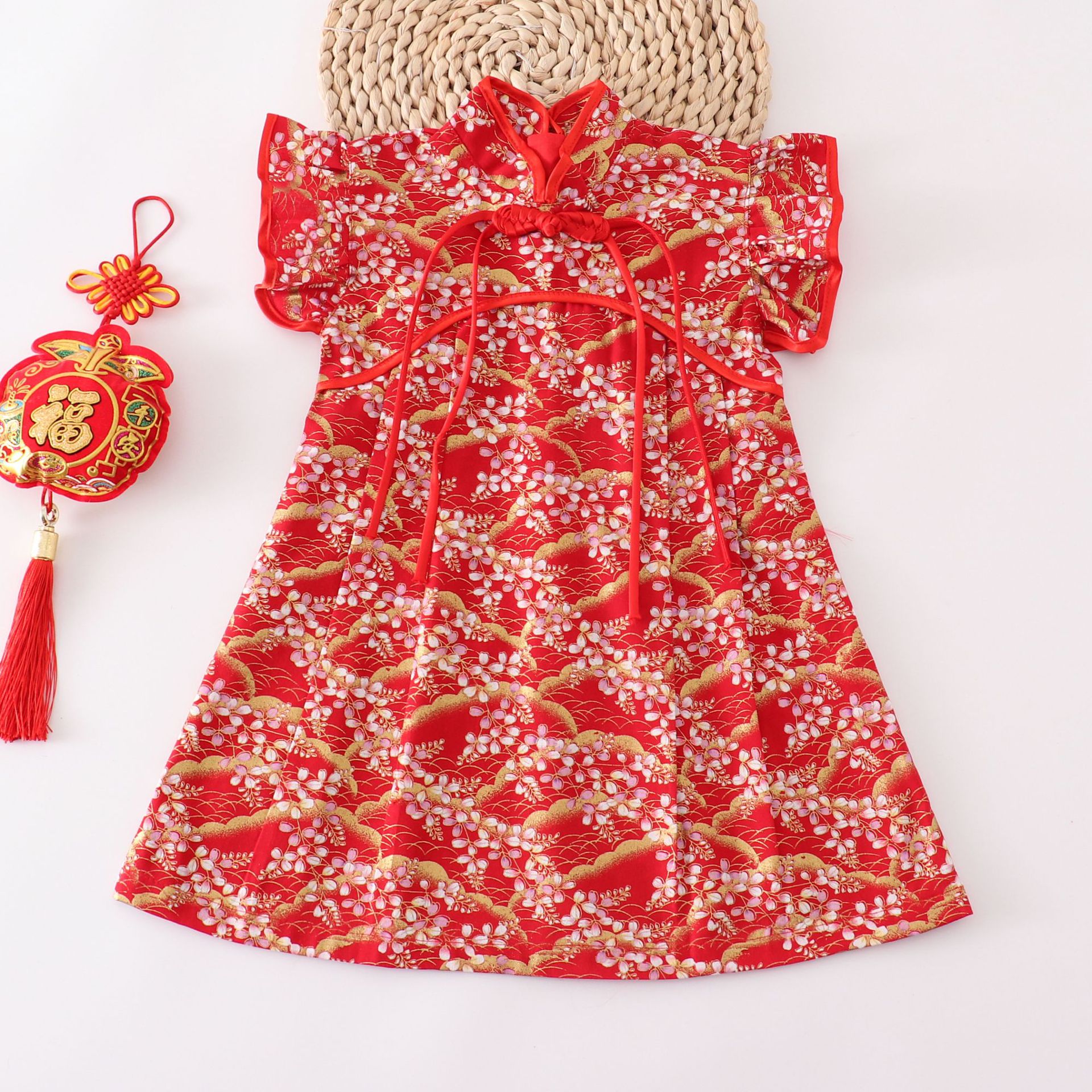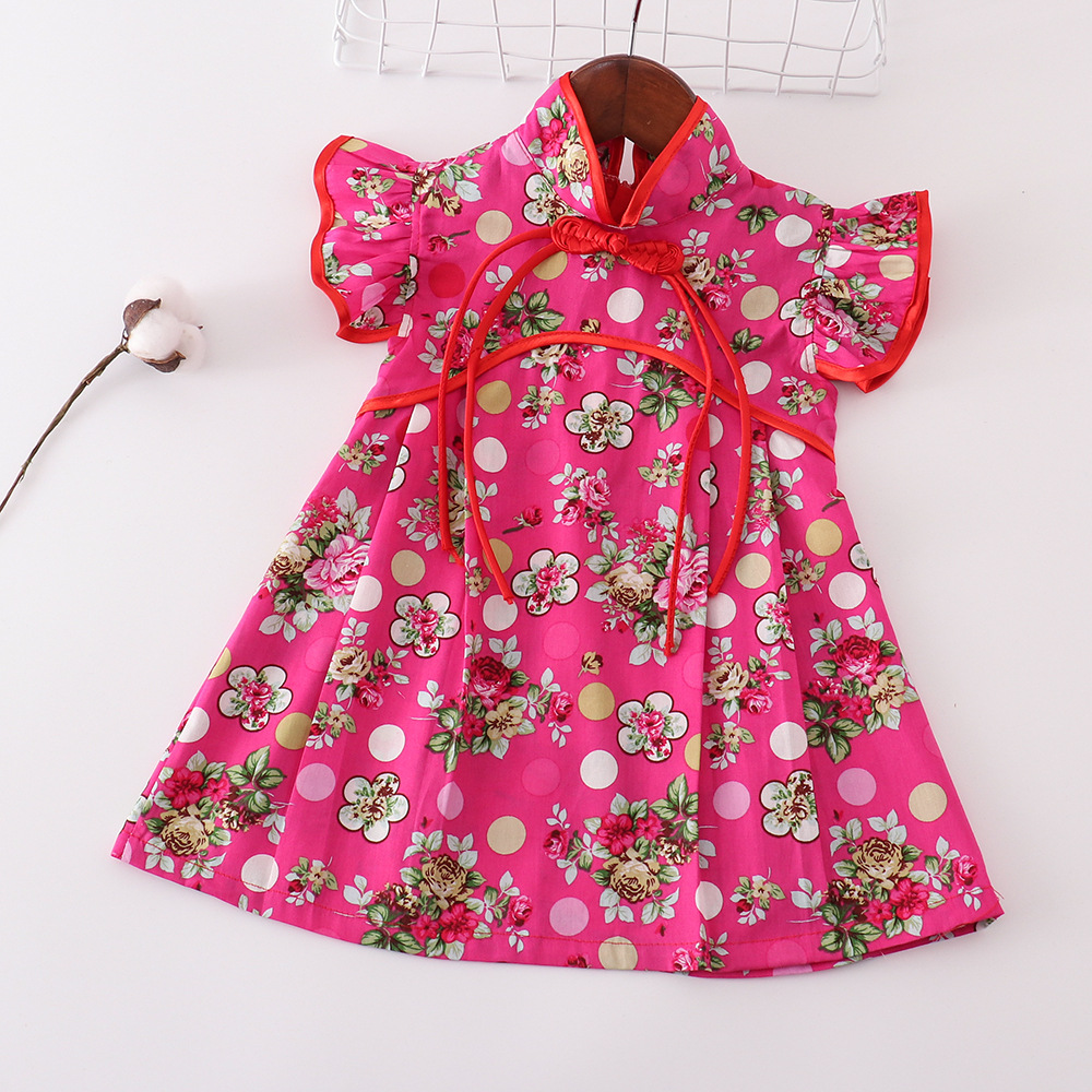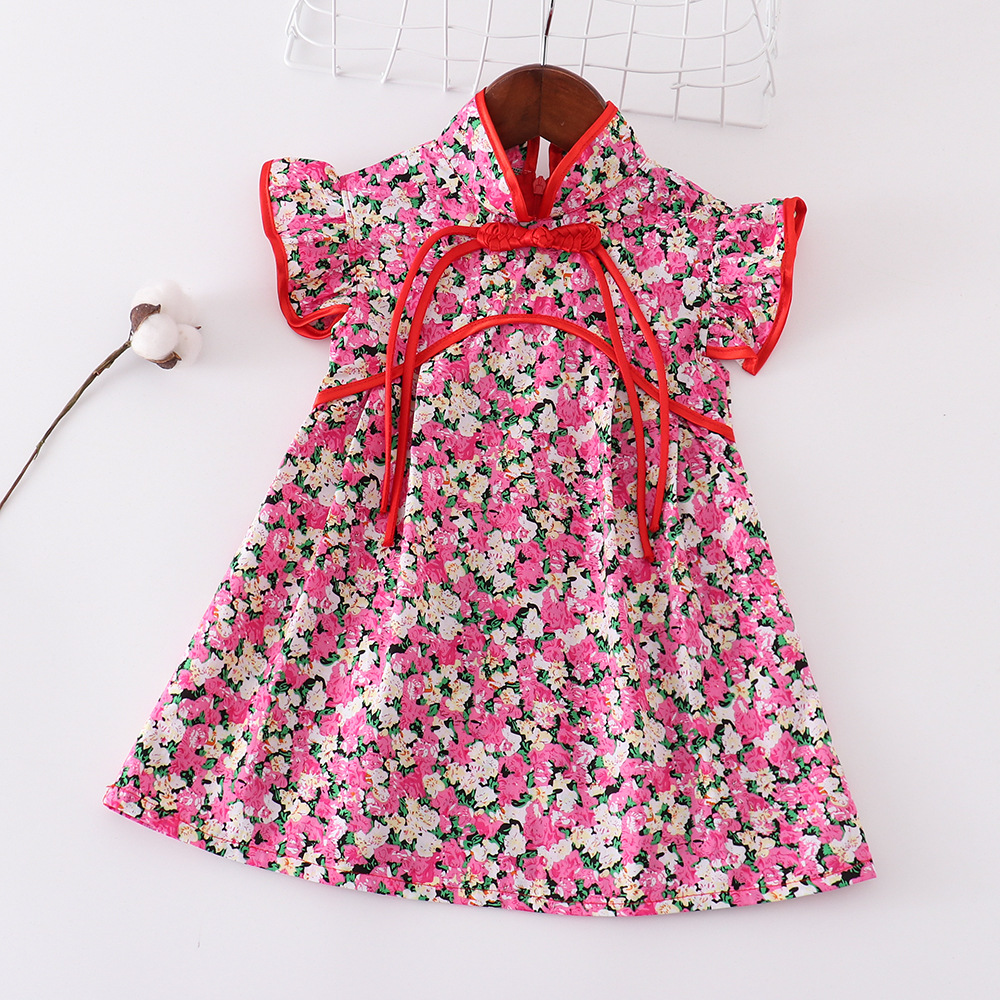 소녀 중국 스타일 원피스 붉은 꽃 새 도착 치마 공연 세트 새해 옷 원피스 국경 대형 스윙 스커트스토어 가기