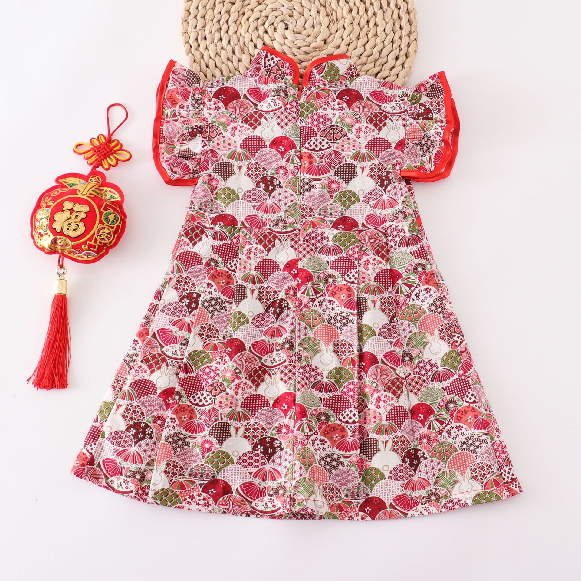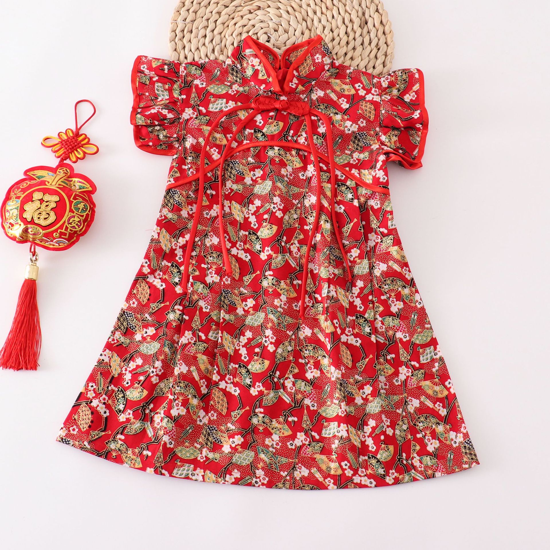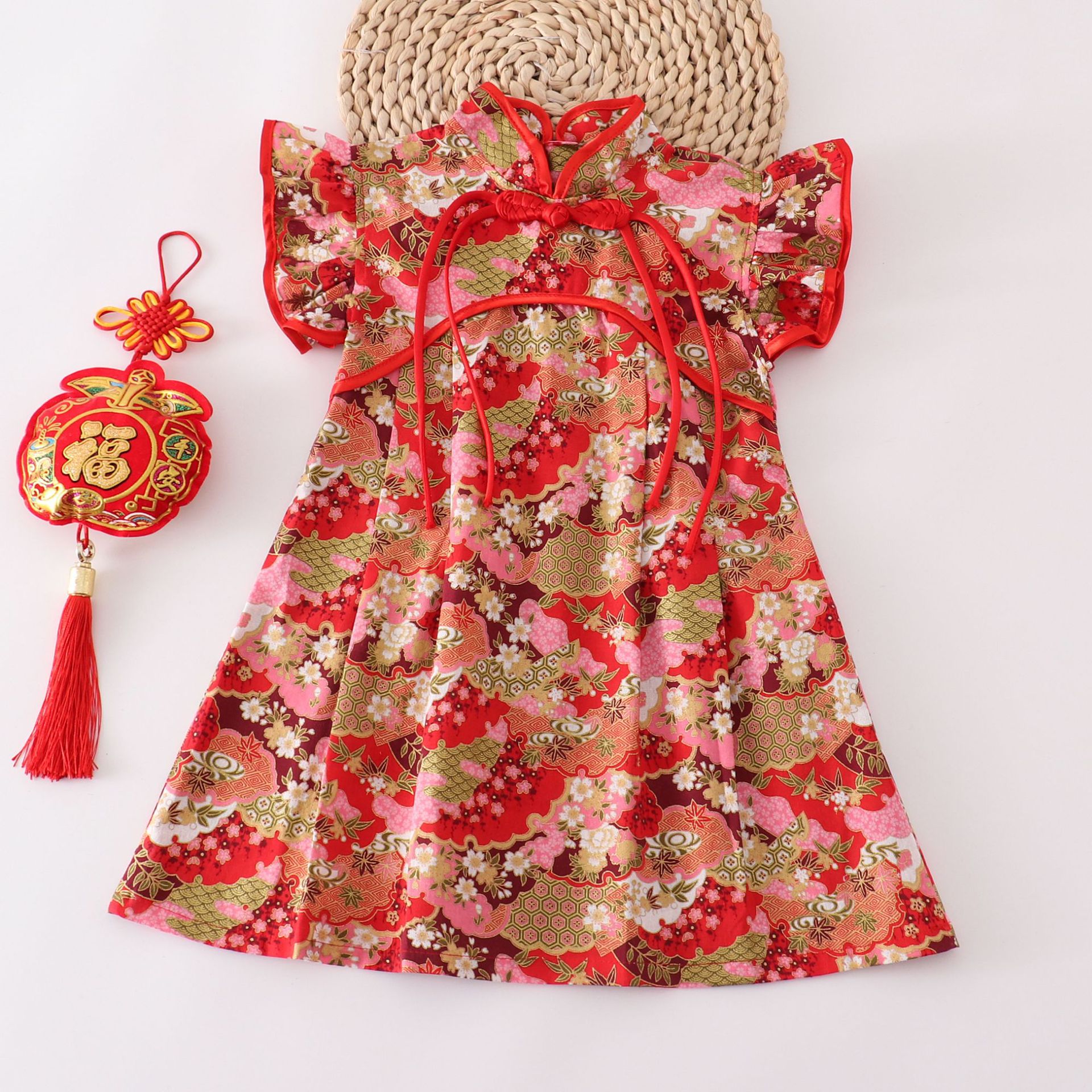 소녀 중국 스타일 원피스 붉은 꽃 새 도착 치마 공연 세트 새해 옷 원피스 국경 대형 스윙 스커트스토어 가기