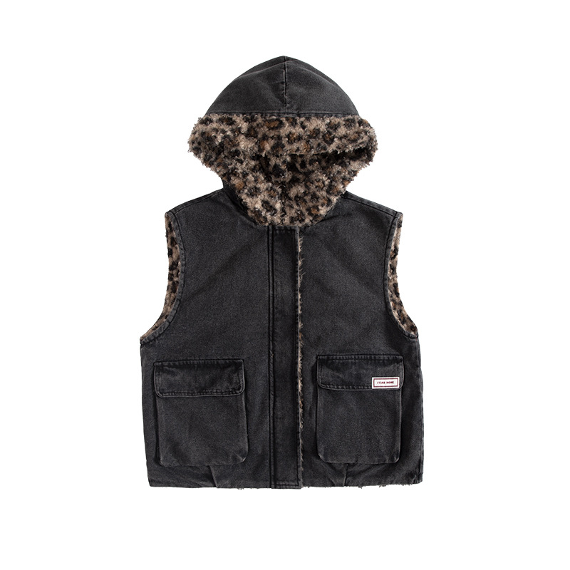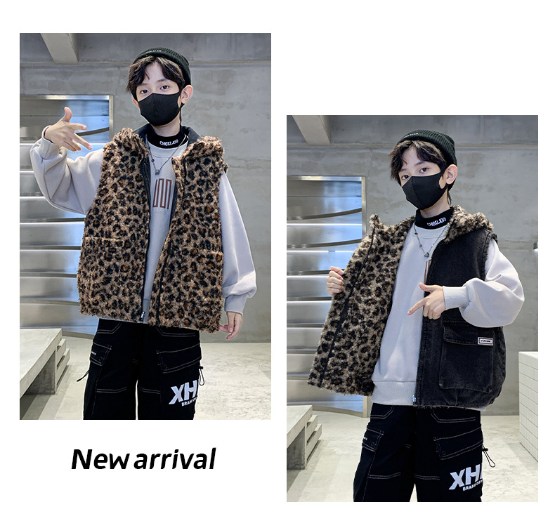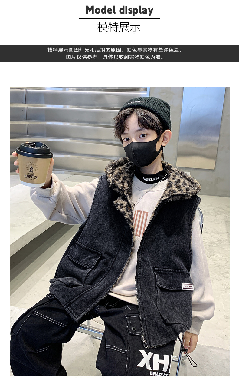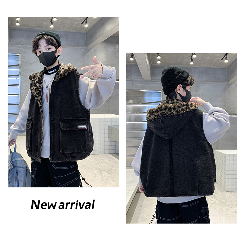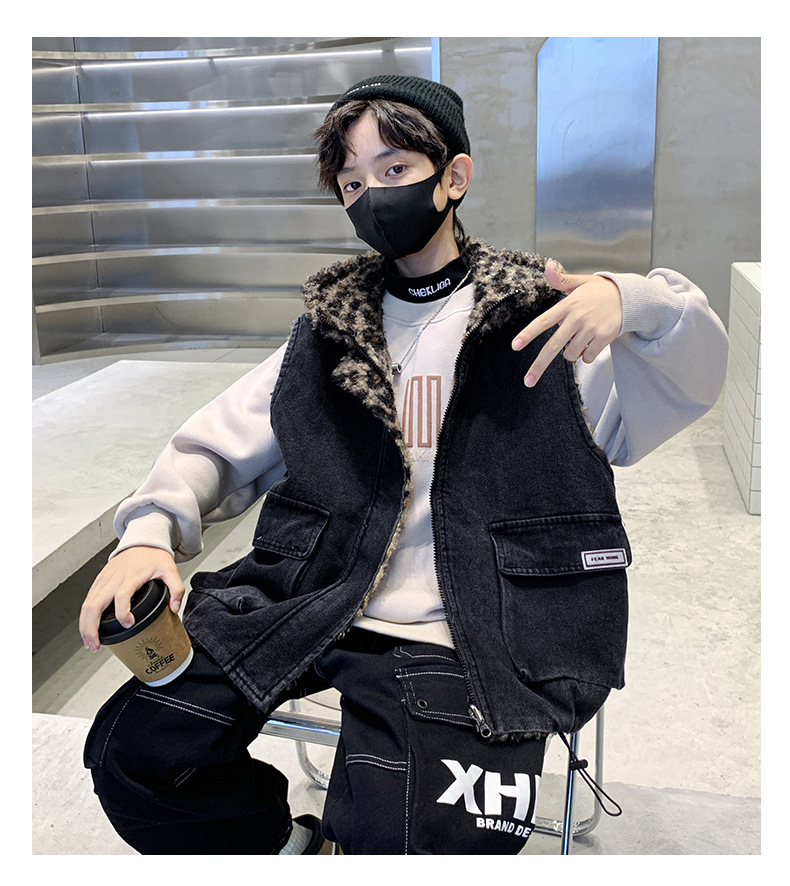 데님 조끼 소년의 봄 가을과 겨울 기모 어깨 허리 코트 어린이 2024 새로운 스타일 중대형 어린이 두꺼운 조끼 외부 착용스토어 가기