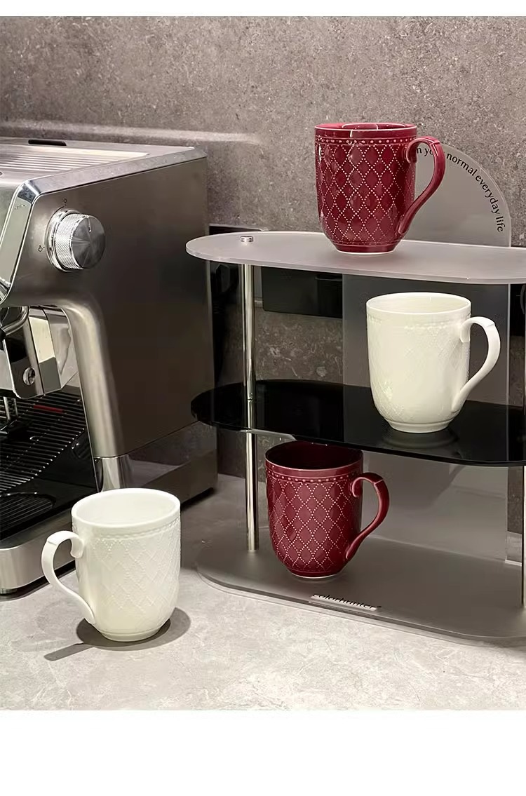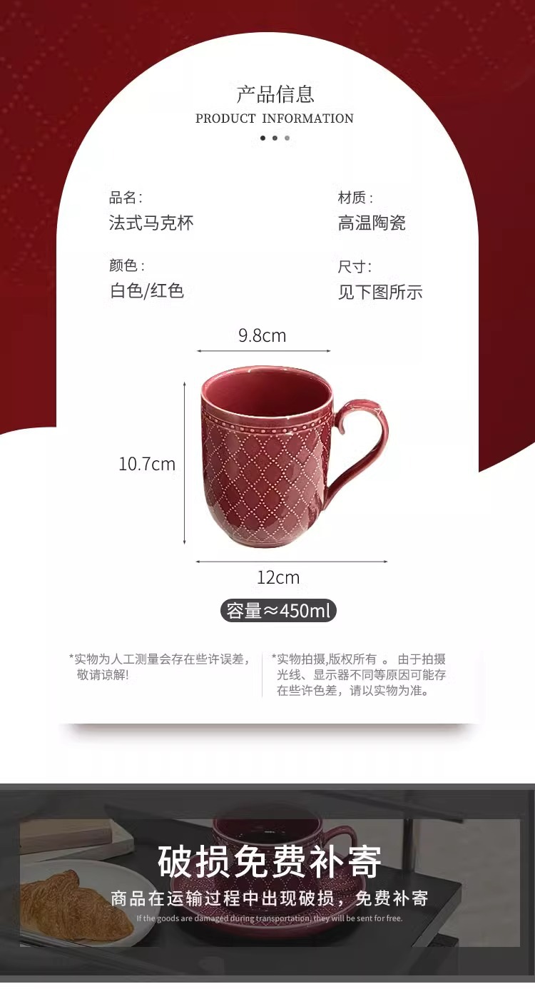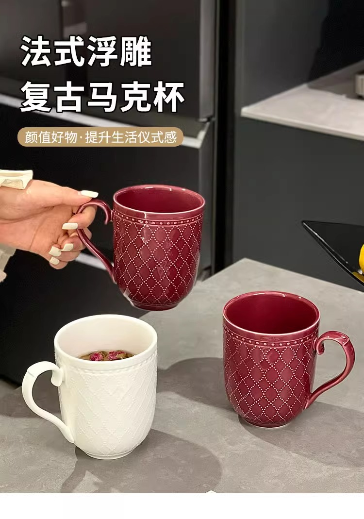 浮雕蕾丝纹马克杯—酒红色下游零售价展示价格不得低于16.8元