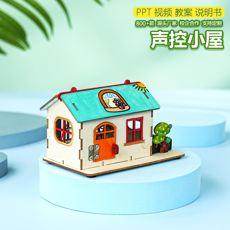 음성 제어 오두막 기술 작은 만들기 나무 패치 워크 수제 DIY 소재 패키지 과학 실험 STEAM 코스 교육 원조스토어 가기