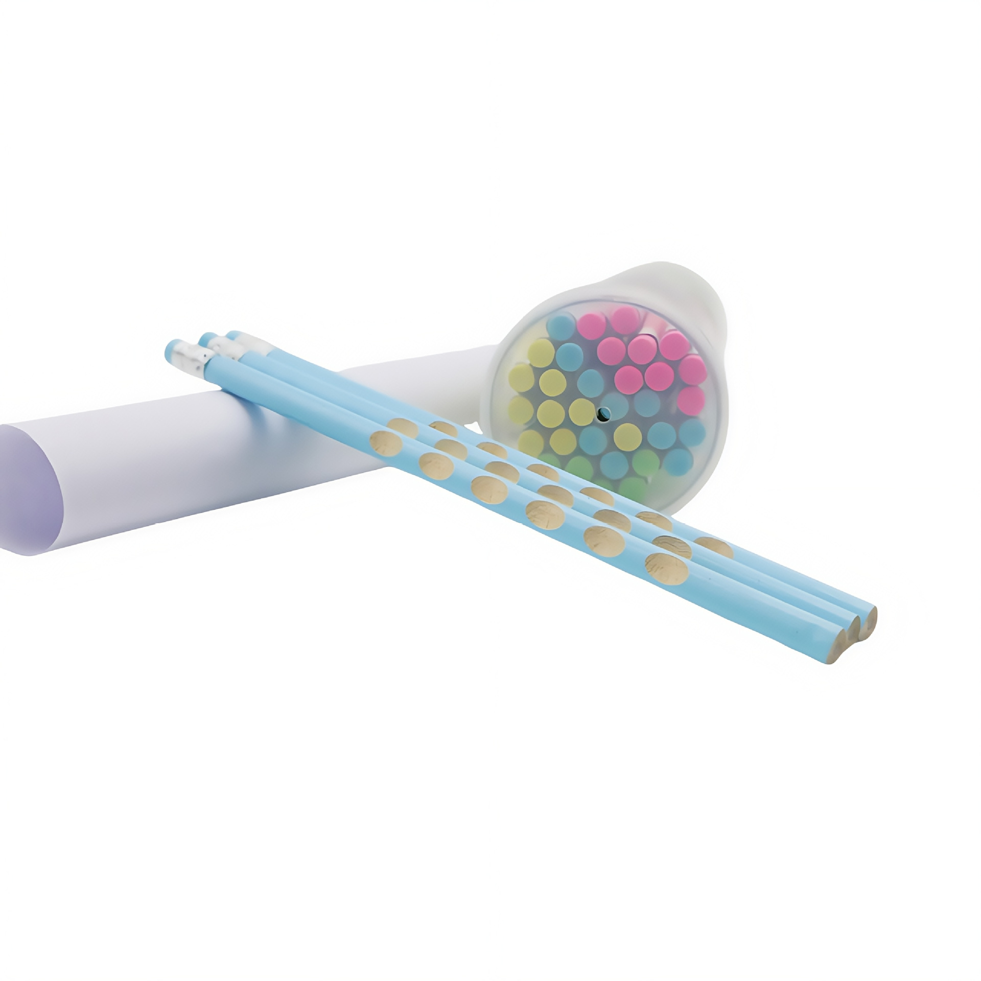 컬러풀한 디자인의 HB 육각 연필, 리필과 지우개 포함, 학생용 필기 연습 및 자세 교정, 문구 공장 도매